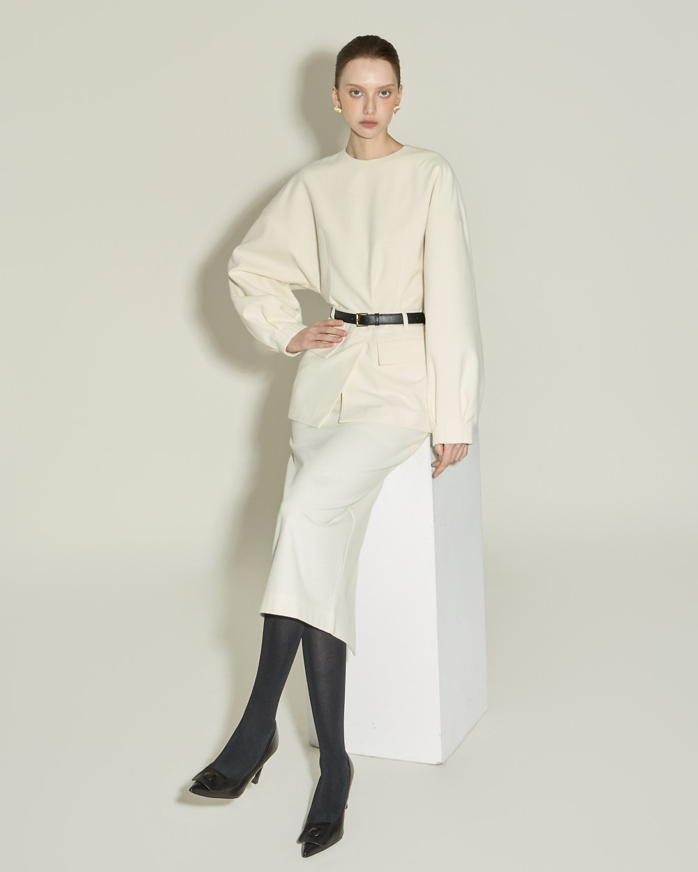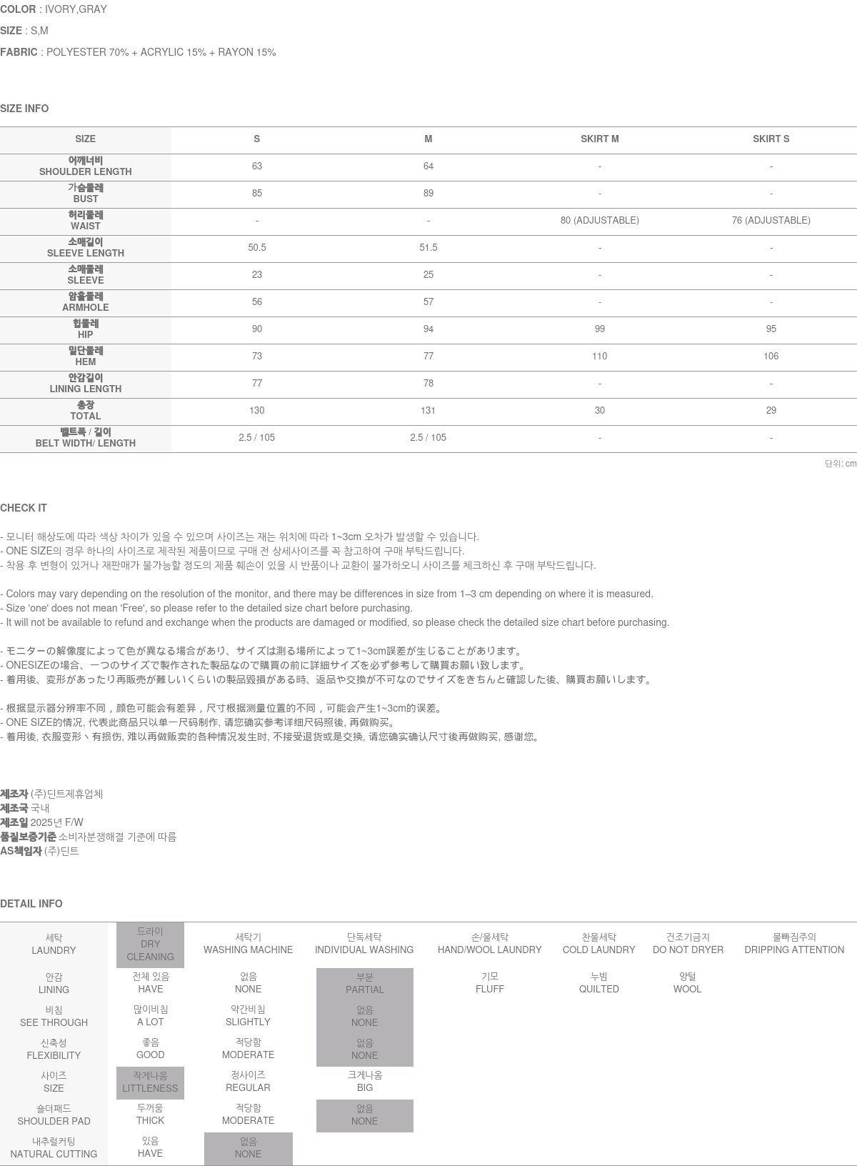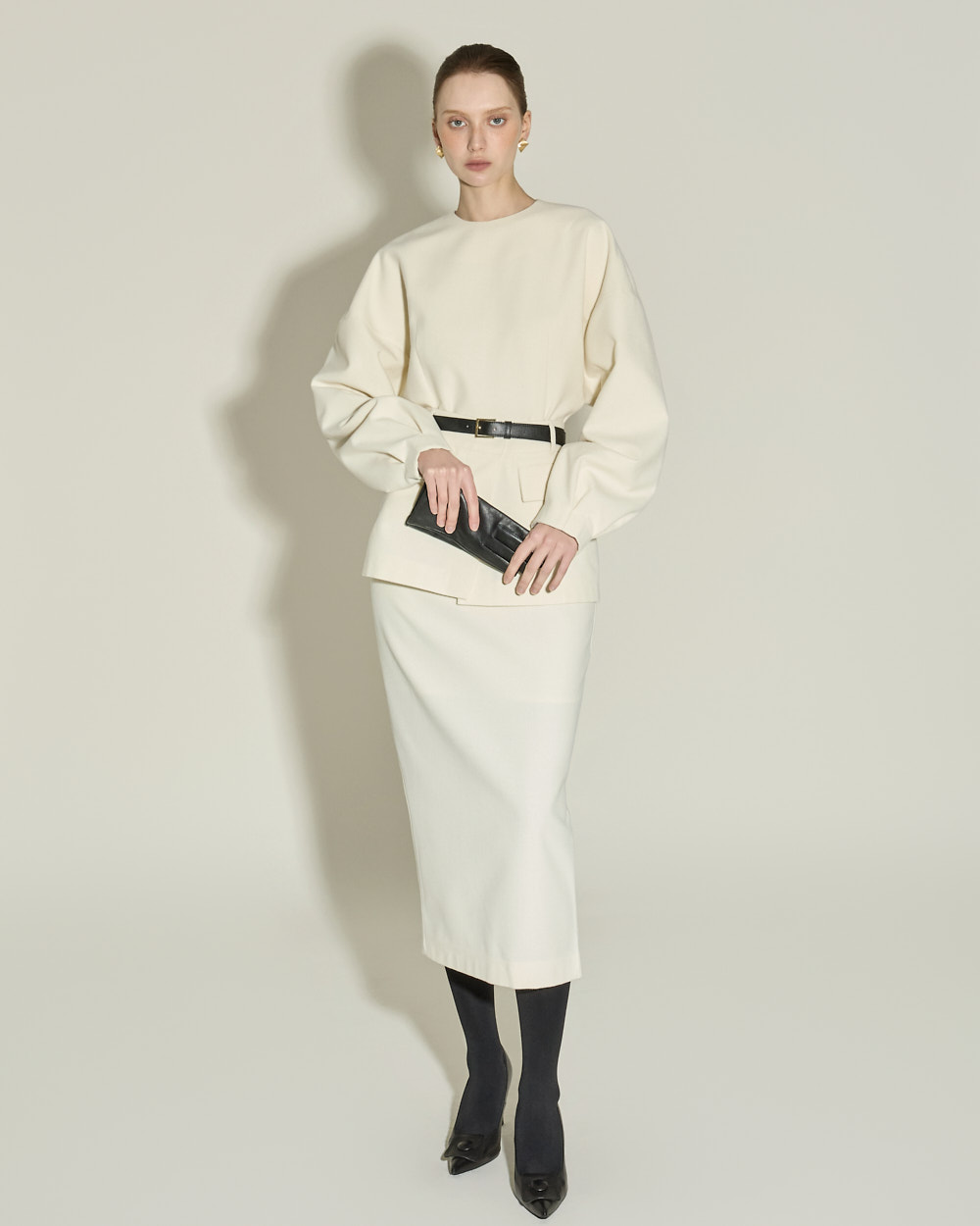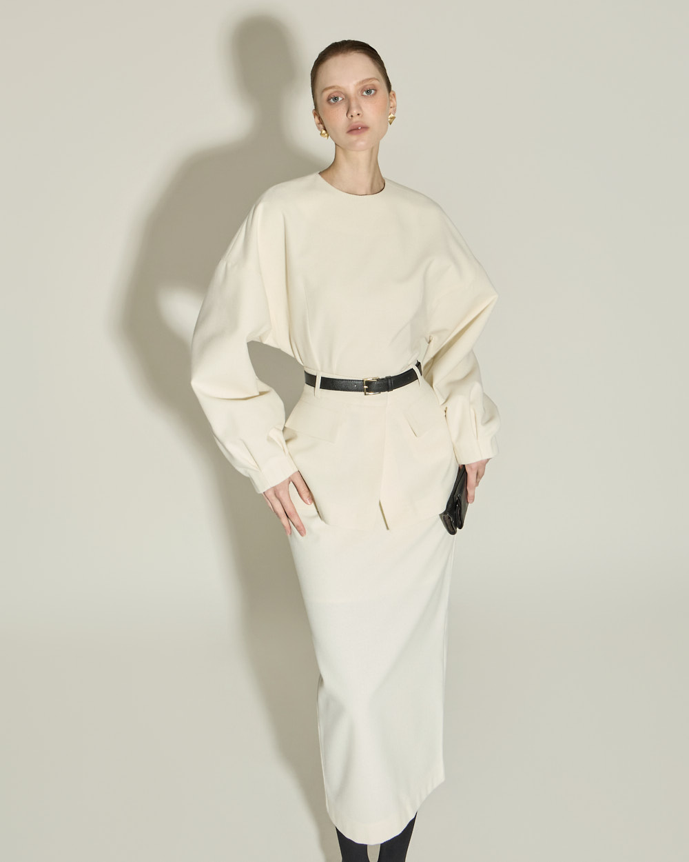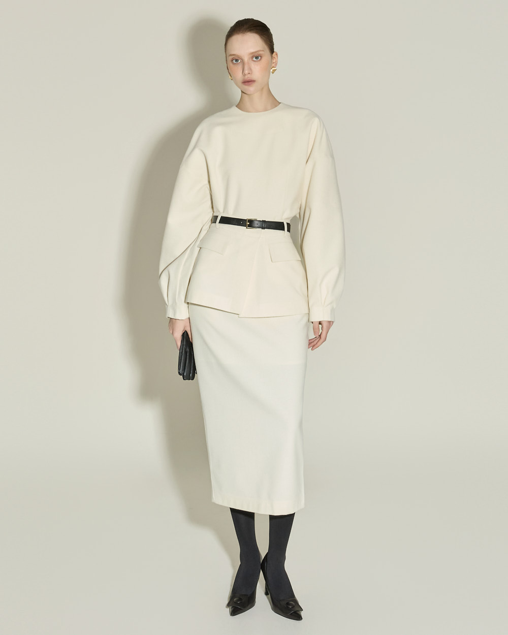 IVORY 配色搭配金色扣环腰带,GRAY 配色搭配银色扣环腰带,