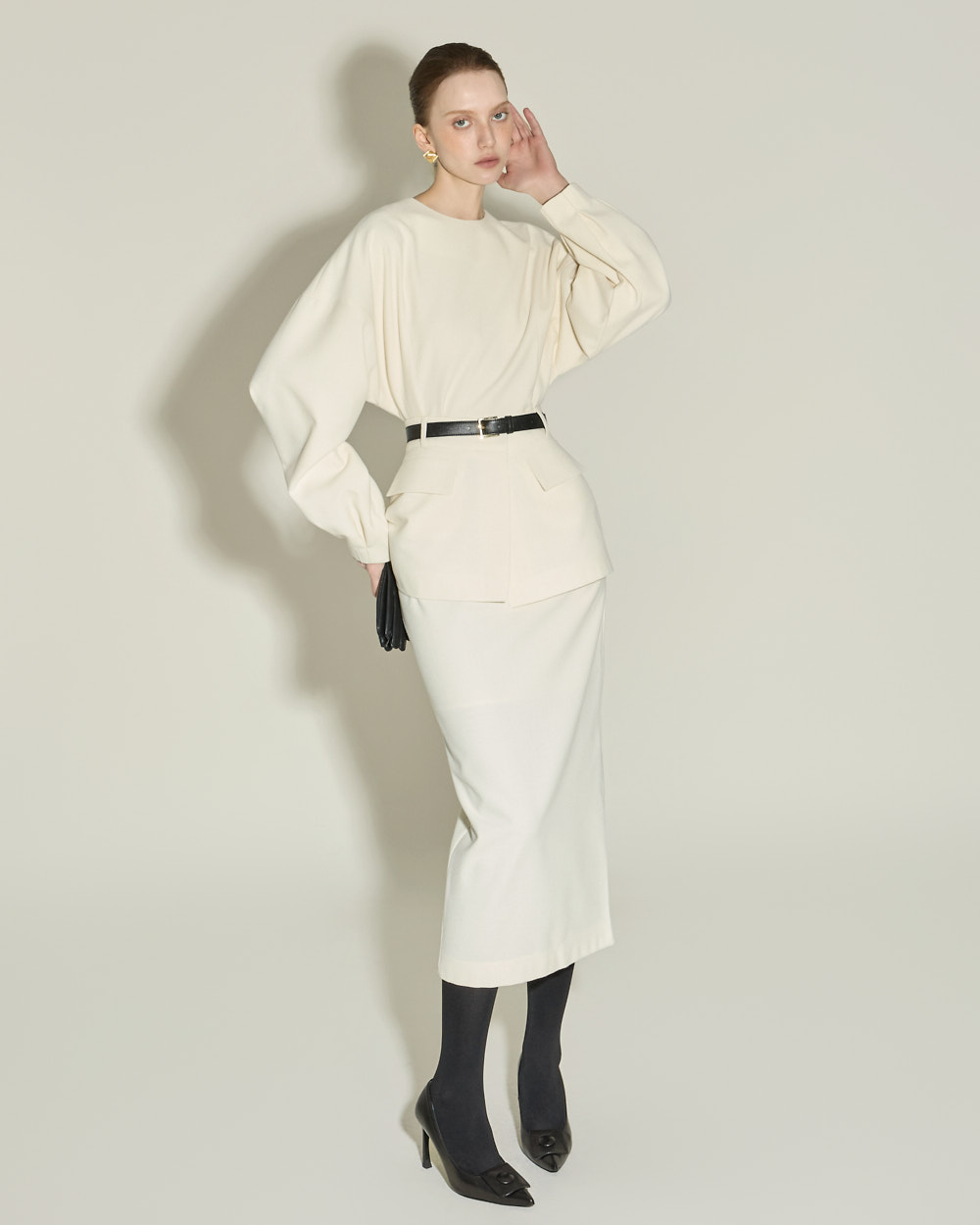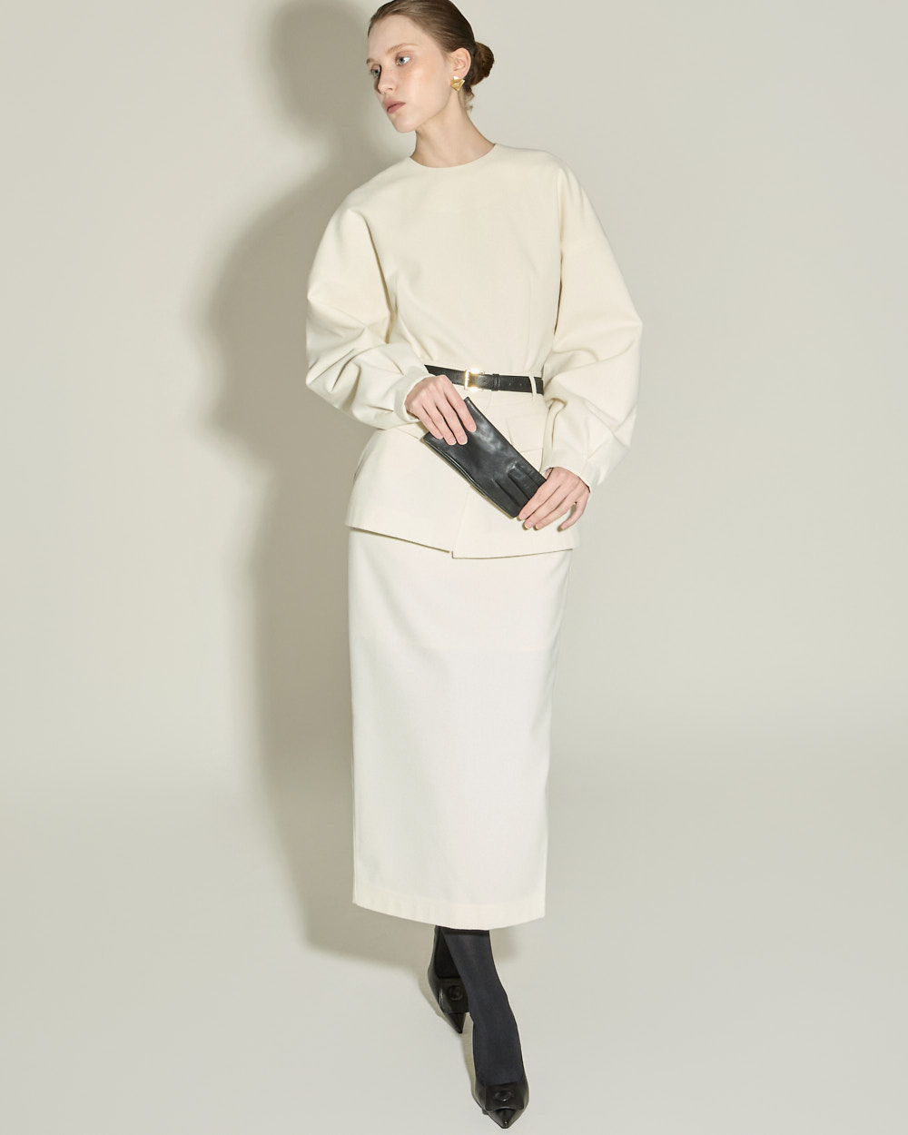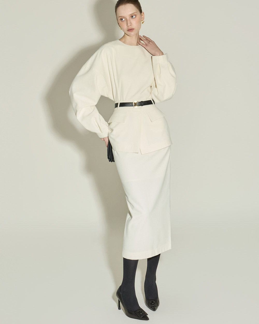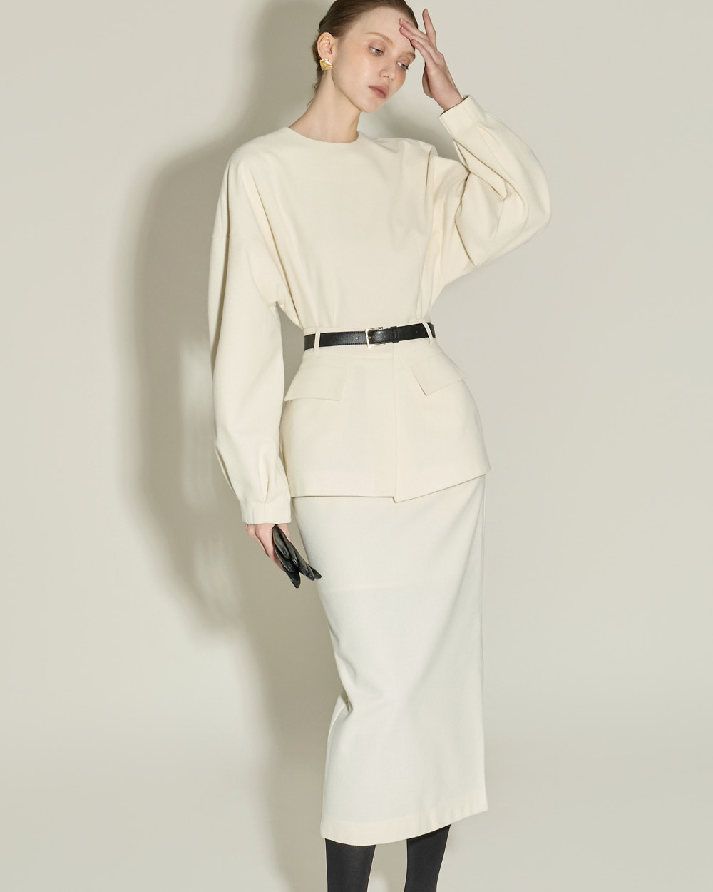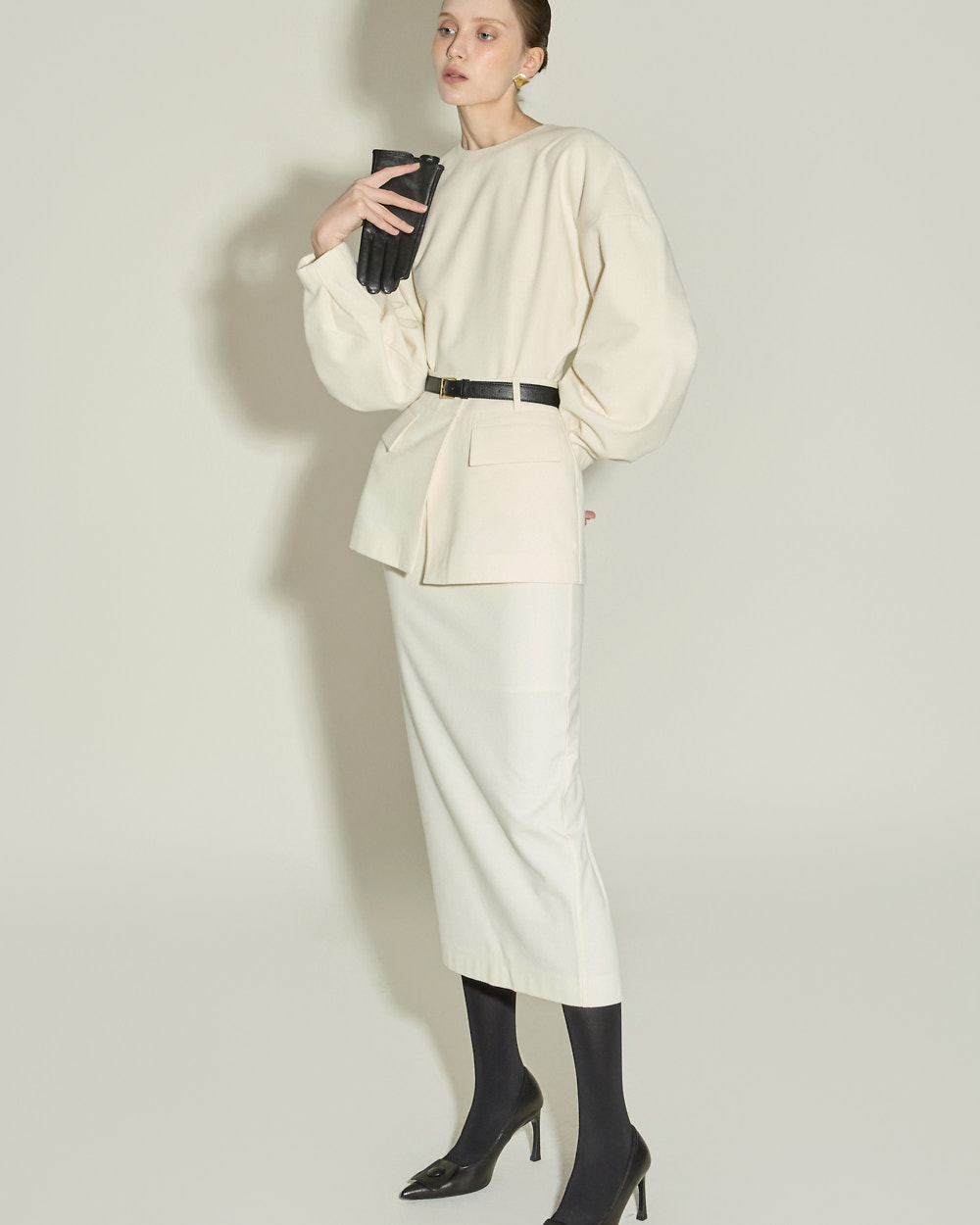 IVORY 配色搭配金色扣环腰带,GRAY 配色搭配银色扣环腰带,