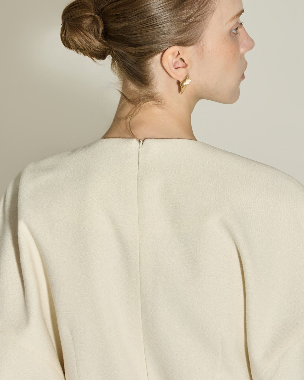 174CM 模特穿着 S 码,IVORY 颜色。