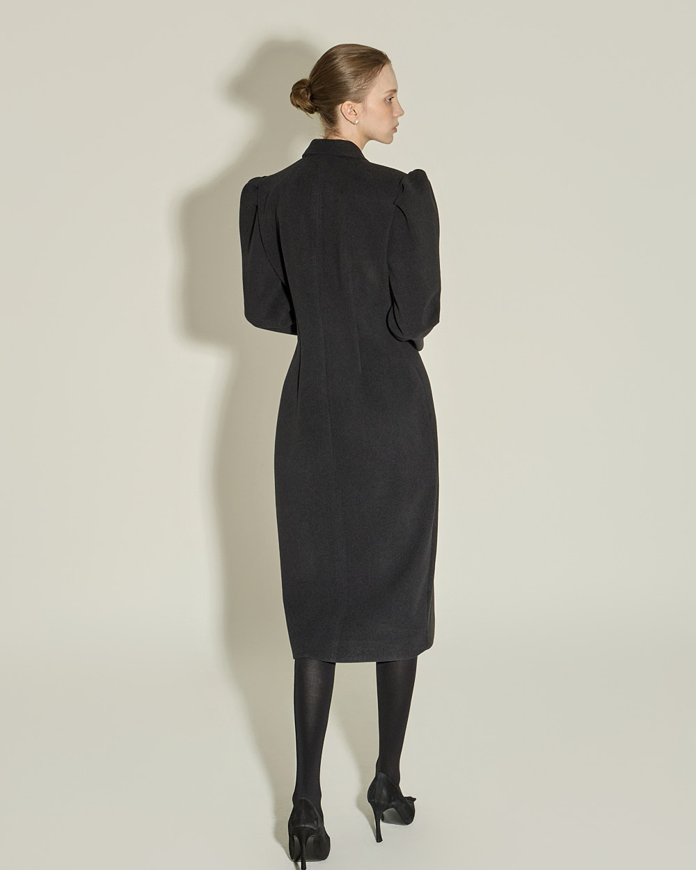 氛围感十足的泡袖双排扣连衣裙。