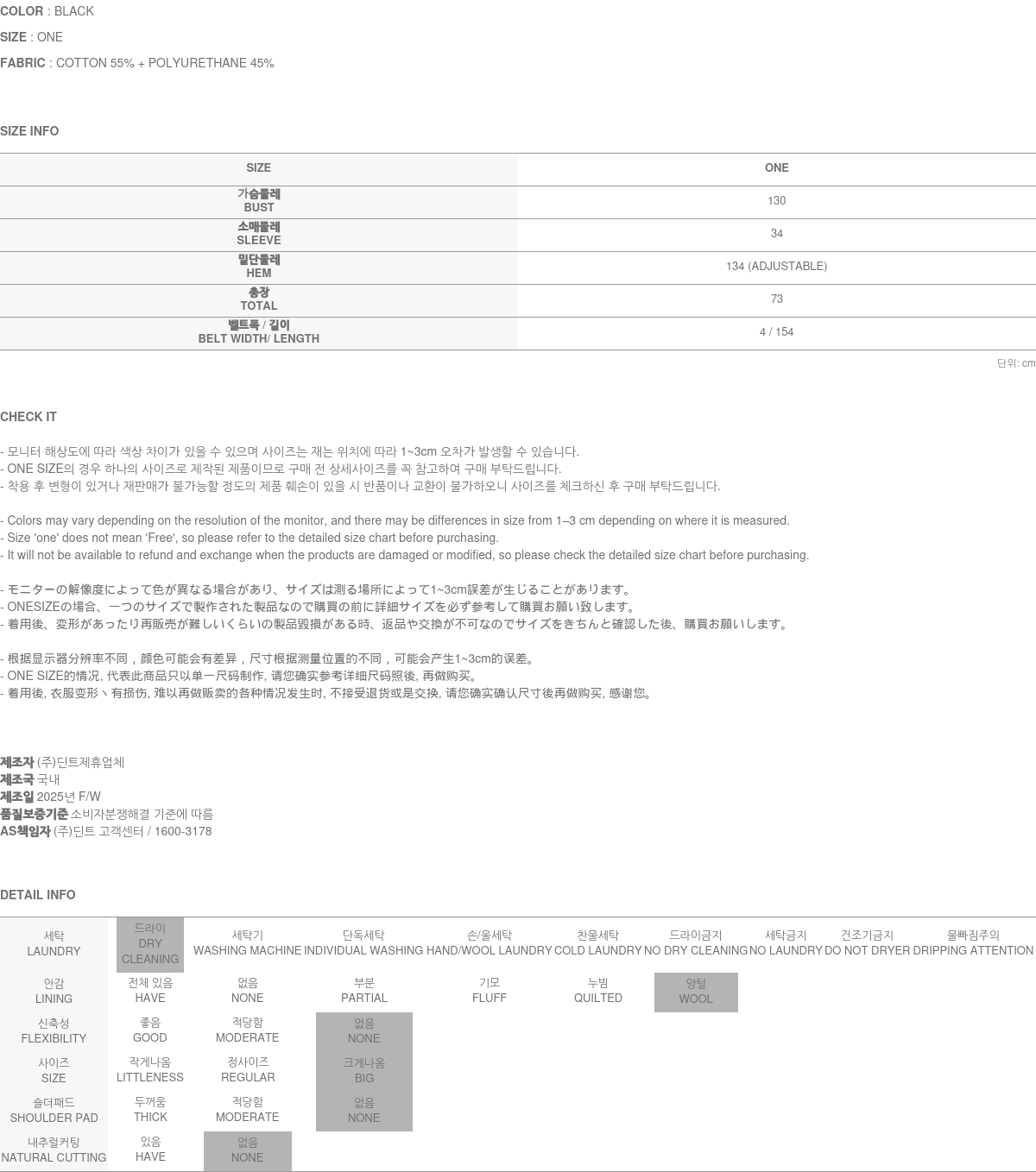 • DINT的所有商品, 使用一般洗滌或是烘乾機, 皆有可能成爲變形或是商品損傷的原因, 建議您使用乾洗.