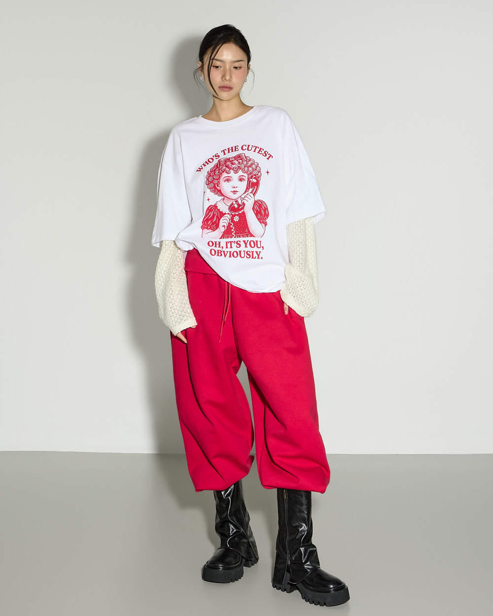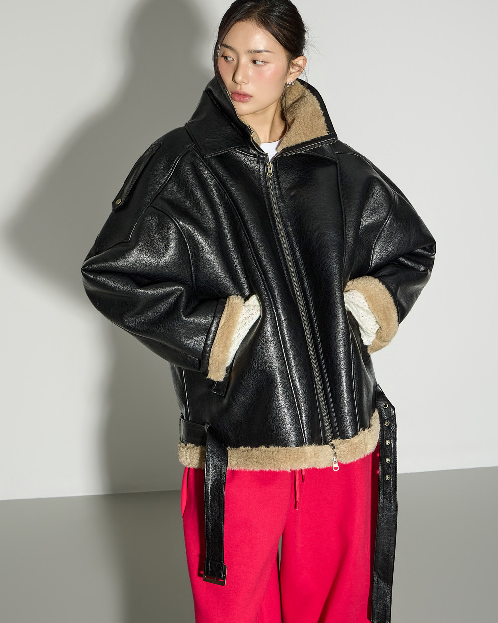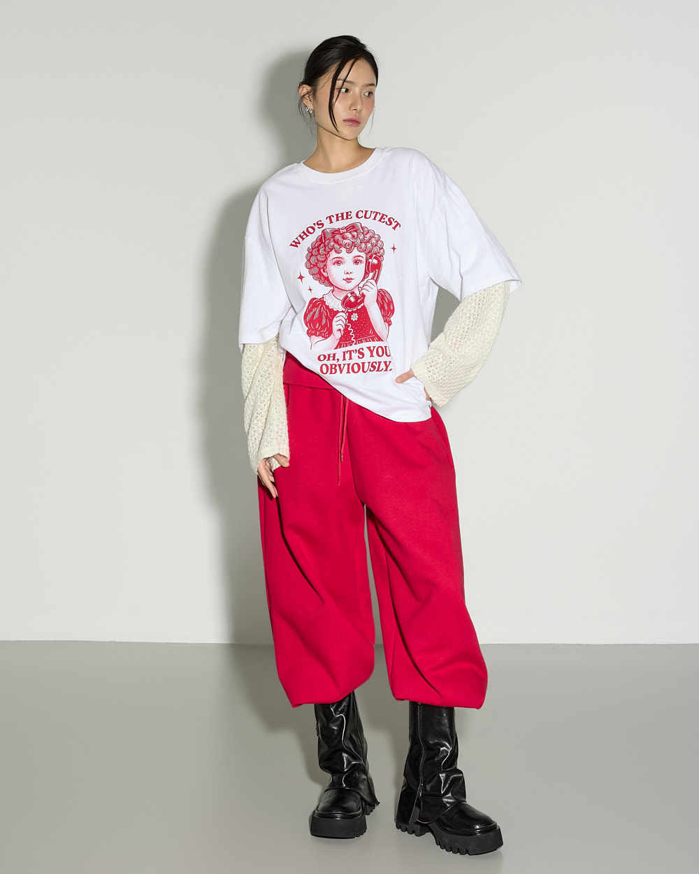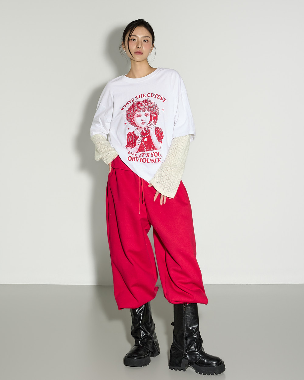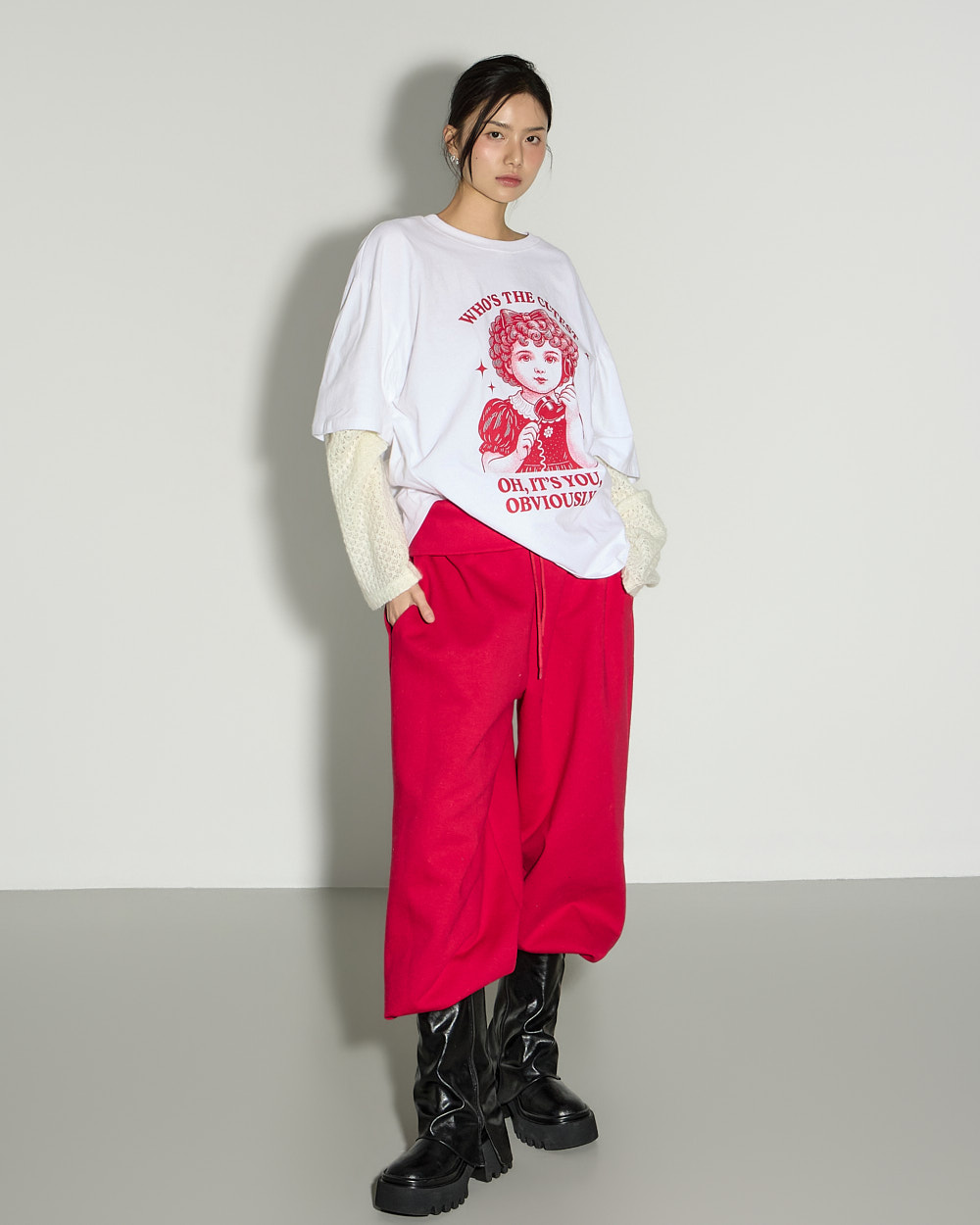 模特身高 171CM,穿 ONE 尺码,颜色为酒红色。
