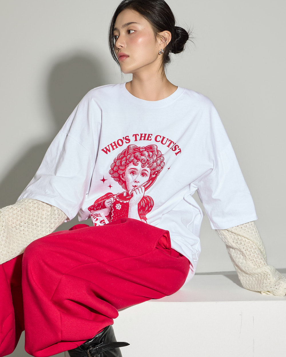 前侧印花细节与袖部蕾丝叠层设计相融合,