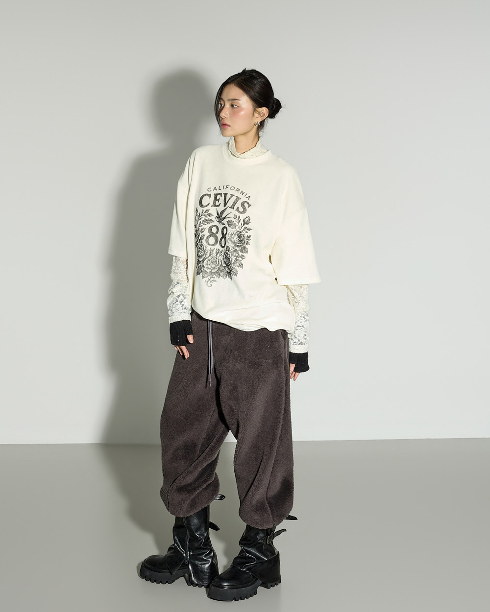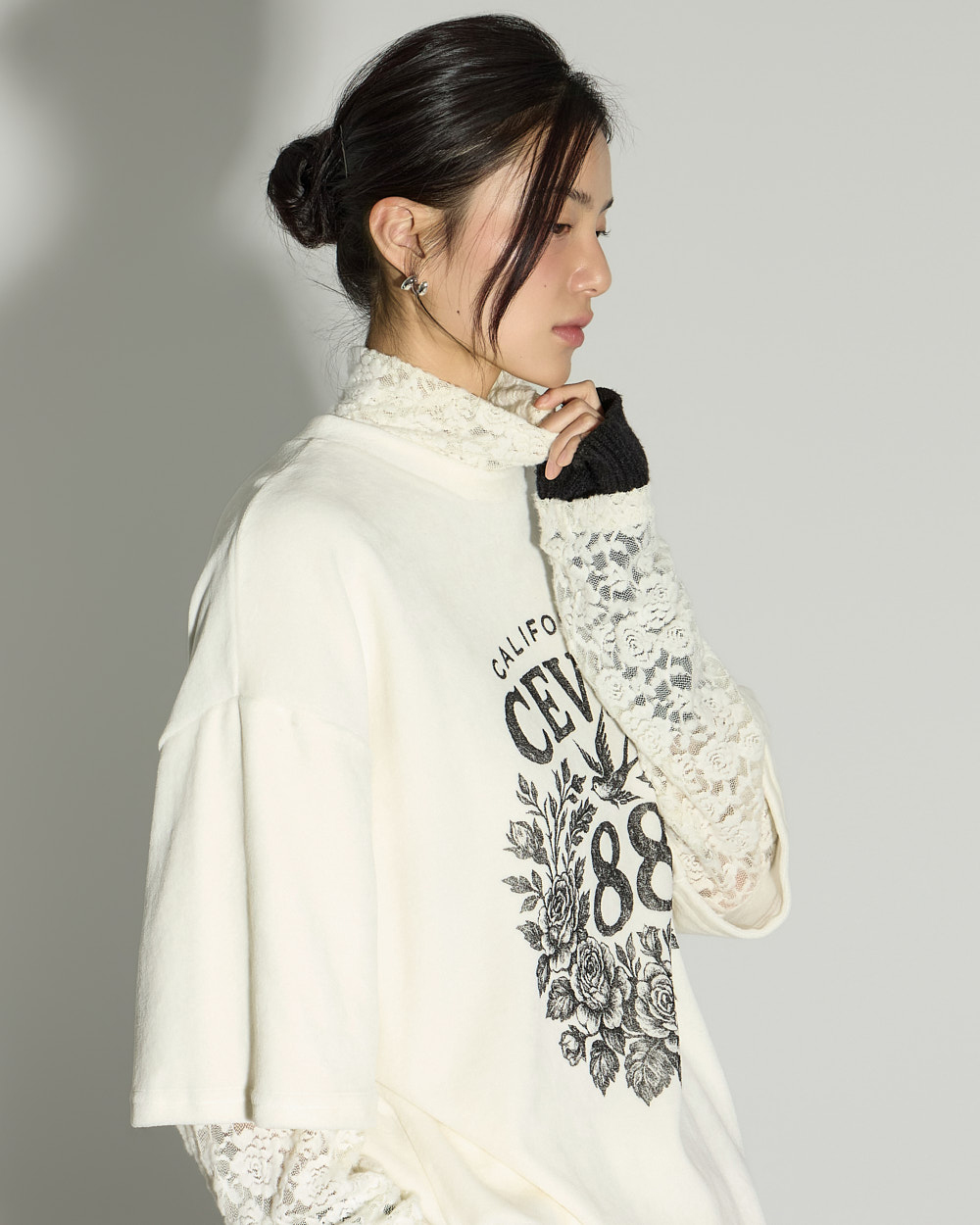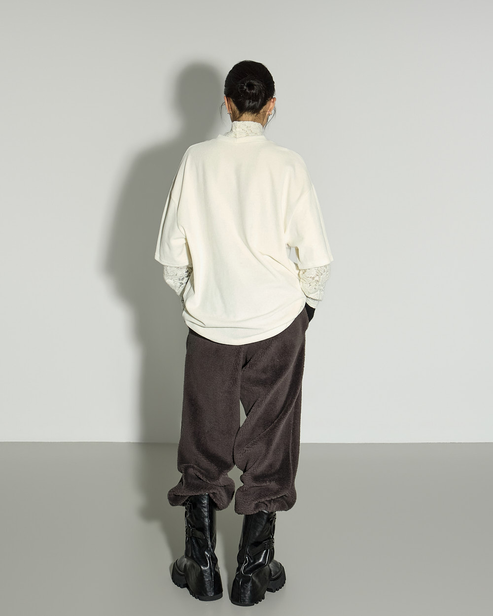 模特身高 171CM,穿 ONE 尺码,颜色为象牙白。