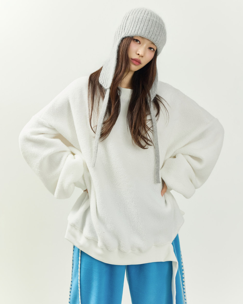 171CM 모델 ONE 사이즈, AQUA BLUE 컬러 착용하였습니다.