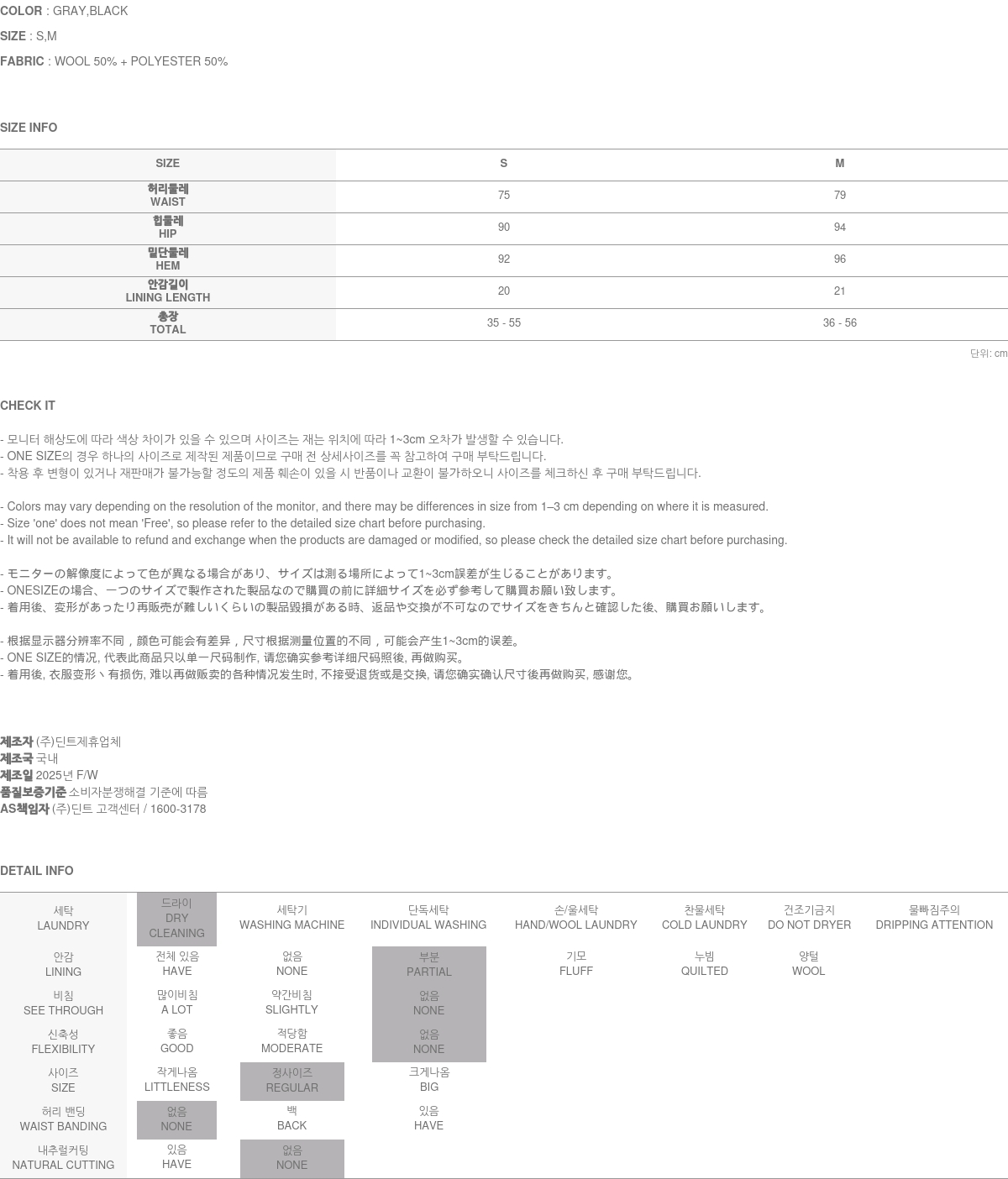 采用羊毛与聚酯纤维混纺面料制作,