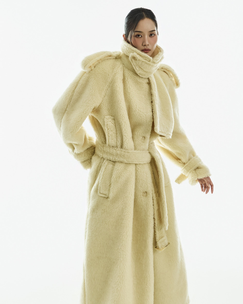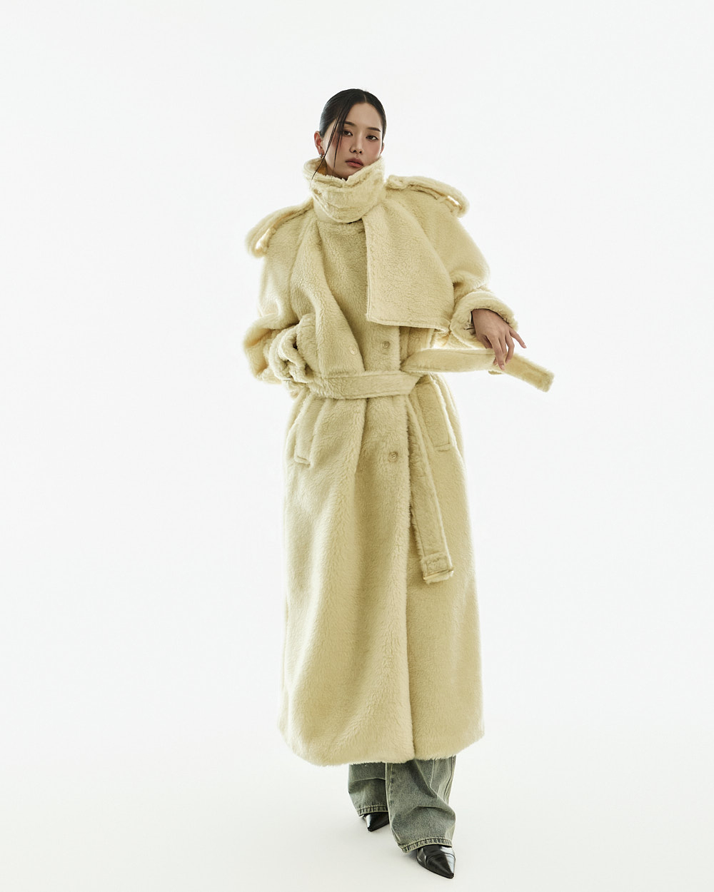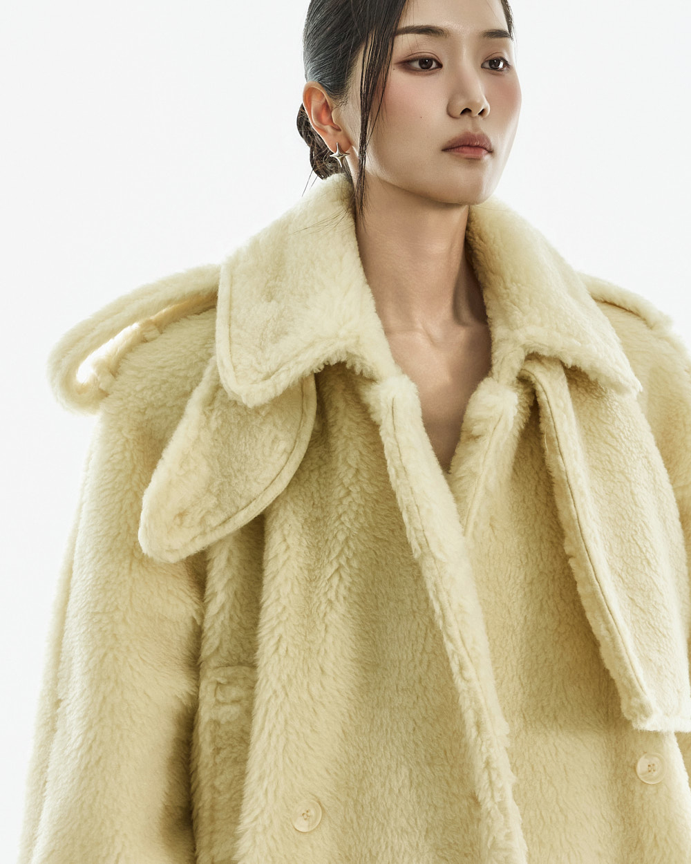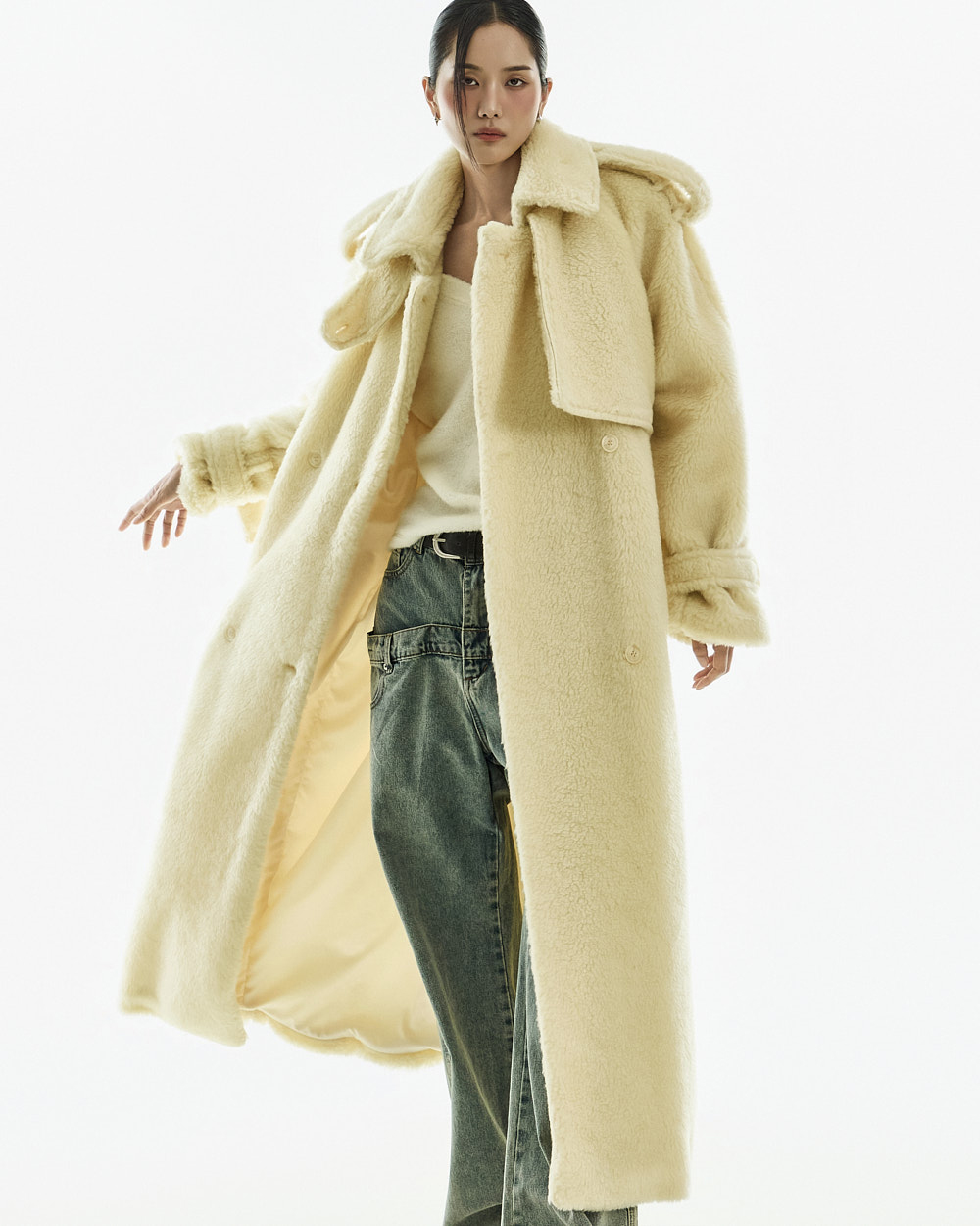 这是一款充满独特氛围的毛绒外套。