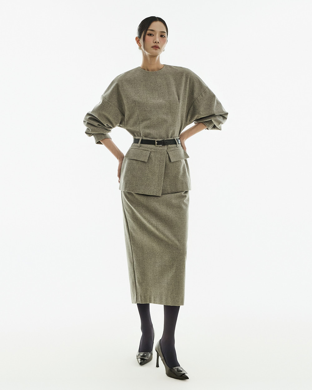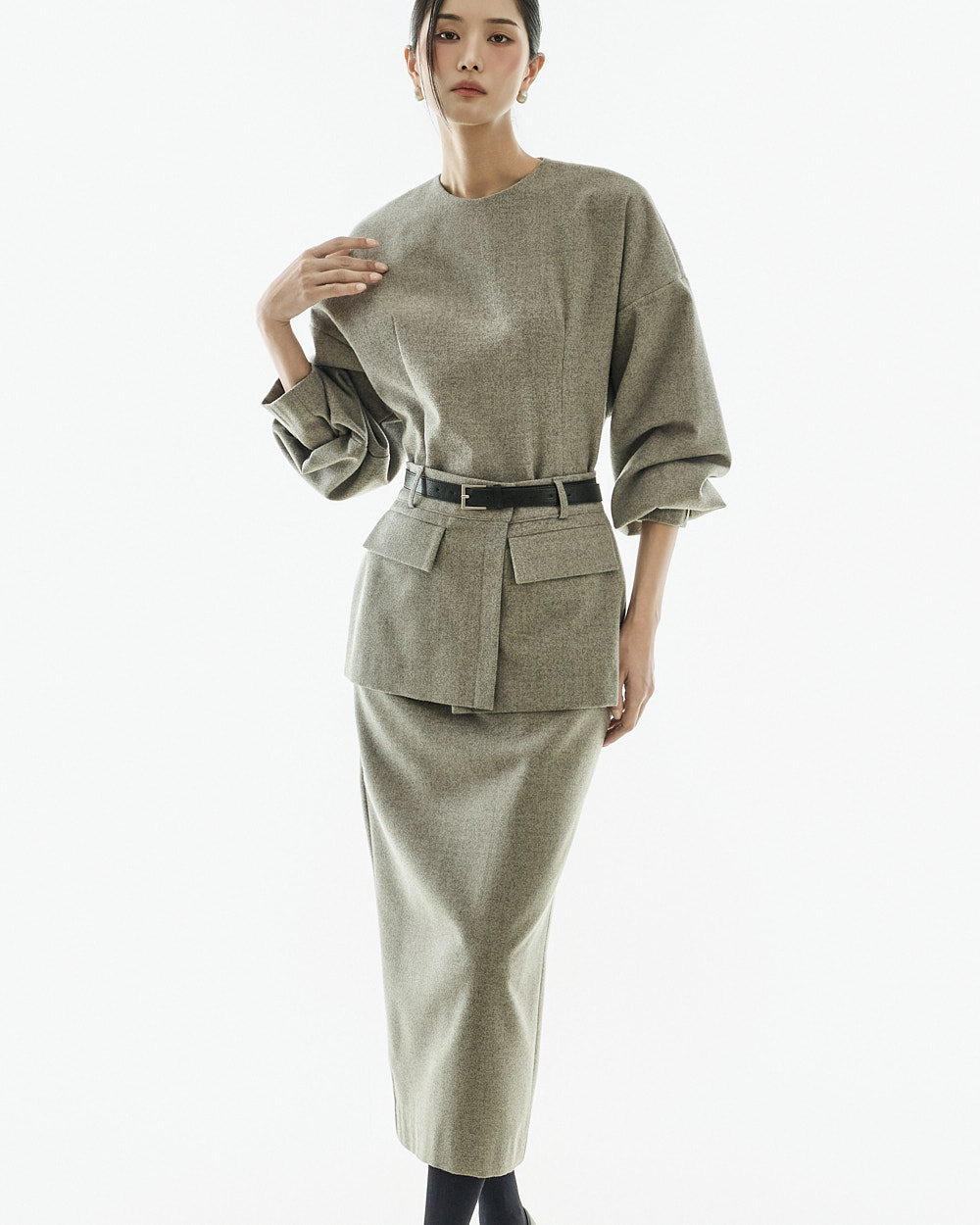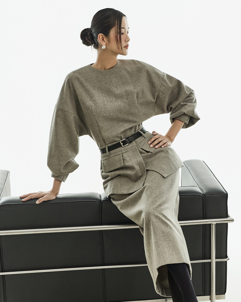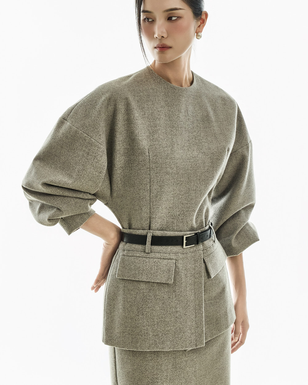 IVORY 配色搭配金色扣环腰带,GRAY 配色搭配银色扣环腰带,