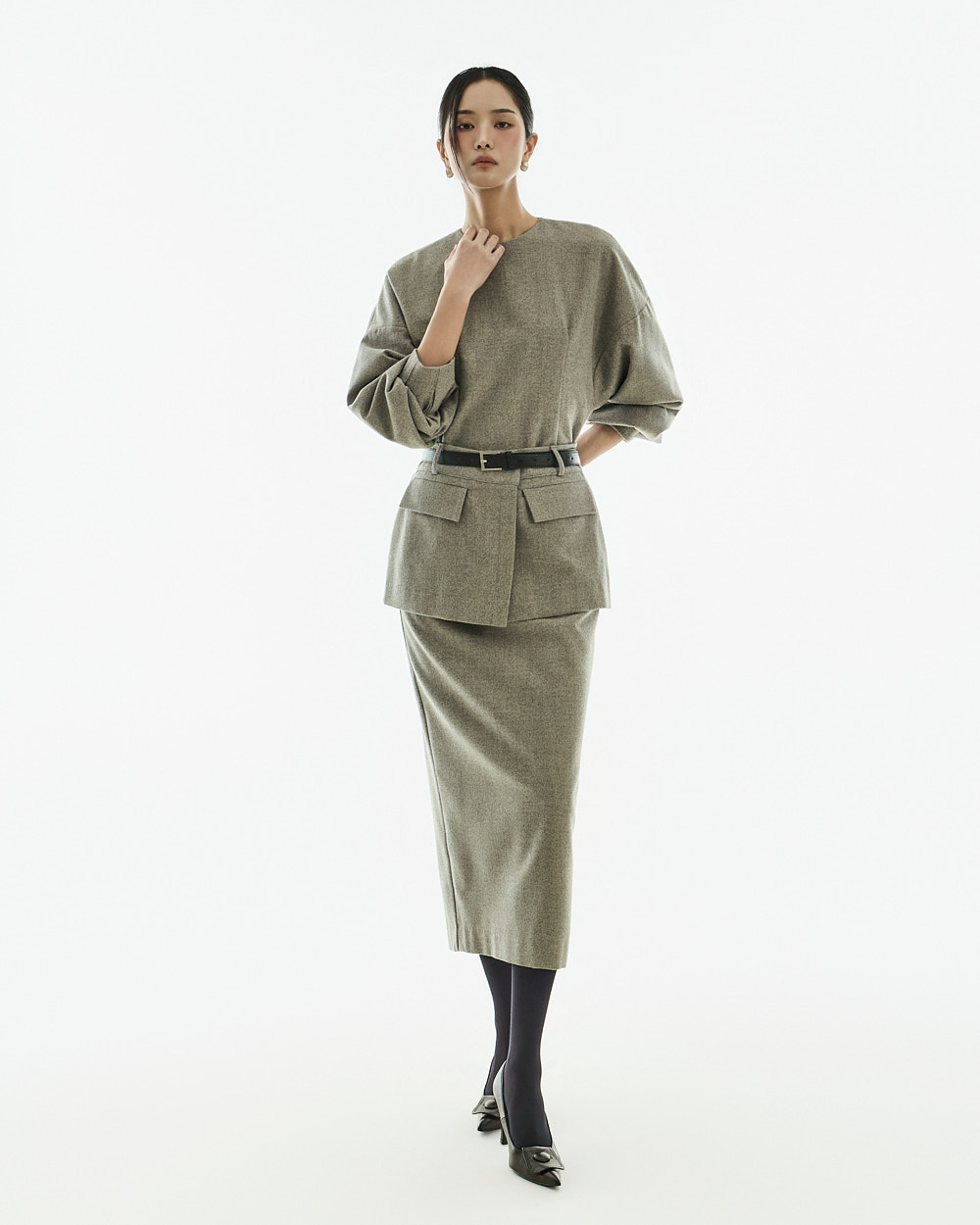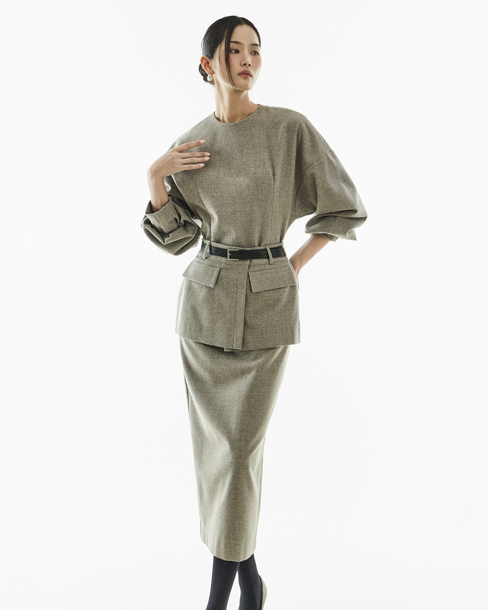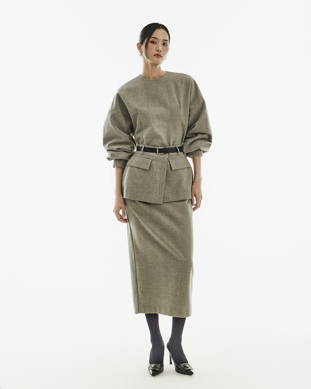 IVORY 配色搭配金色扣环腰带,GRAY 配色搭配银色扣环腰带,