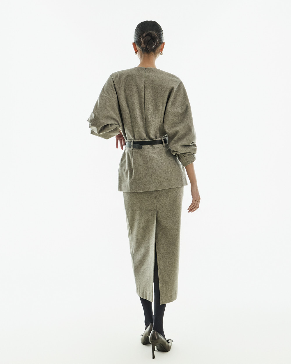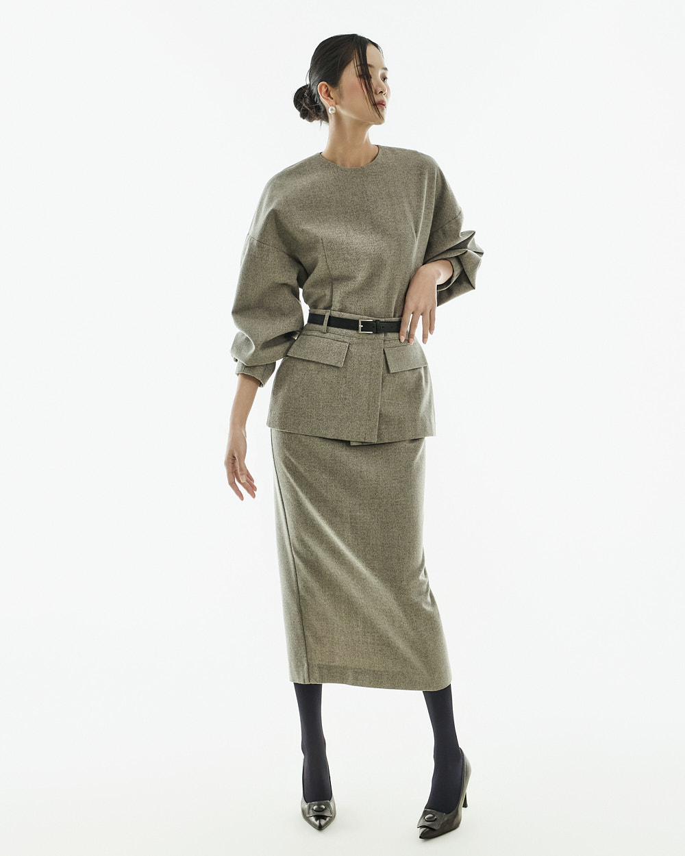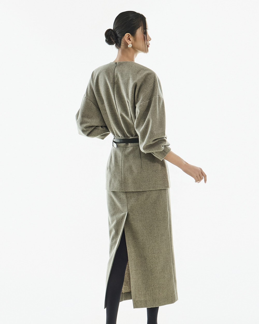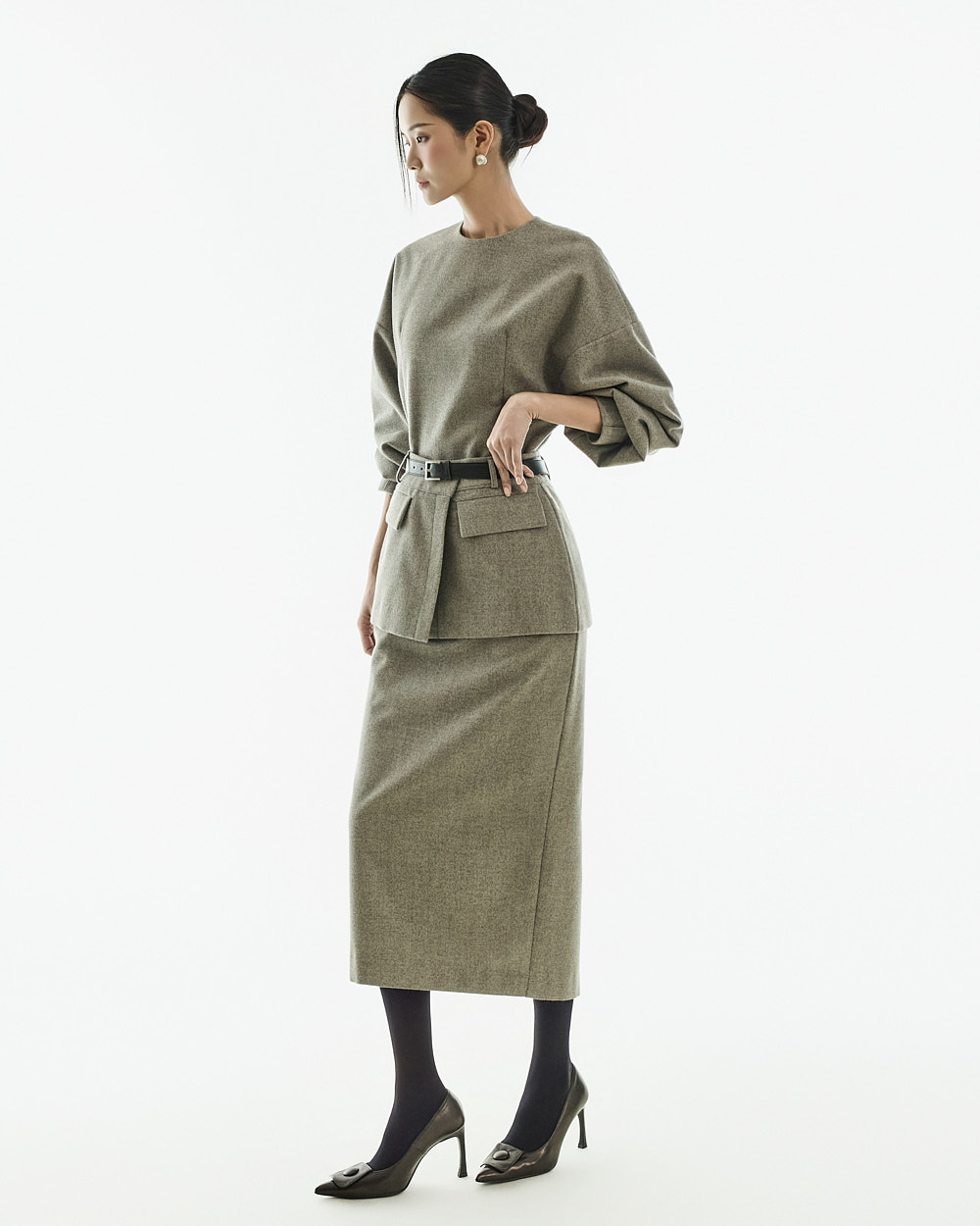 IVORY 配色搭配金色扣环腰带,GRAY 配色搭配银色扣环腰带,