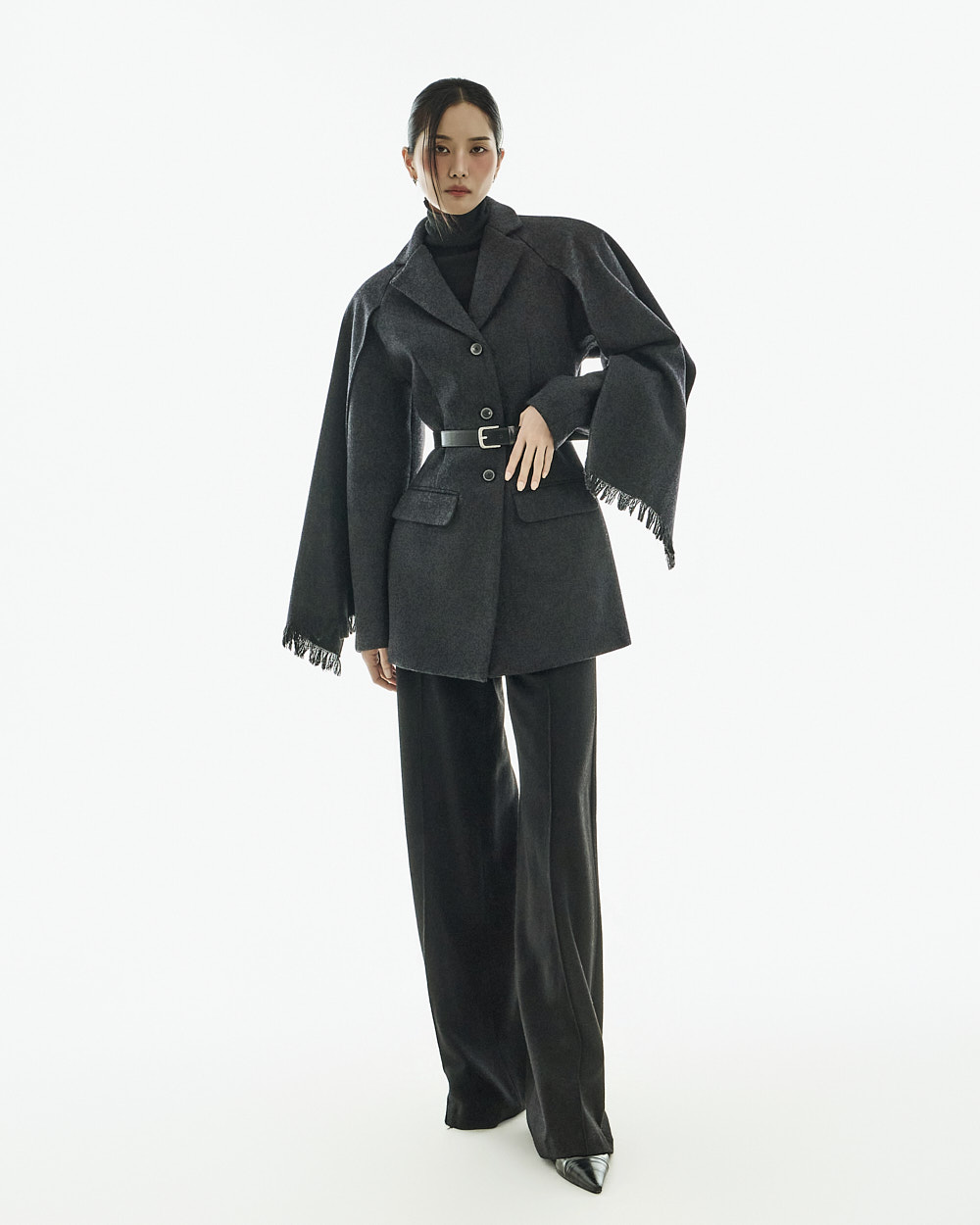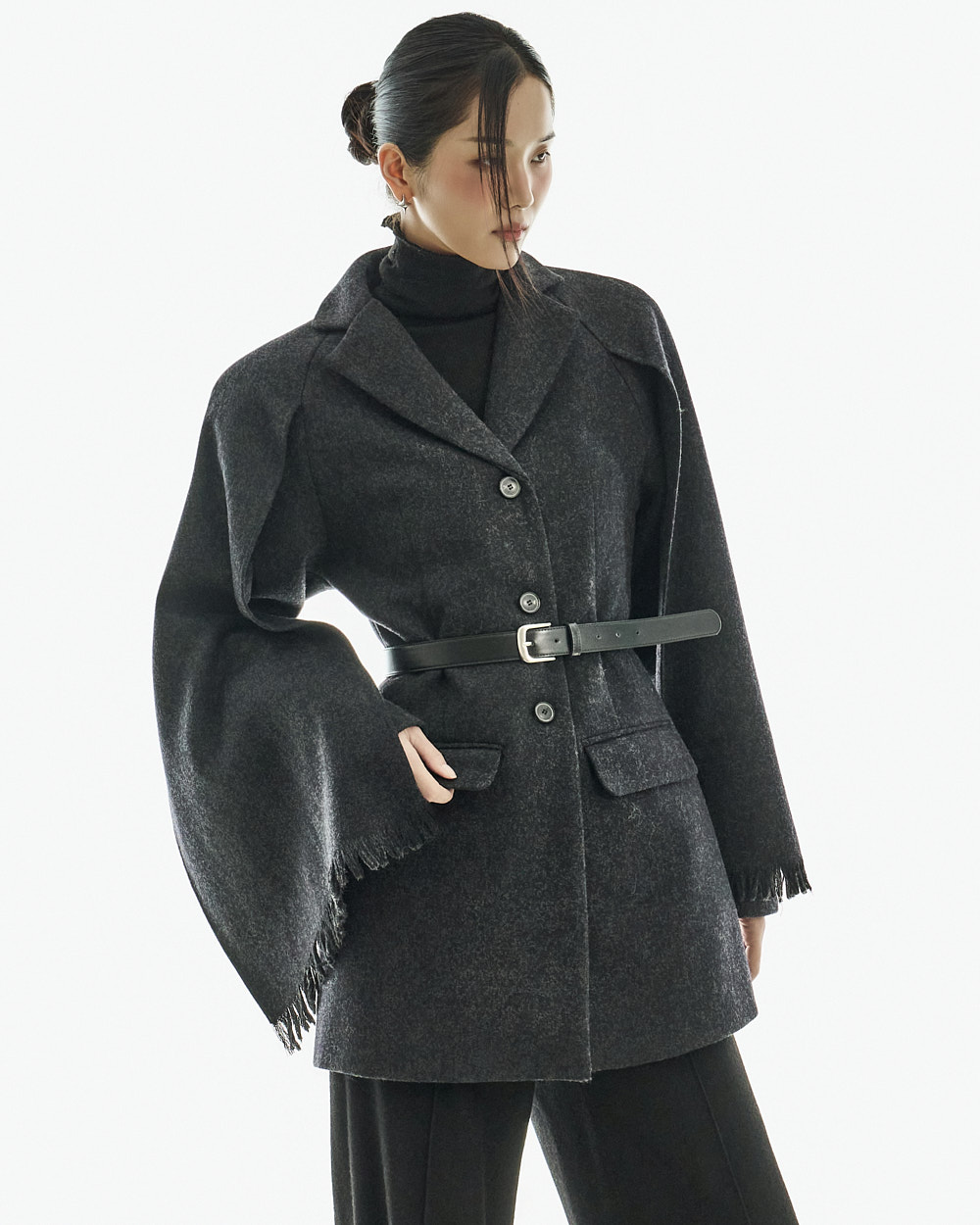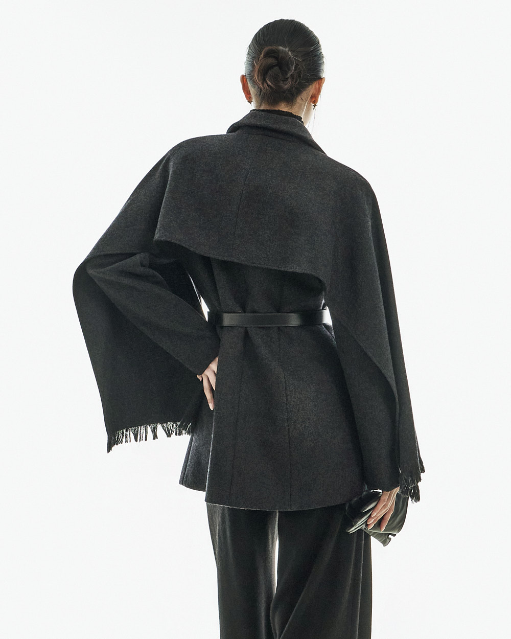 如披肩般自然垂落的袖型增添优雅气息,