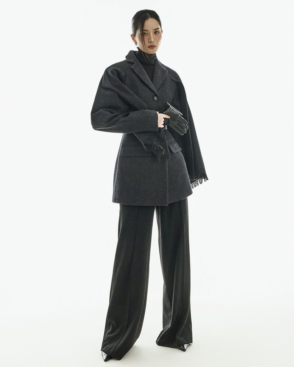 这是一款高雅且优雅氛围的羊毛大衣。