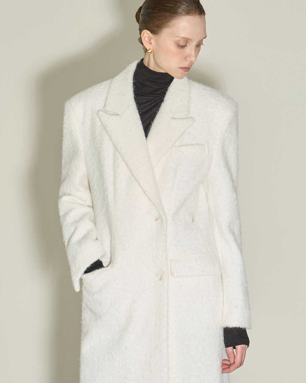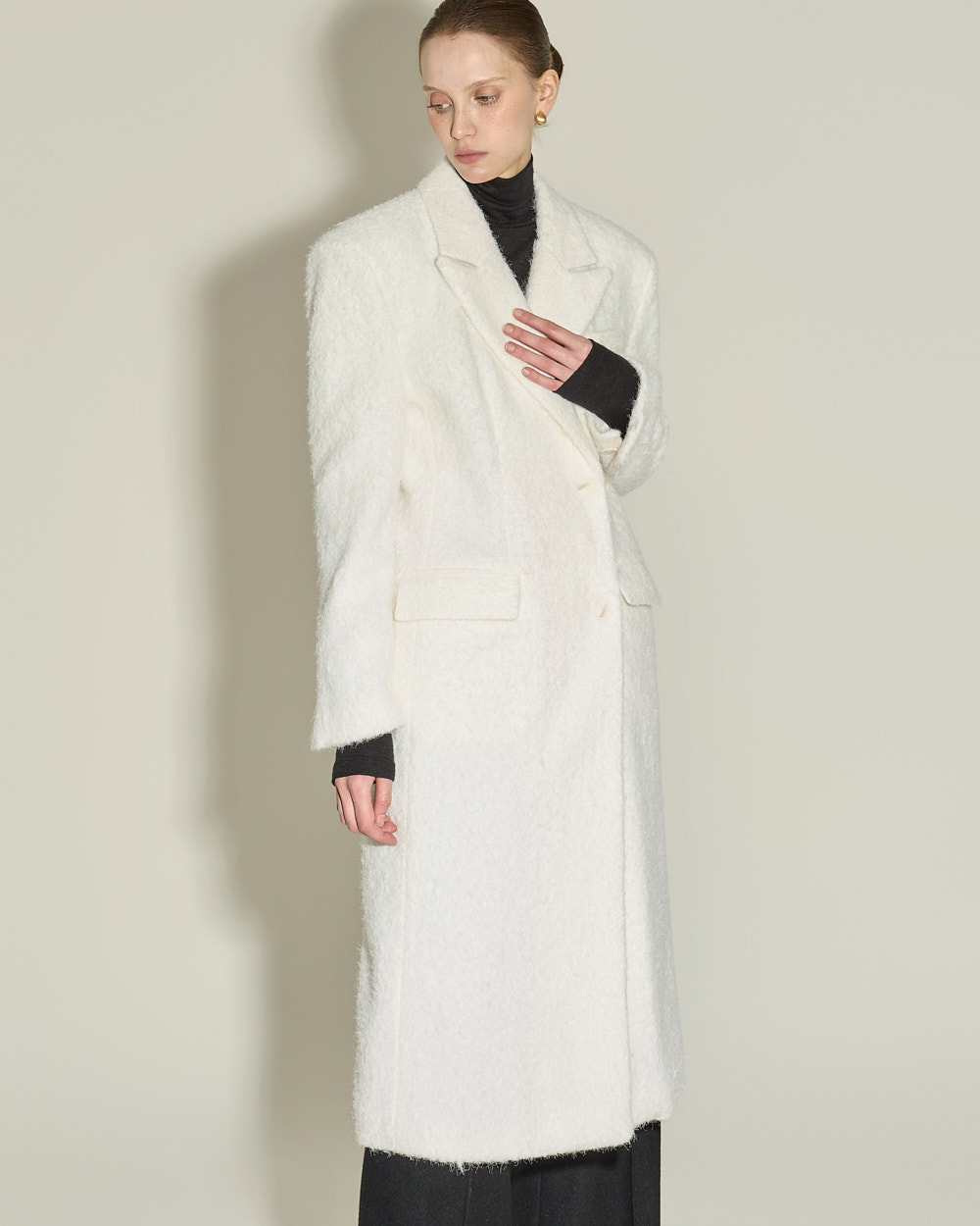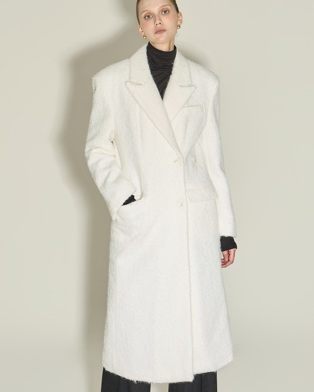 毛圈呢般的蓬松纹理带来温暖触感,