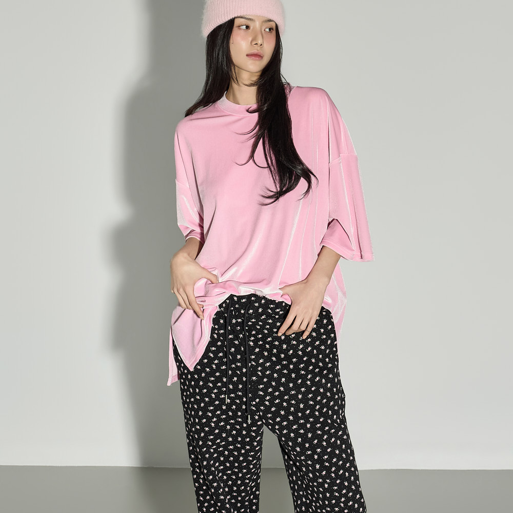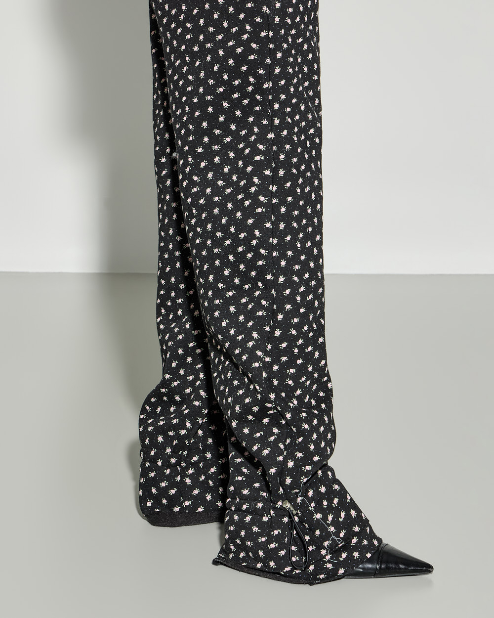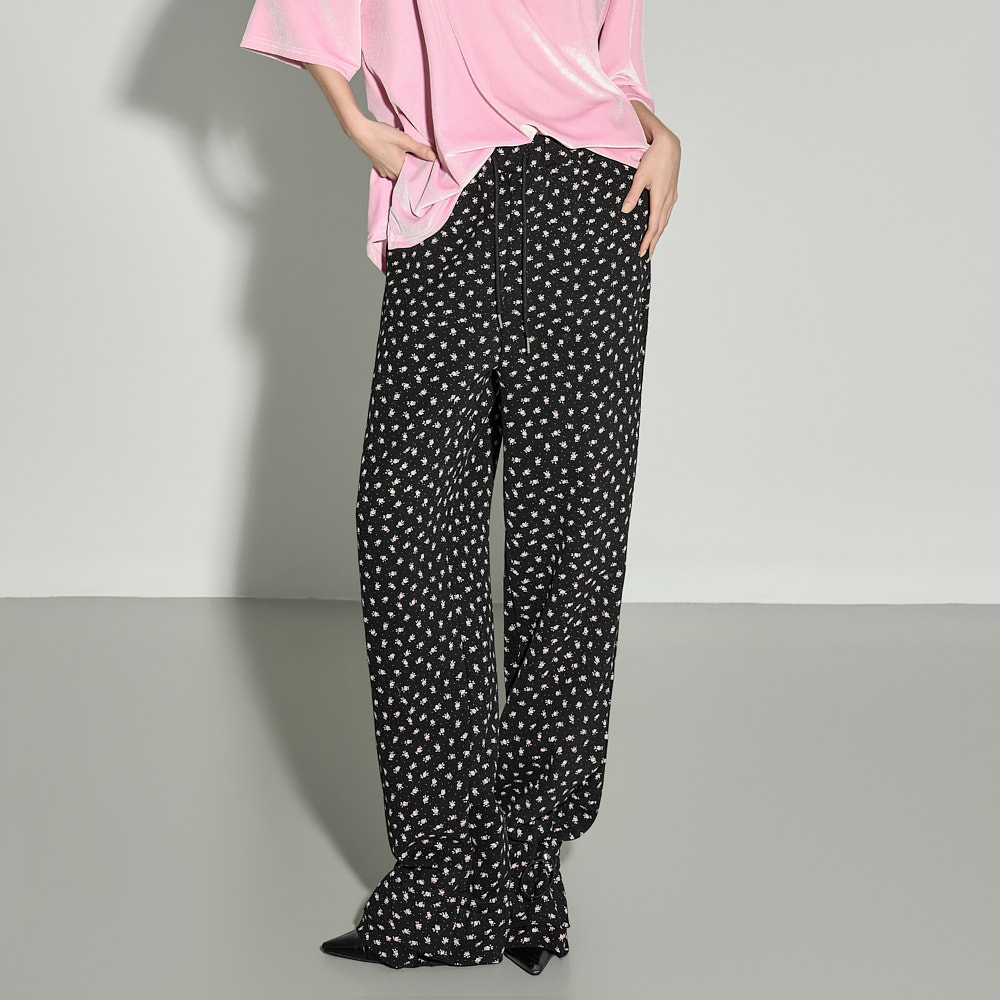 休闲氛围感的花朵荷叶边加绒长裤。