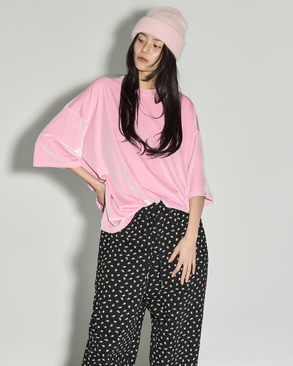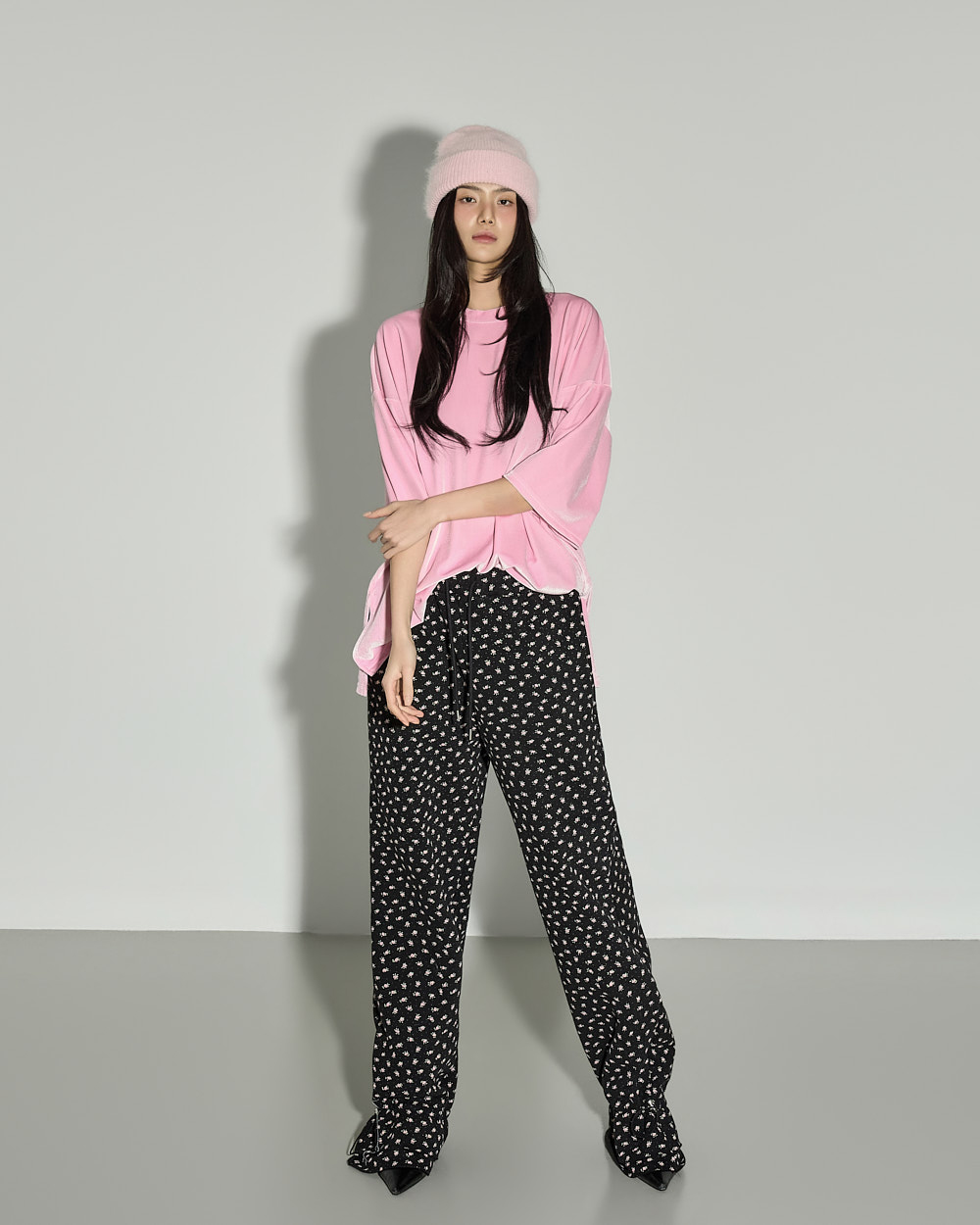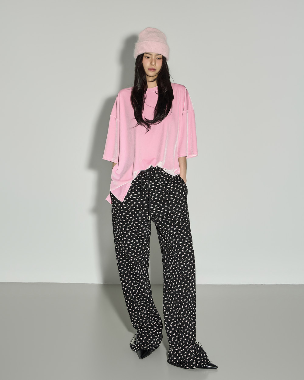 休闲氛围感的花朵荷叶边加绒长裤。