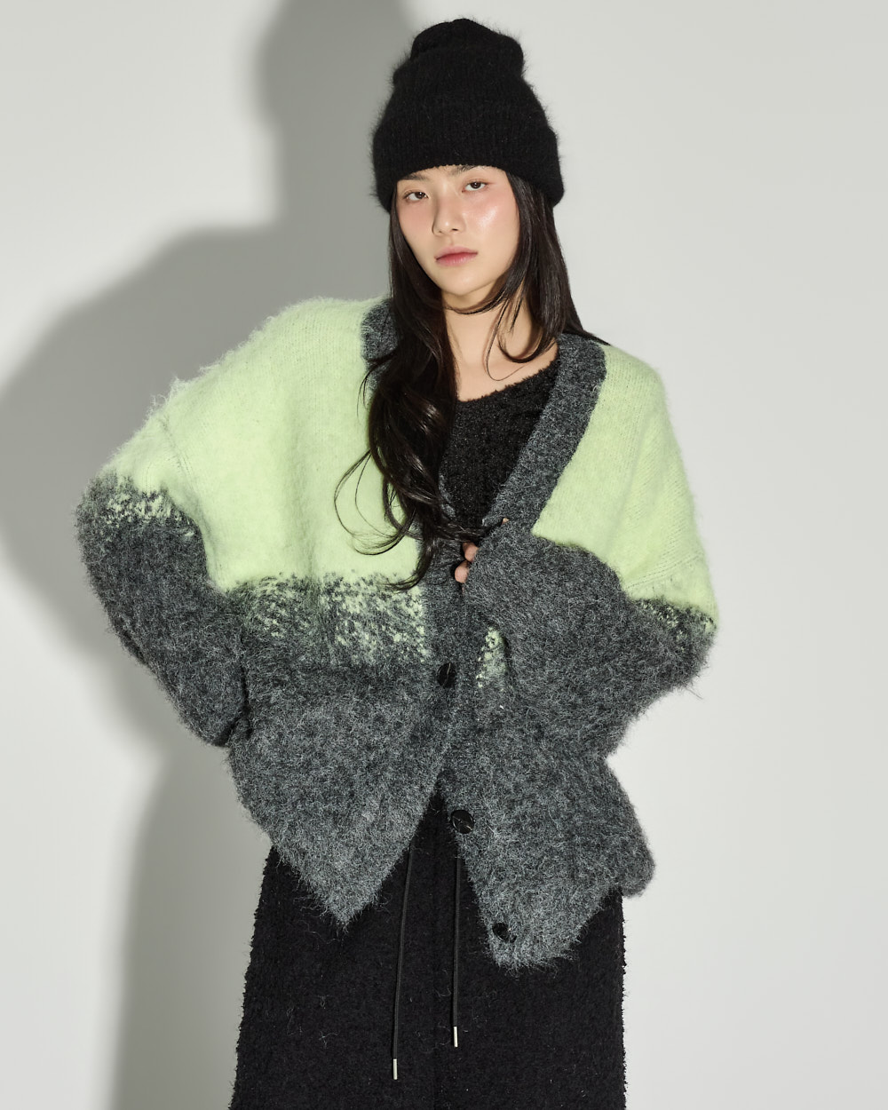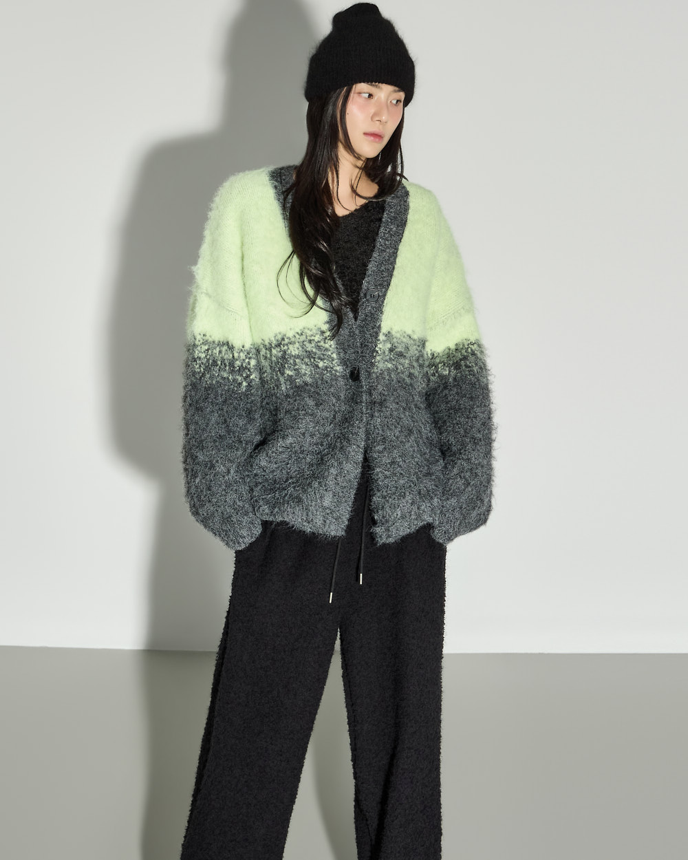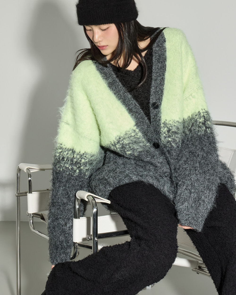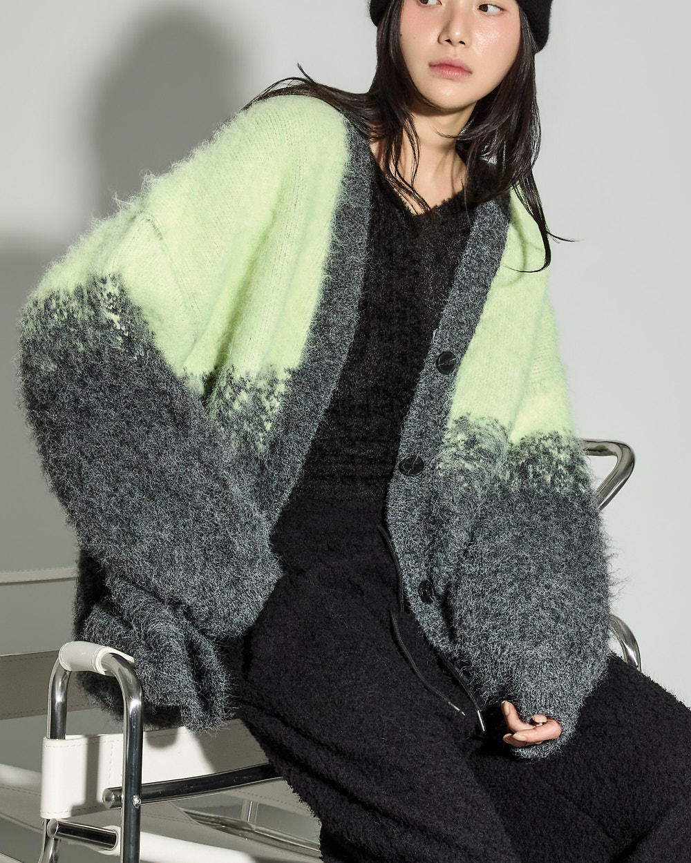 데일리 포인트룩으로 모두 착용하기 좋은 헤어리 가디건입니다.