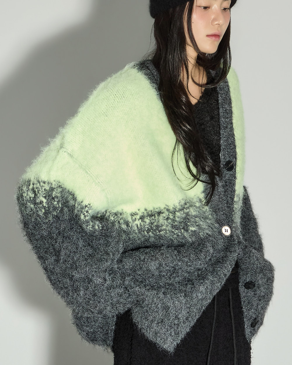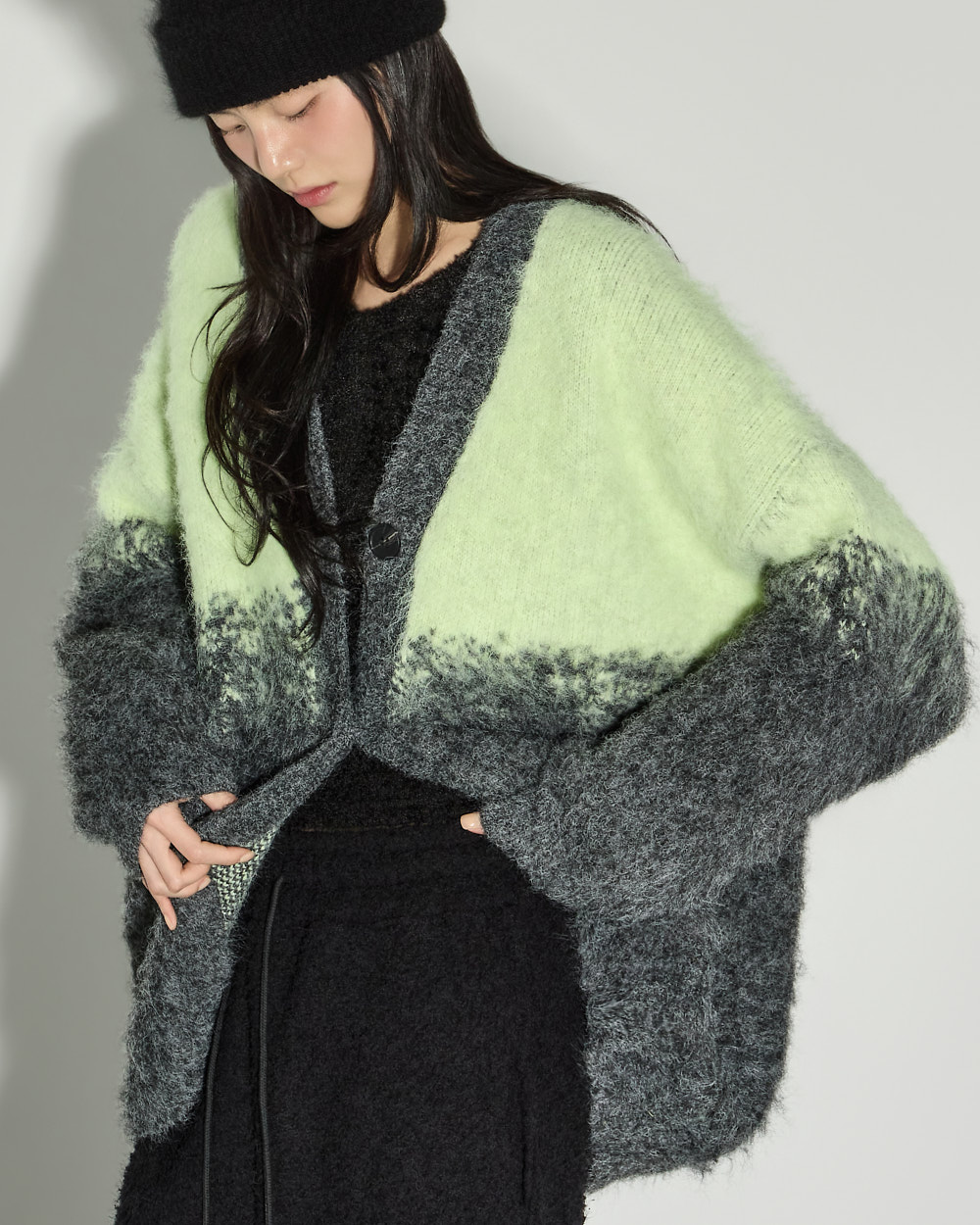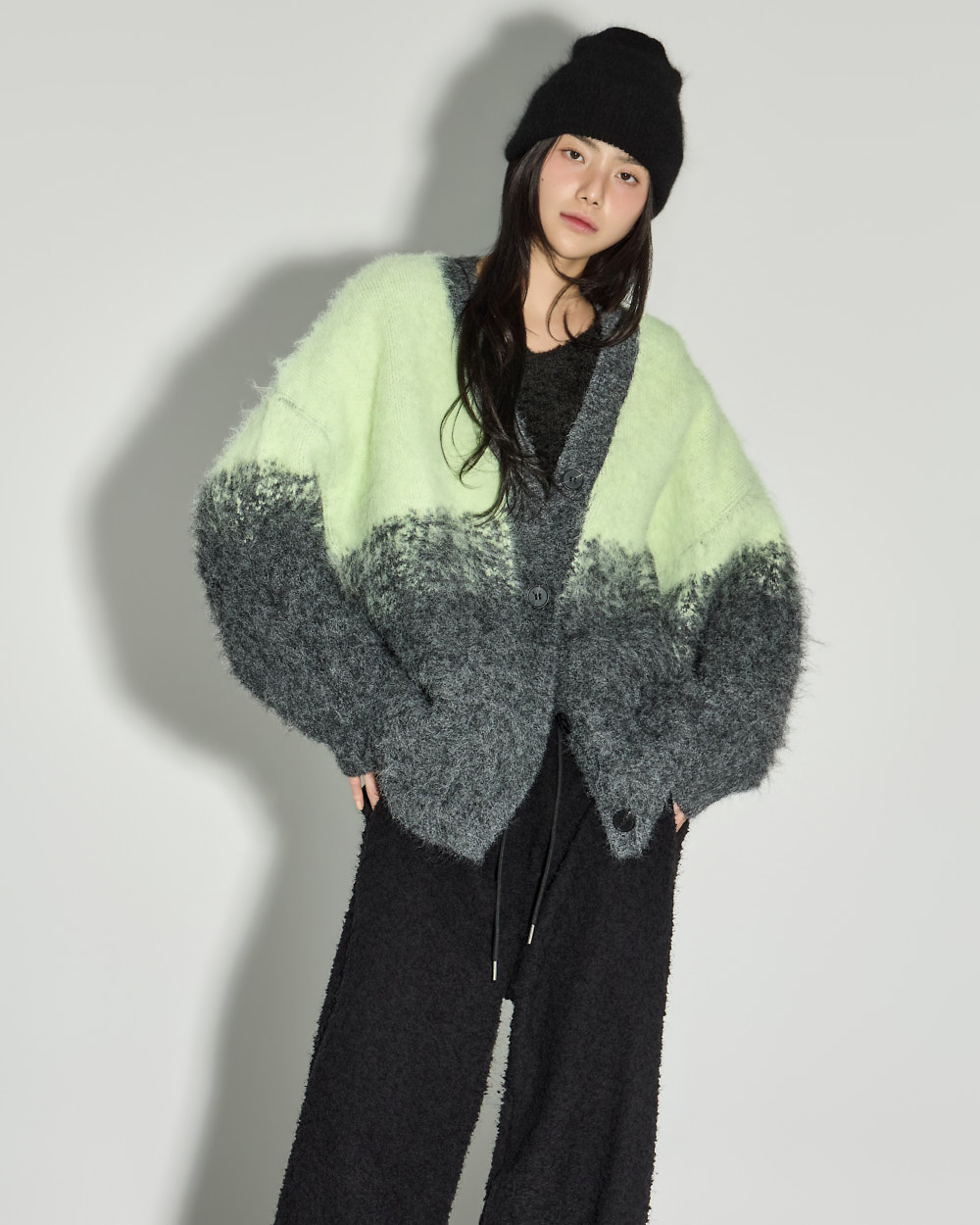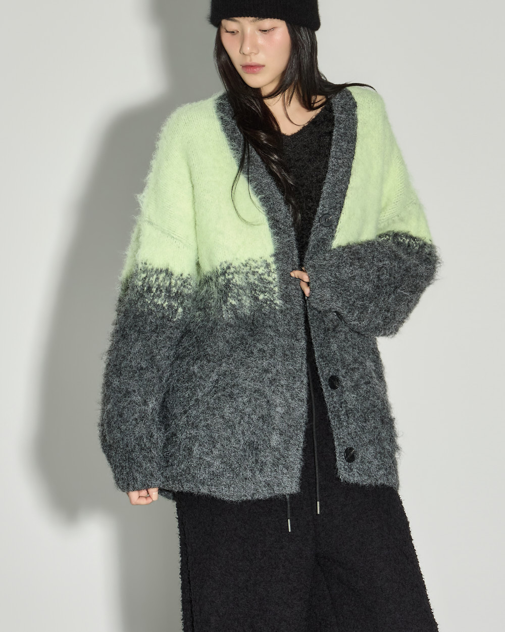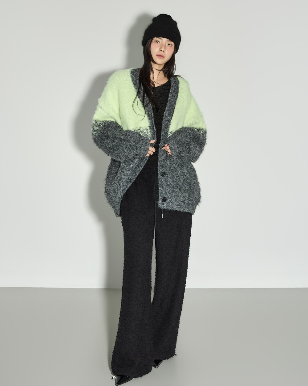 데일리 포인트룩으로 모두 착용하기 좋은 헤어리 가디건입니다.