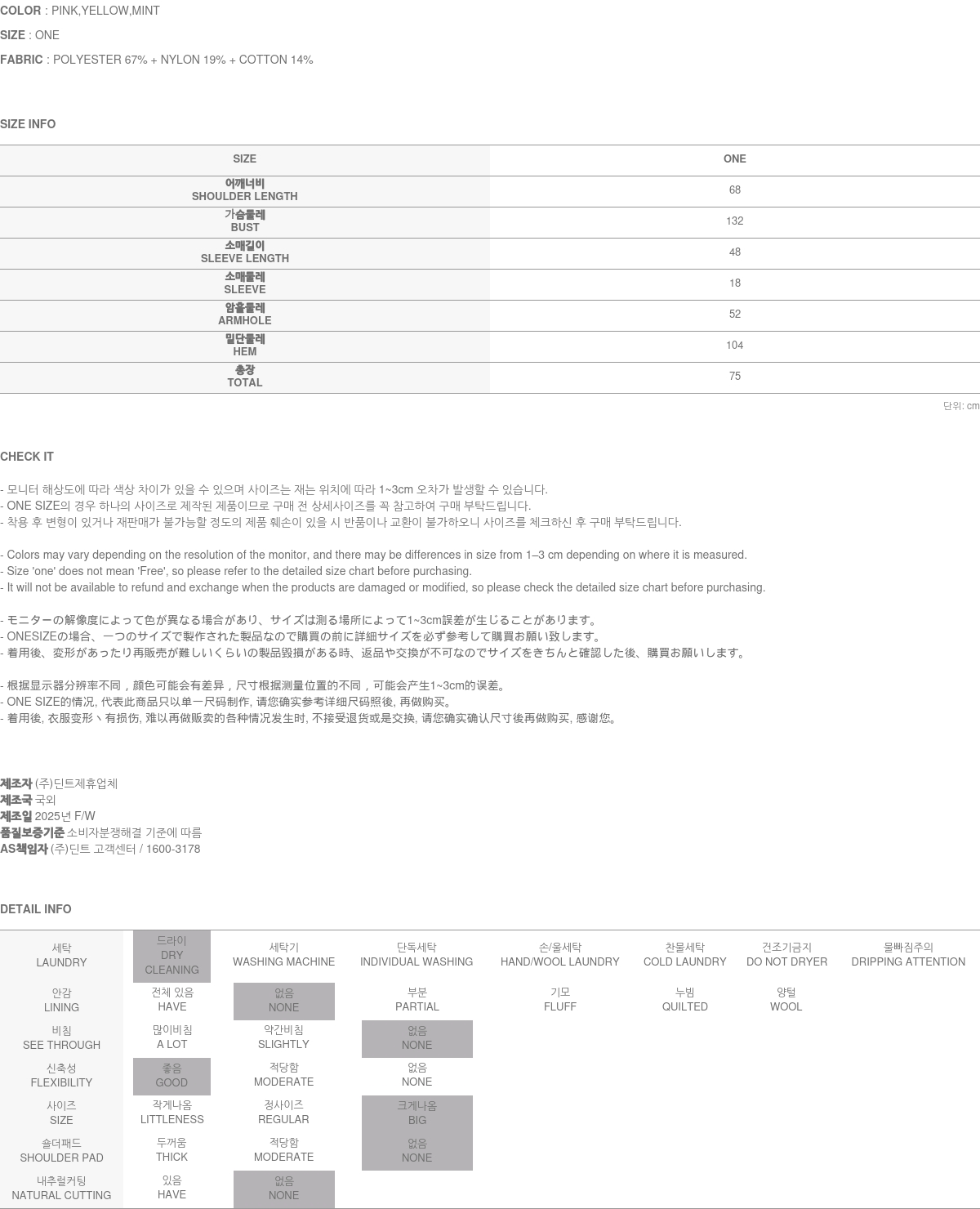 171CM 모델 ONE 사이즈, MINT 컬러 착용하였습니다.