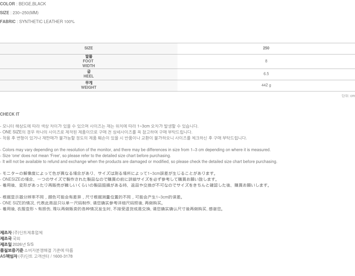 洗滌方法 與 處理時的注意事項 DINT的所有商品, 使用一般洗滌或是烘乾機, 皆有可能成爲變形或是商品損傷的原因, 建議您使用乾洗. 鞋子污染情況時, 建議您在受污染的部分, 塗上極少量的清潔劑, 進行管理. 包類商品水洗時, 有可能造成變形, 皮革商品類, 請使用皮革專用清潔劑做管理. 飾品類經過長時間的保管與着用時, 有可能造成變形. (保管時, 請個別分離做保管, 且建議使用專用管理產品做分類管理.) 丹寧商品的部分, 商品特徵上洗滌時有可能會掉色, 着用時請多加留意.
