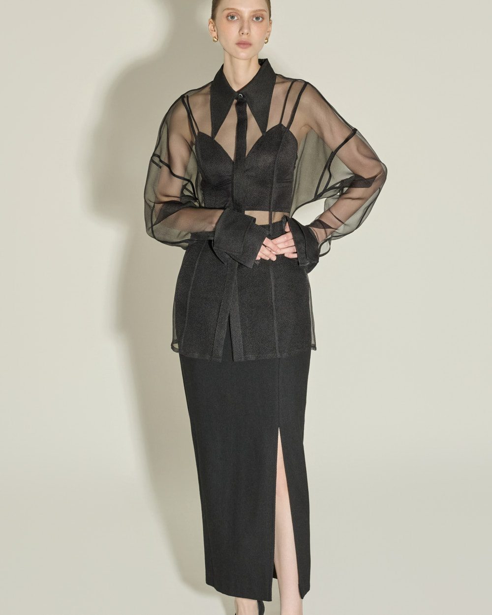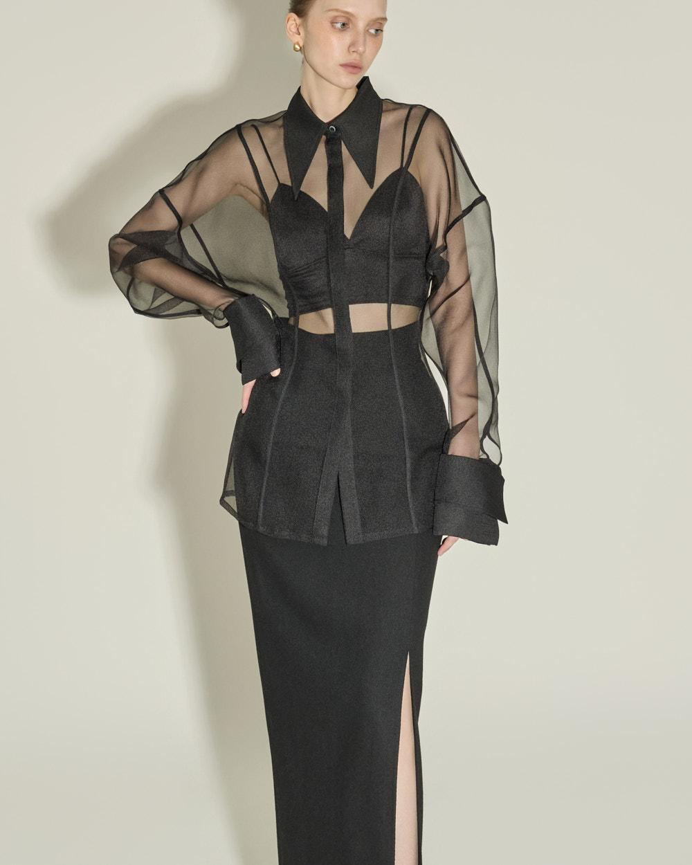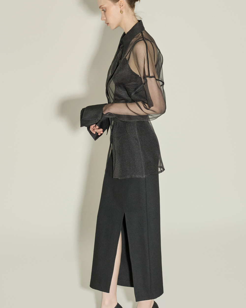 侧边深开叉设计增添时尚感,