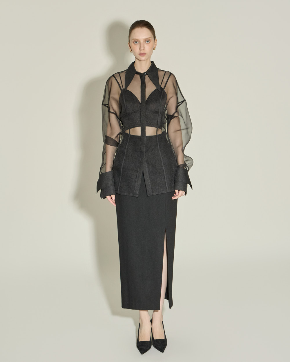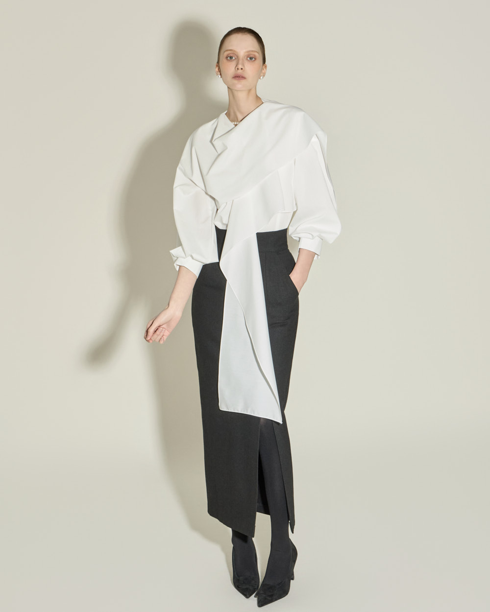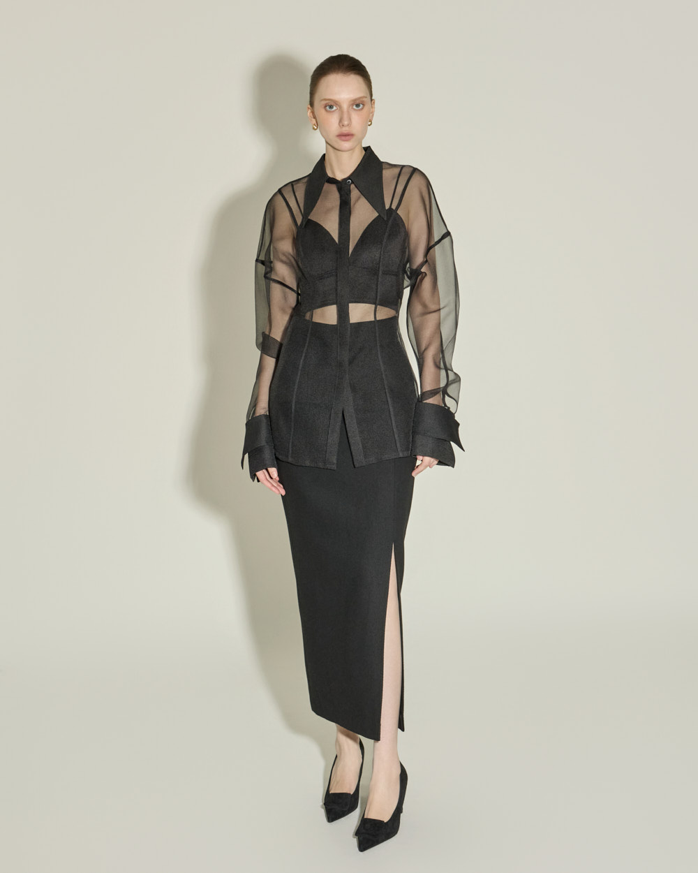 侧边深开叉设计增添时尚感,