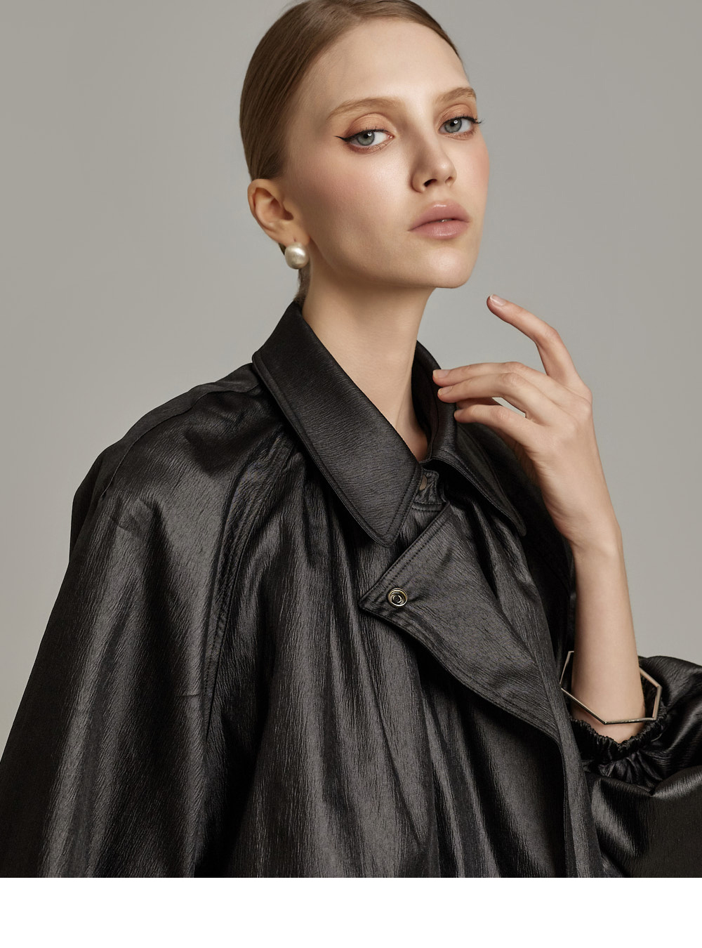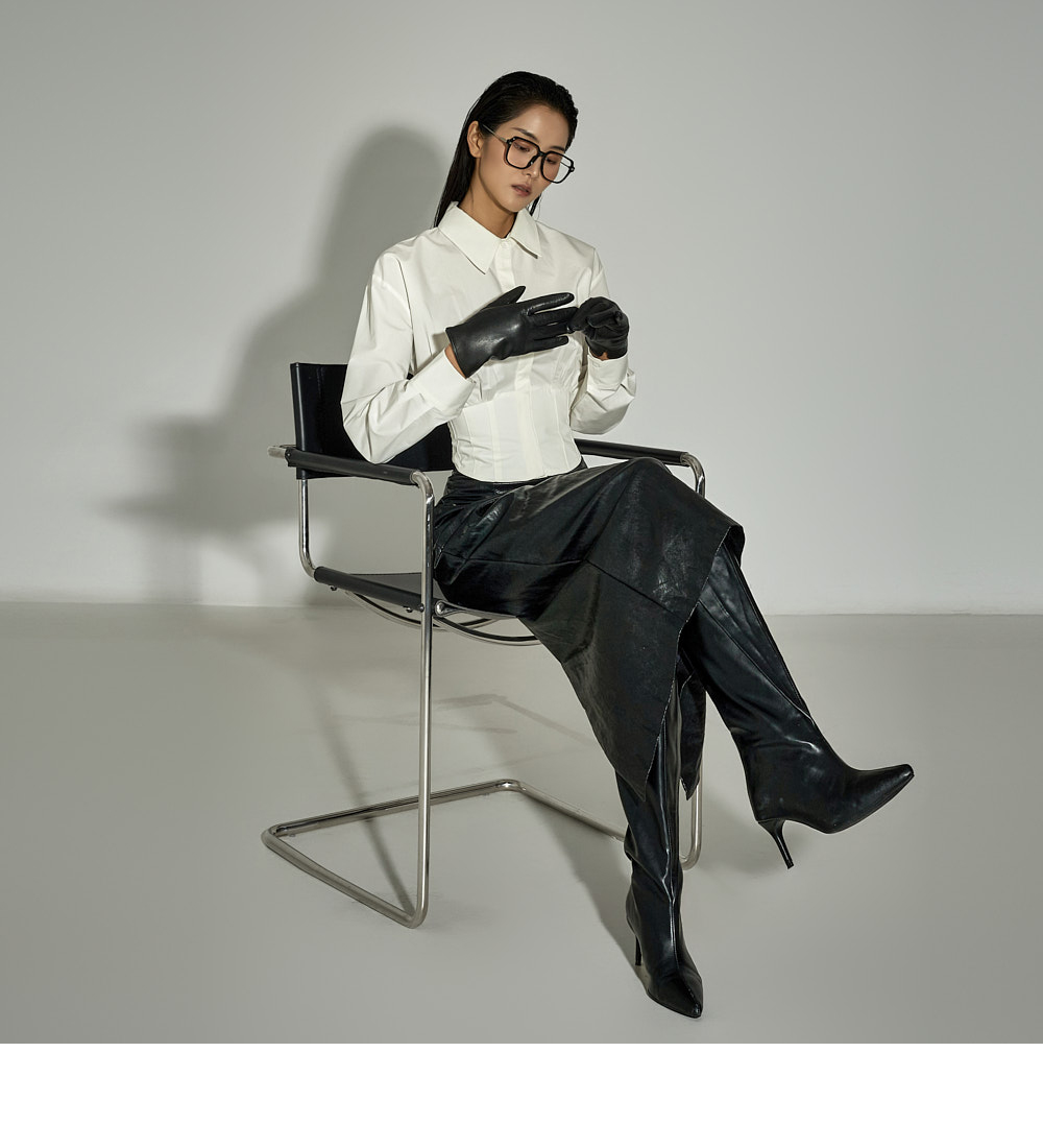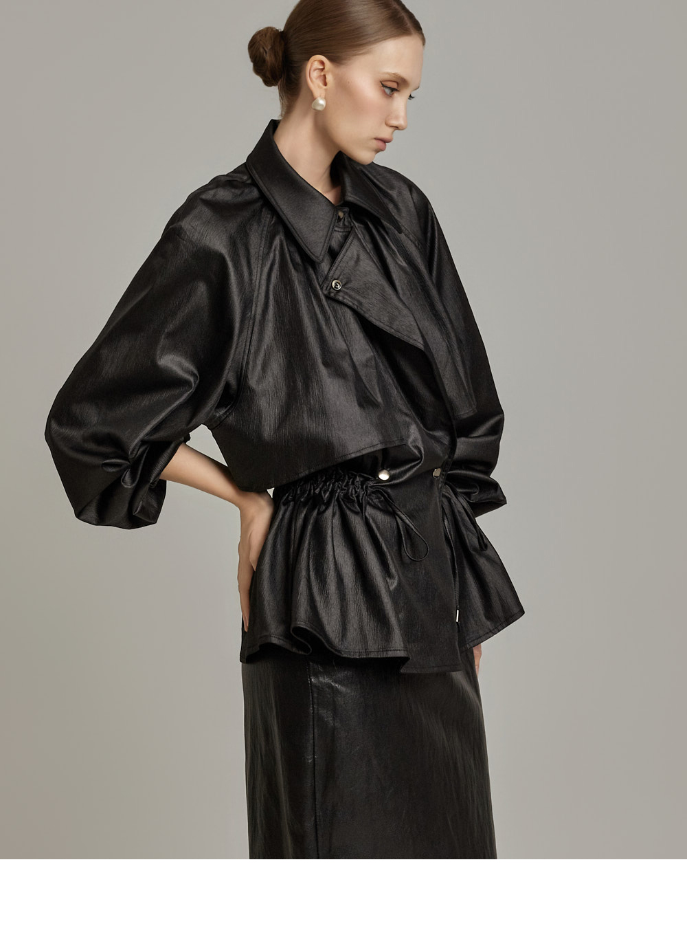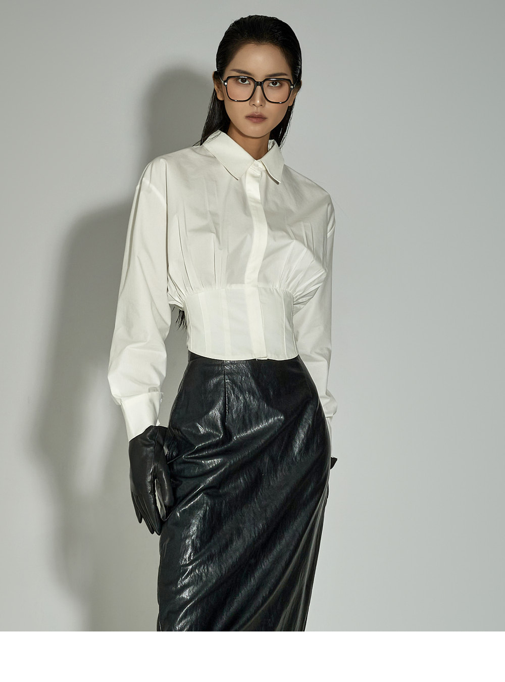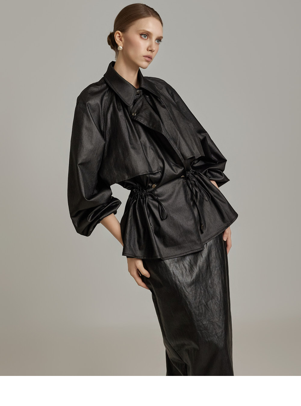 这是一款散发独特气质的皮革半身裙。 采用触感柔软的聚酯纤维面料,并与粘纤、钢丝纱混纺制作,提供S、M两种尺码,可根据体型选择合适款式。 后背拉链设计,方便穿脱,内衬设计带来舒适穿着感。 中长款H型裙型展现女性优雅气质,后背开衩便于活动,全皮革质感与光泽面料让造型精致,即使单穿也足够出彩。 可与多种上衣轻松搭配,简约设计便于造型,推荐给DINT的客户们。 模特身高174CM,穿S码,黑色款。