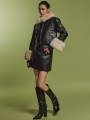 后拉链设计便于穿脱,内衬保证柔软的穿着感,带有光泽感的皮革材质增添时尚感。