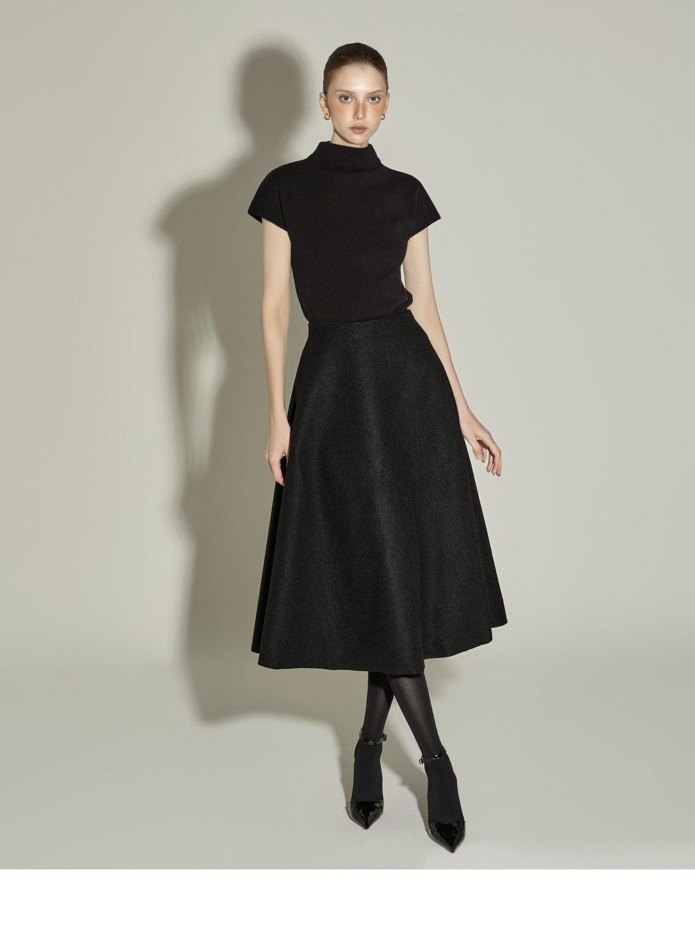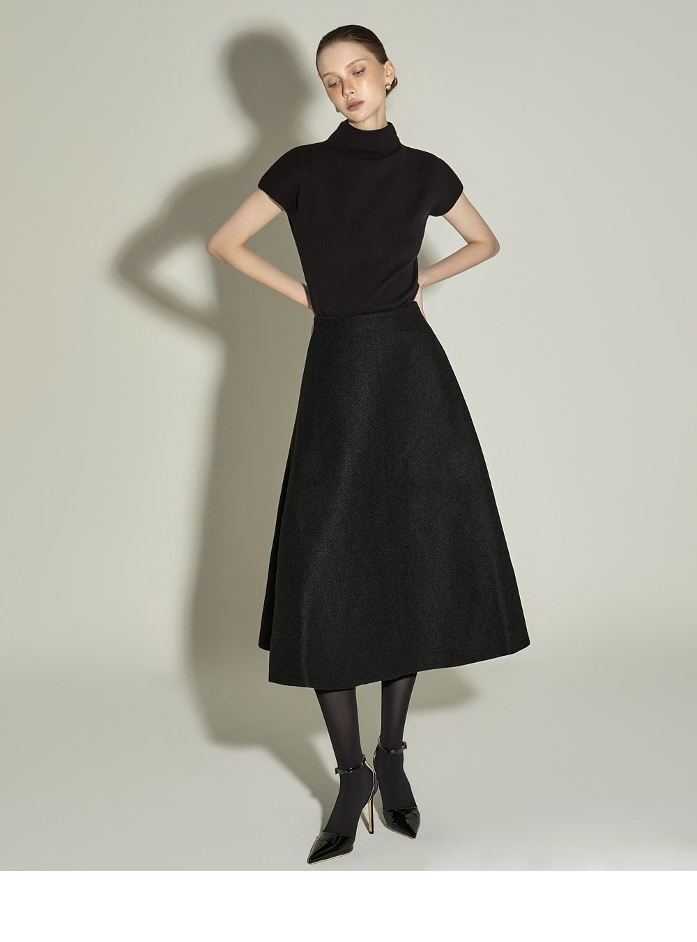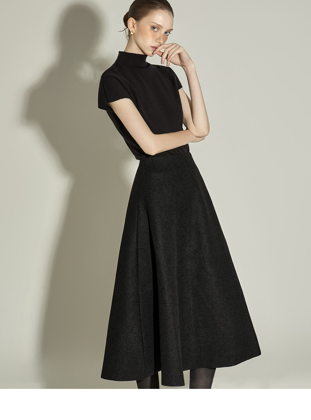 采用柔软且挺括的聚酯纤维与羊毛混纺面料制作,ONE尺码设计,适合各种体型穿着。