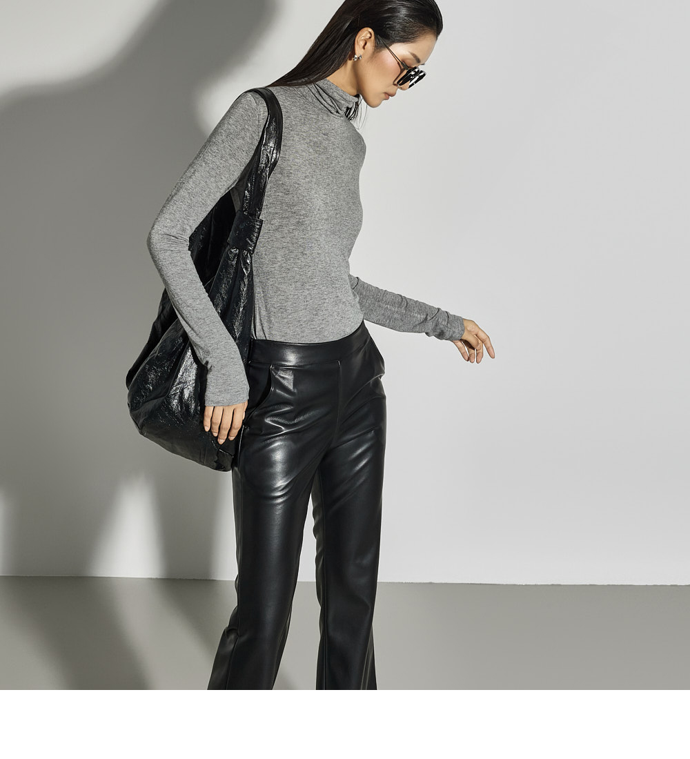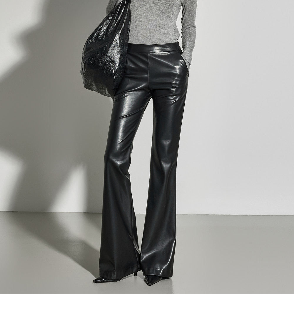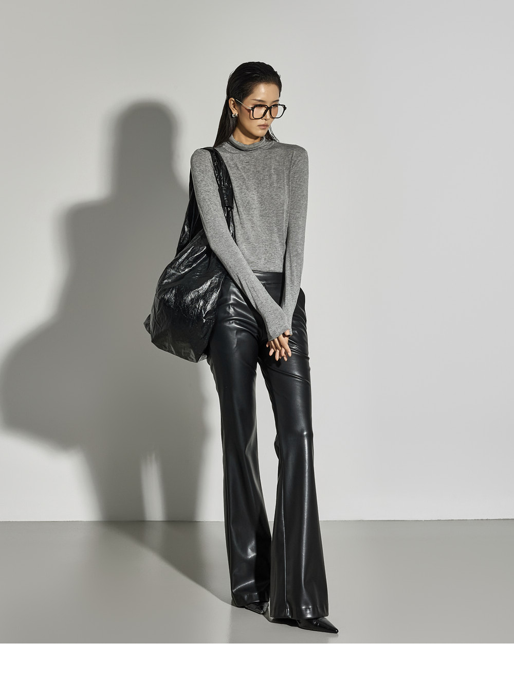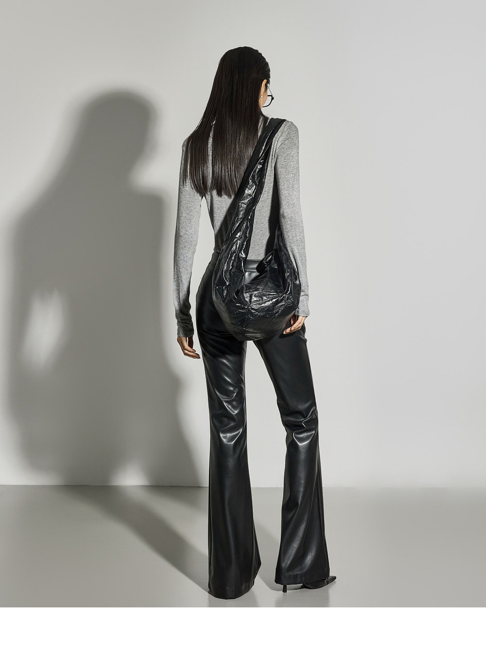 전체 레더 원단으로 유니크한 룩을 완성합니다.
