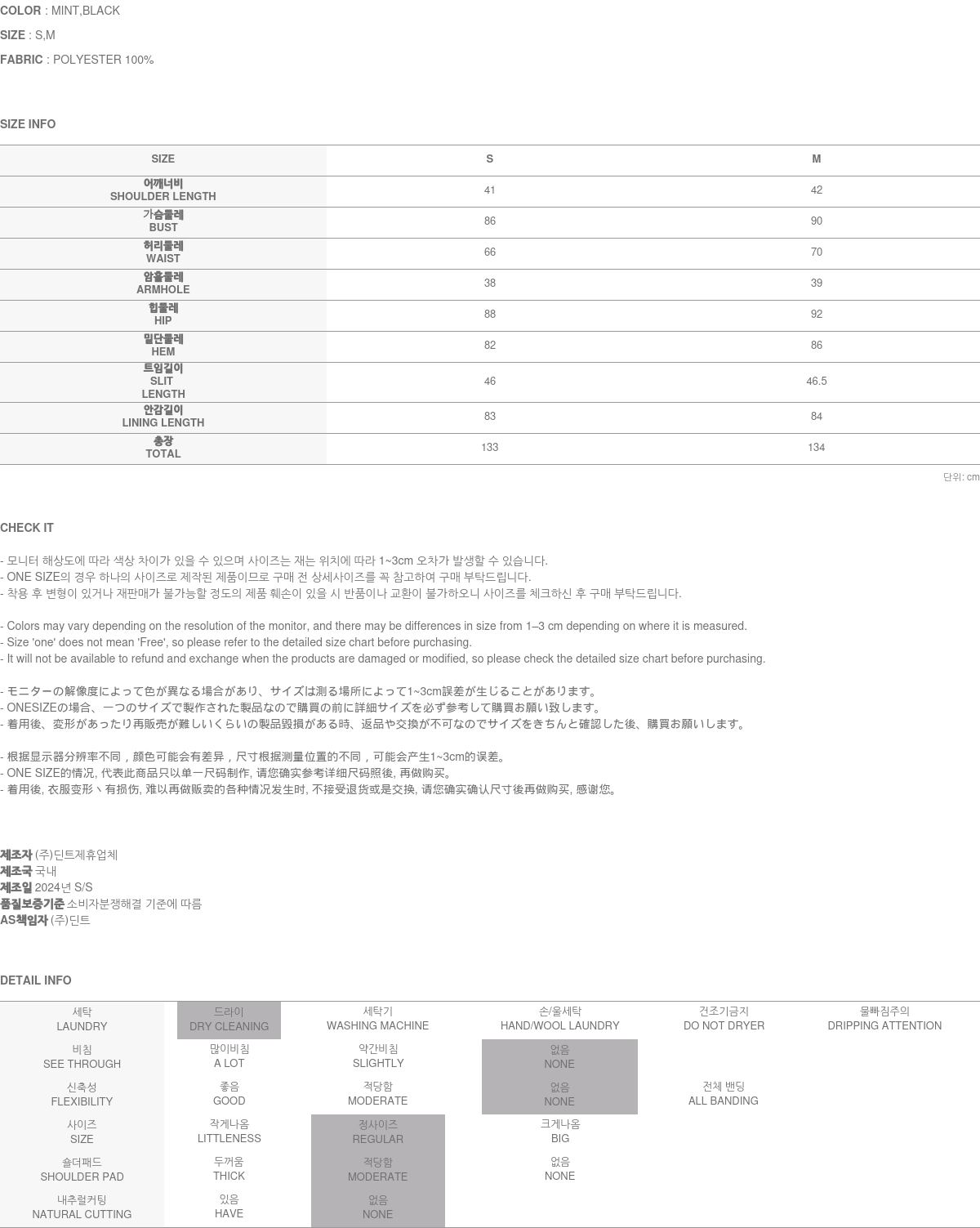 S,M 사이즈 제작으로 체형에 맞게 착용 가능합니다.