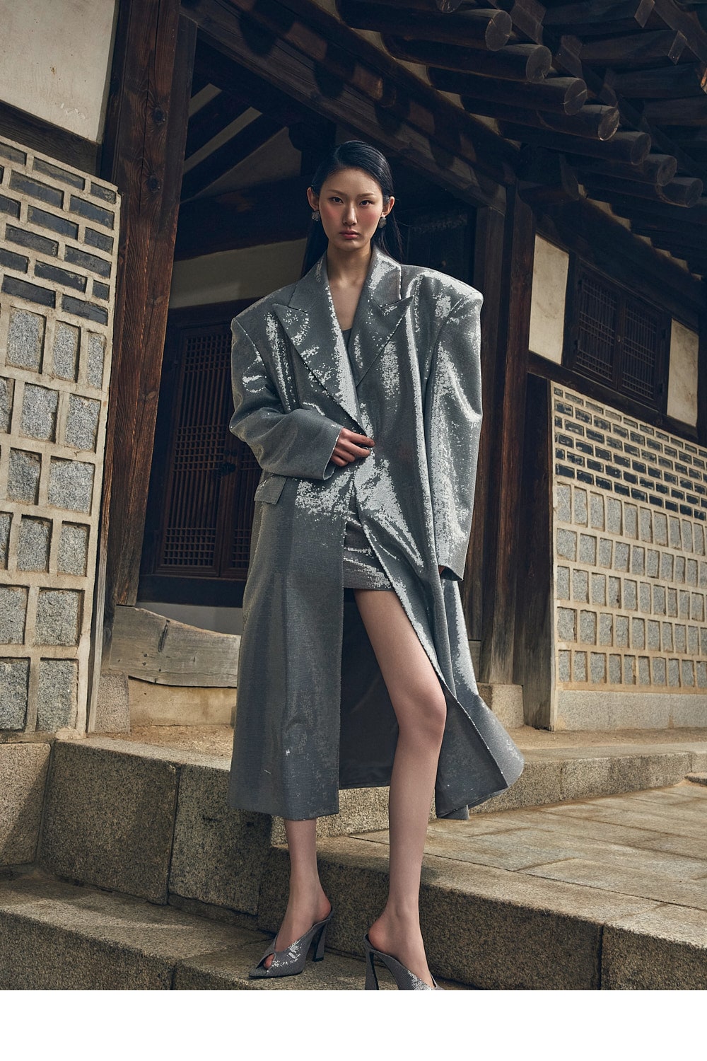 돋보이는 시퀸 롱 자켓입니다.