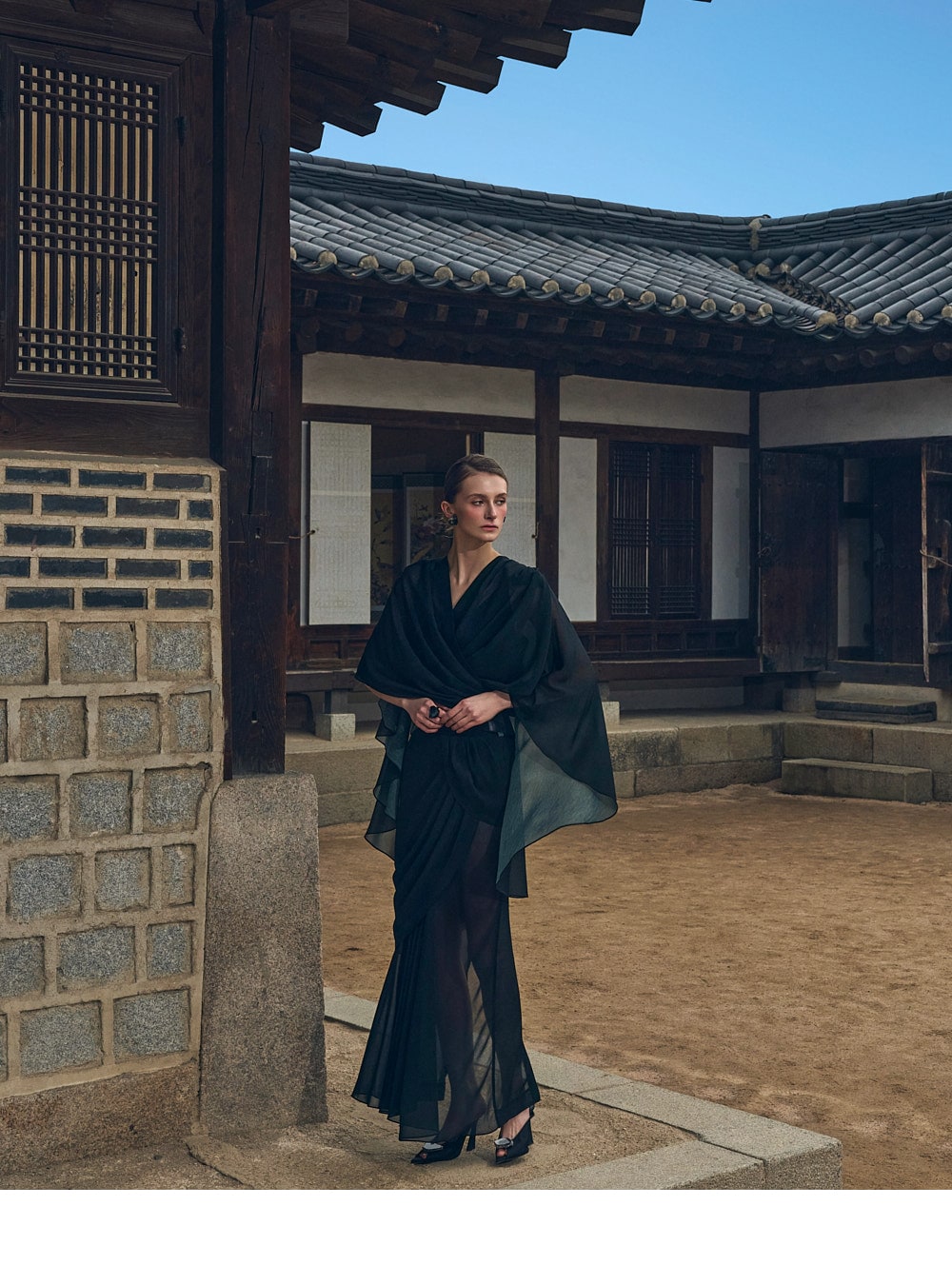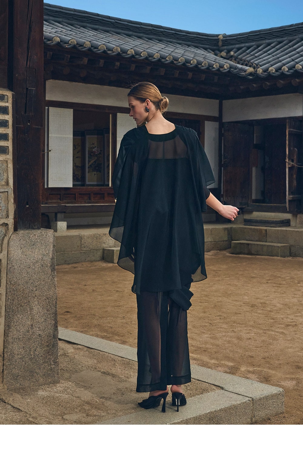 스커트는 가볍고 은은하게 비치는 시스루 소재로