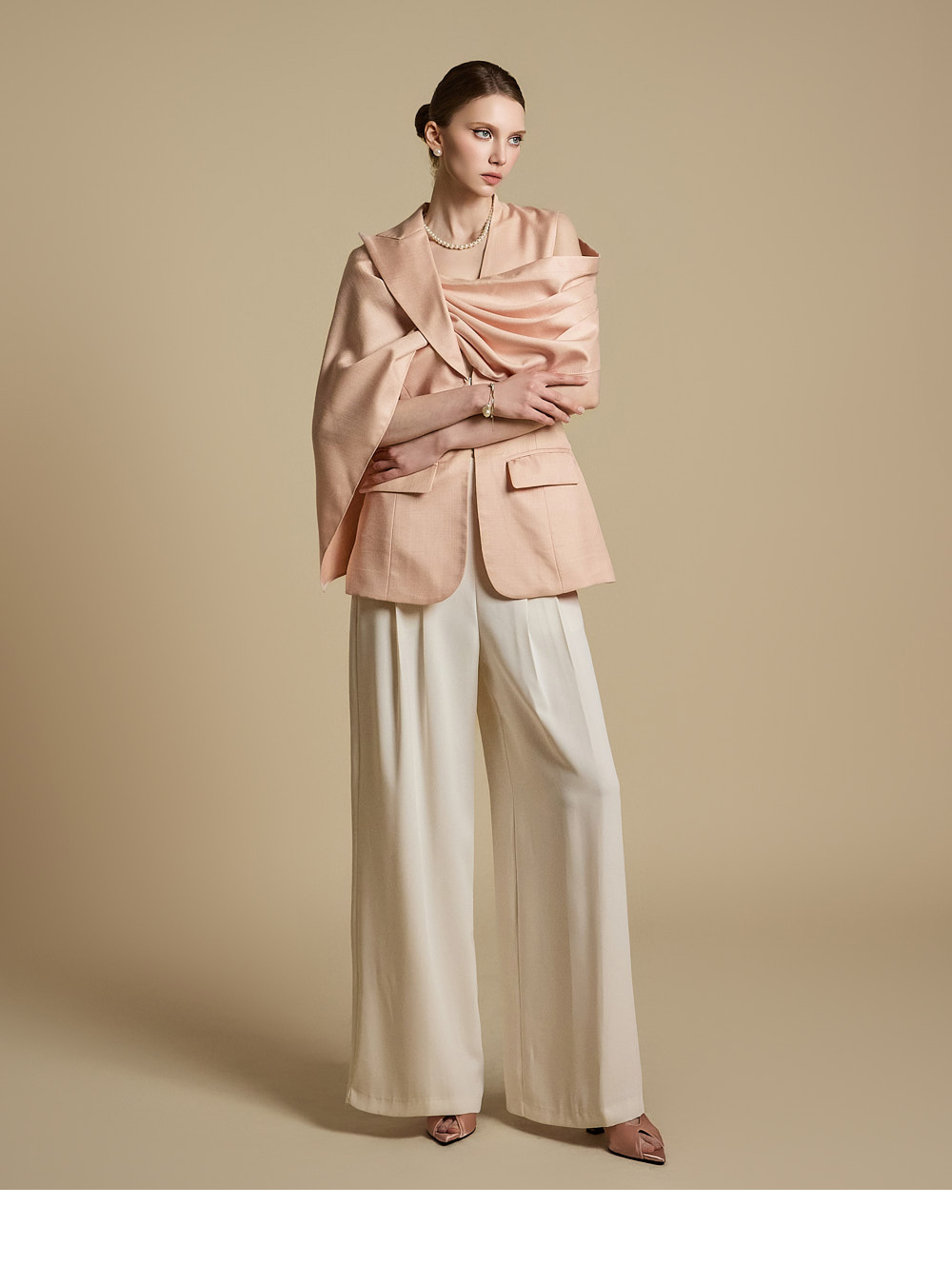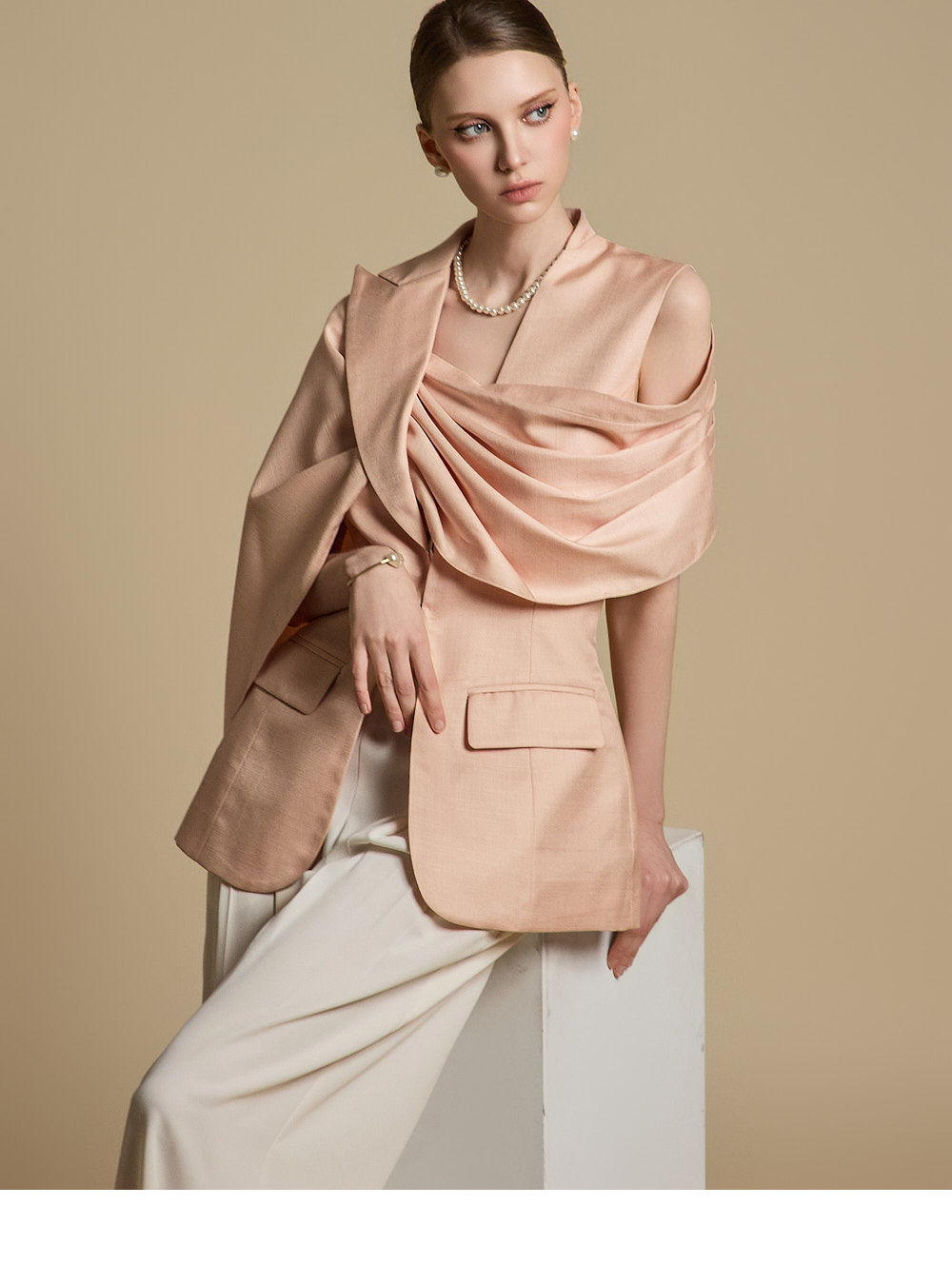 采用聚酯纤维与人造丝混纺面料,质地柔软顺滑,穿着舒适。