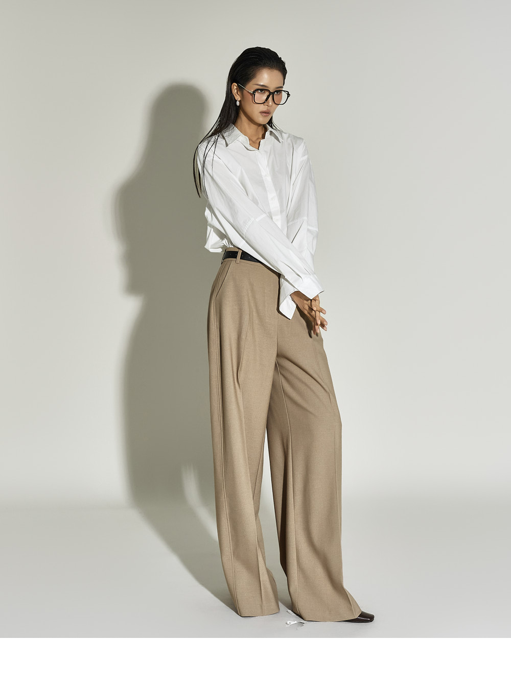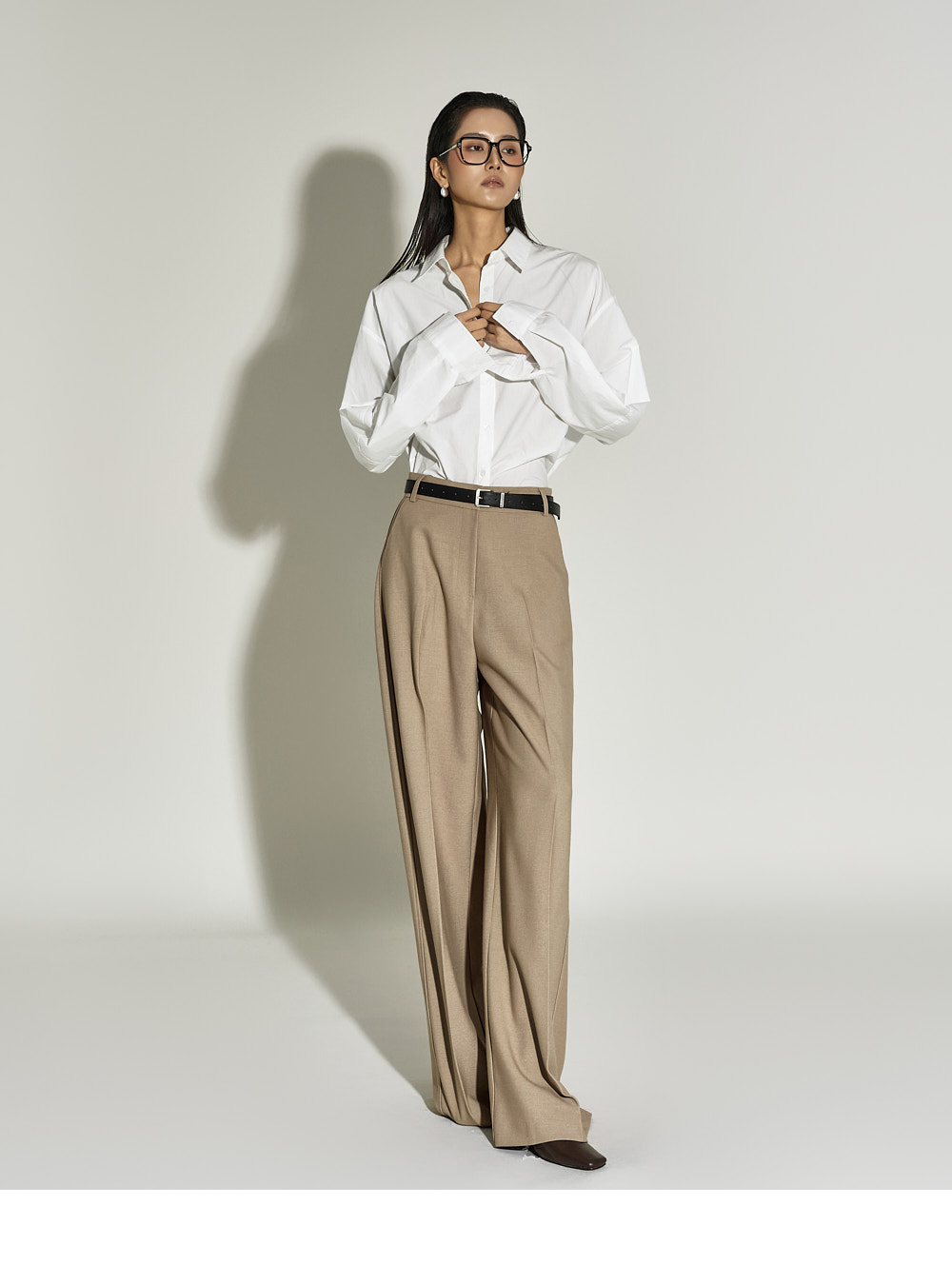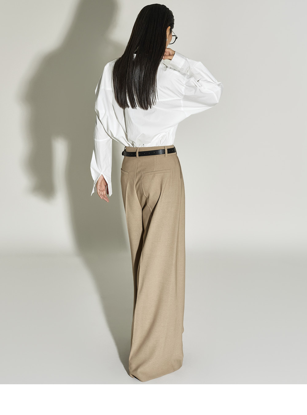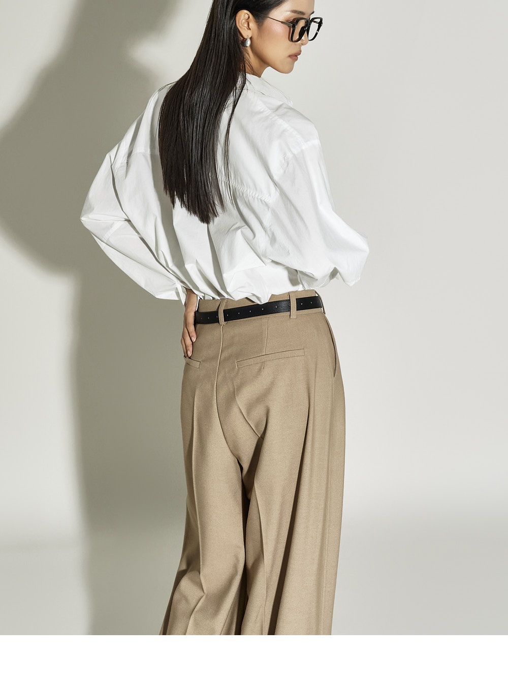 这是一款简约时尚风格的衬衫。 采用棉质面料制作,版型挺括,ONE SIZE设计打造宽松廓形。 宽松版型与不对称下摆增添潮流感与自然造型感,后背的打褶细节成为低调亮点。 前襟纽扣开合方便穿脱,设计简洁基础,易于与多种下装搭配,实用性高。 既适合日常穿搭,也适合想增添时尚感的造型日。 173CM模特身穿ONE尺寸,WHITE色。