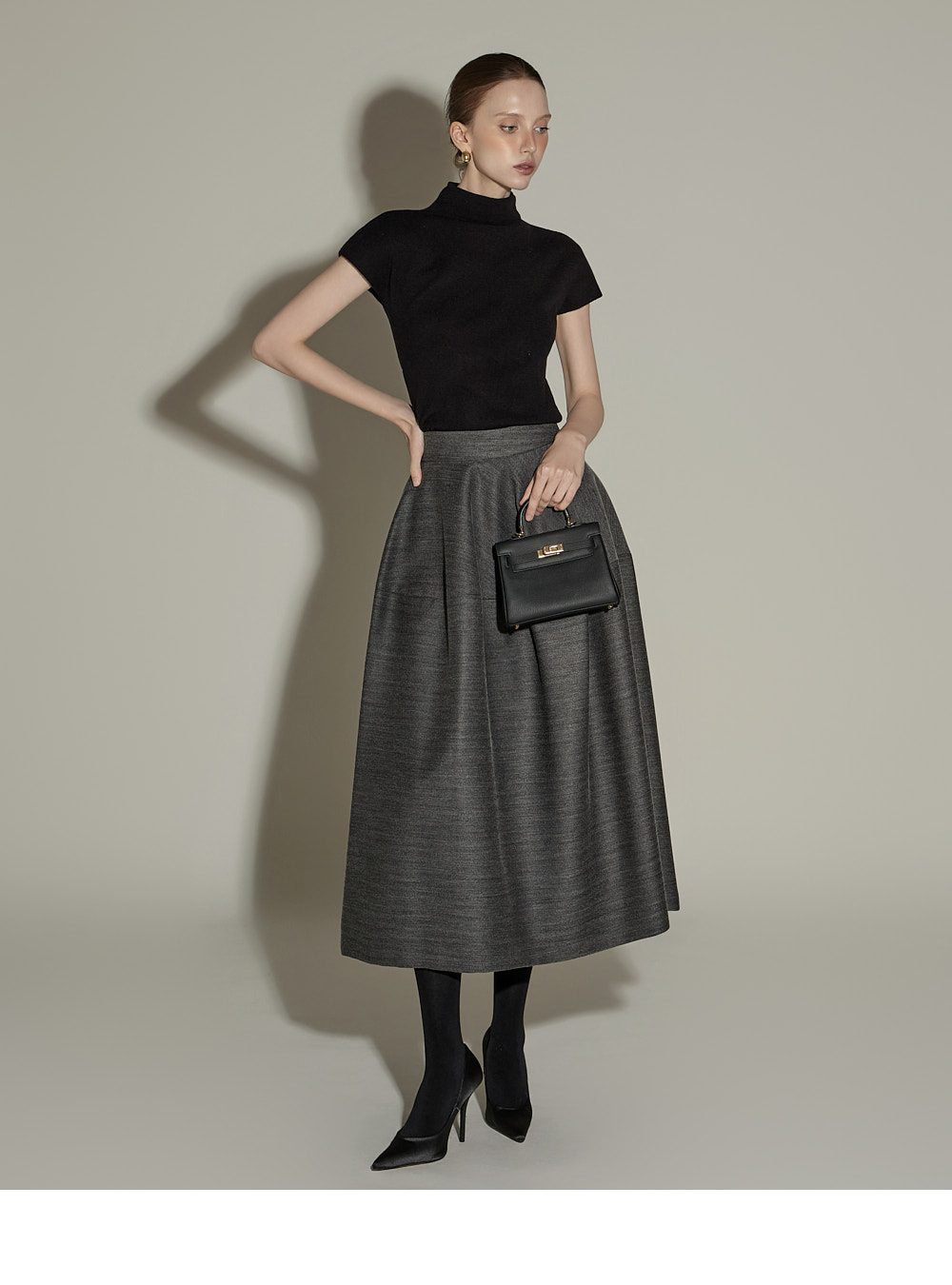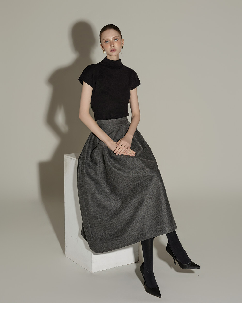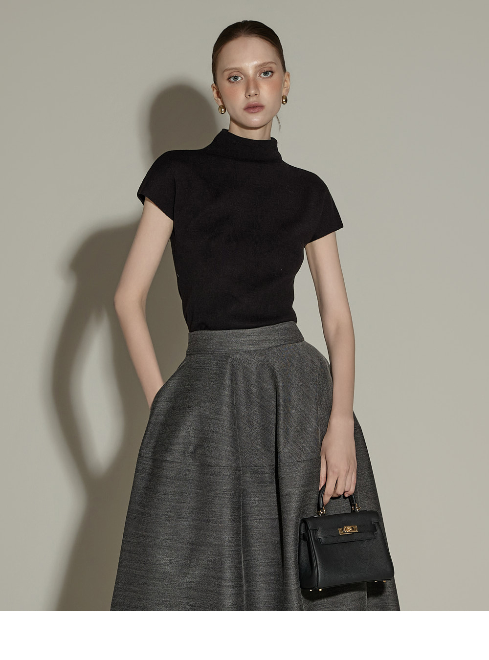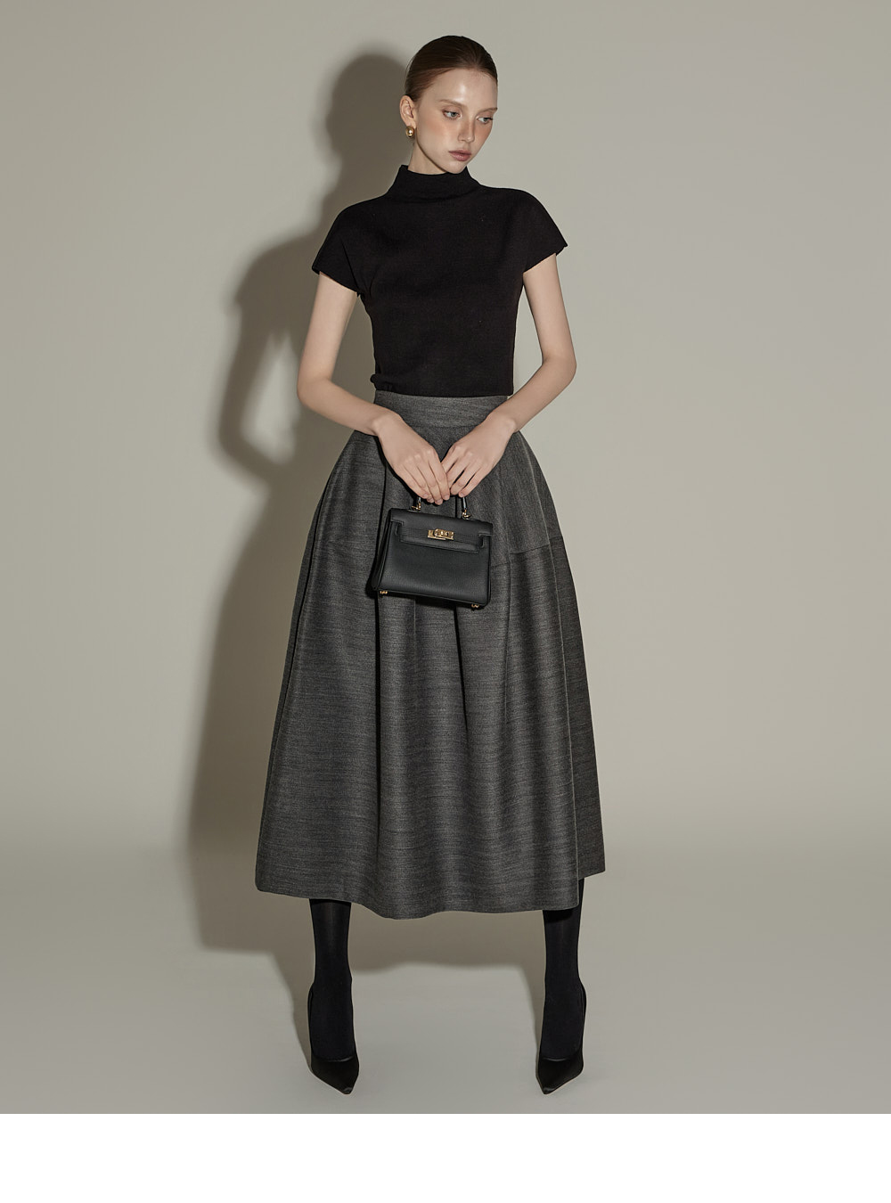 展现女性化氛围的半身裙。 采用聚酯纤维、粘胶纤维和氨纶混纺材质制作,带来舒适的穿着感和稳定的廓形。 在基础的喇叭裙版型上加入中段拼接线,增添设计亮点,并以拼接线为界改变布料纹理方向,使整体不显单调,展现独特气质。 侧边拉链开合,穿着简洁利落,双侧口袋与局部内衬细节提升实用性与舒适度。 与成套西装外套搭配时,能演绎更完整的女性化氛围,单独搭配多样上衣也能轻松打造F/W 季节时尚感十足的造型。 174CM 模特身着 S 码,GRAY 颜色。
