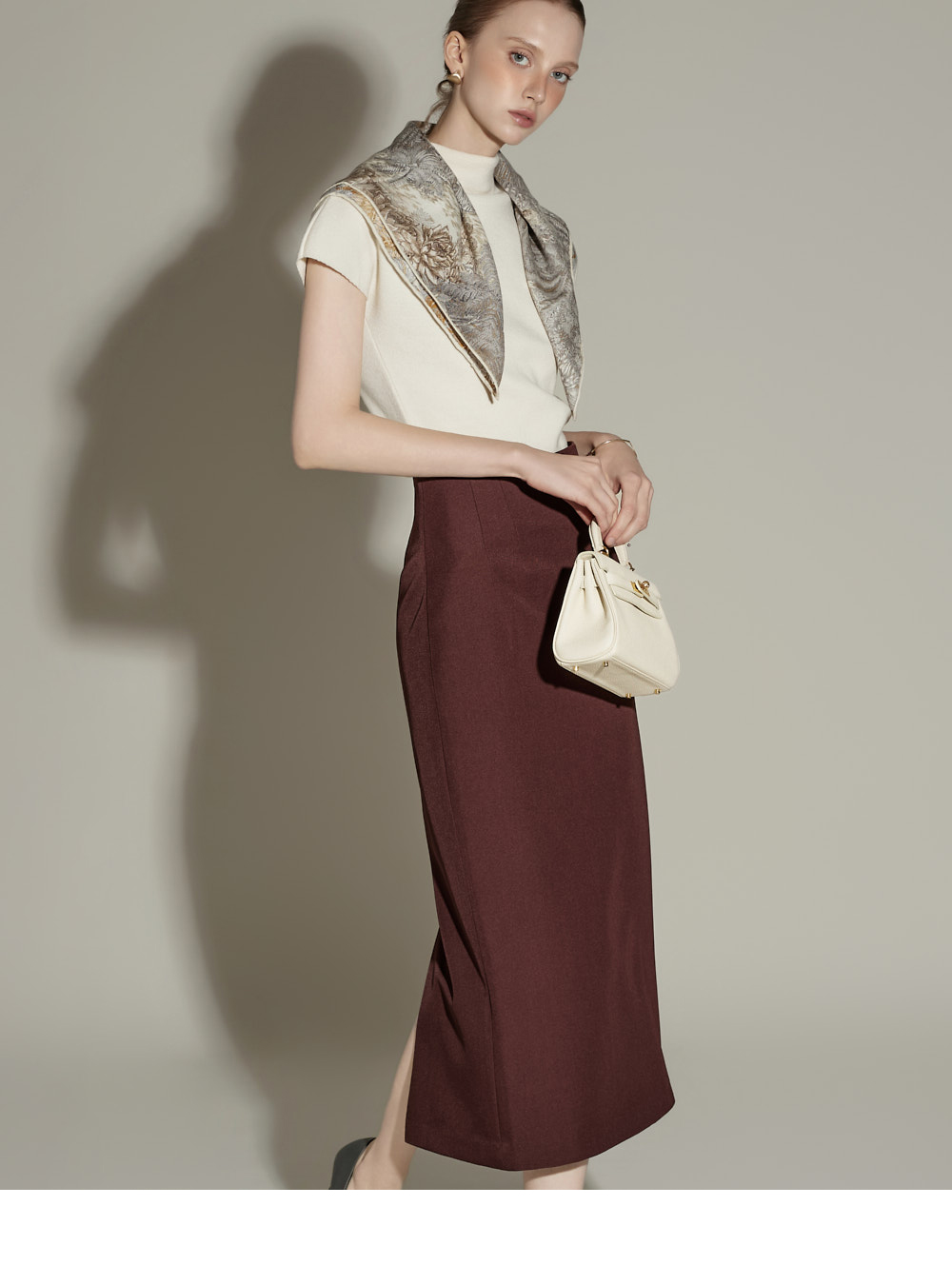 优雅氛围的褶裥长裙。采用聚酯纤维与氨纶混纺面料制作,轻盈柔和,穿着舒适,适度的弹性提升活动便利性。褶裥细节的加入,勾勒出干净而立体的线条,长款H版型剪裁,营造出优雅端庄的氛围。局部内衬设计带来稳定感,后背拉链开合与开衩,兼顾舒适穿着与活动性。无论是正式聚会,还是需要亮点的日子,都是高级感造型的理想单品。模特身高174CM,穿着S码,酒红色。
