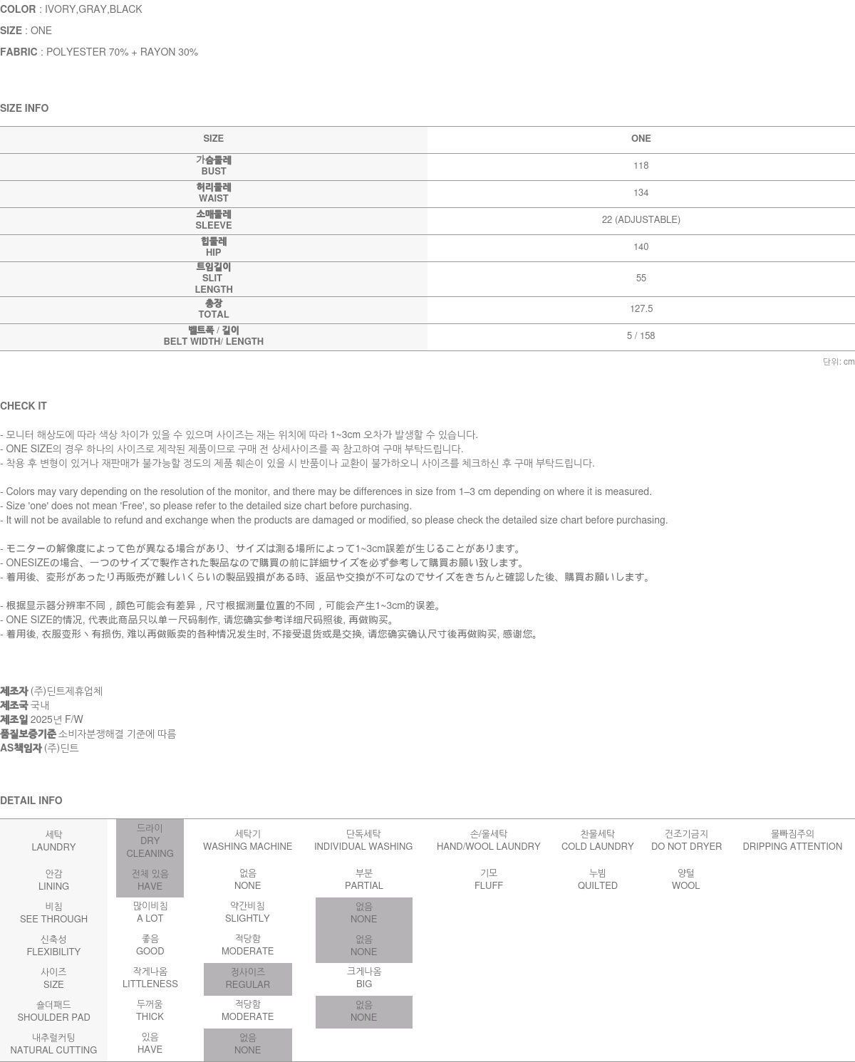 關於售後服務 瑕疵商品, 或是布料瑕疵、不正確標註的尺碼或質料, 引起的問題, 將會爲您進行修復/車縫 → 交換 → 退貨處理 (換貨與退貨的實際舉例, 請參考 ”換貨與退貨“ 與 “無法進行換貨與退貨的情況”之說明.) A/S負責人與連絡電話:DINT.Inc (gbcs_dint@naver.com)