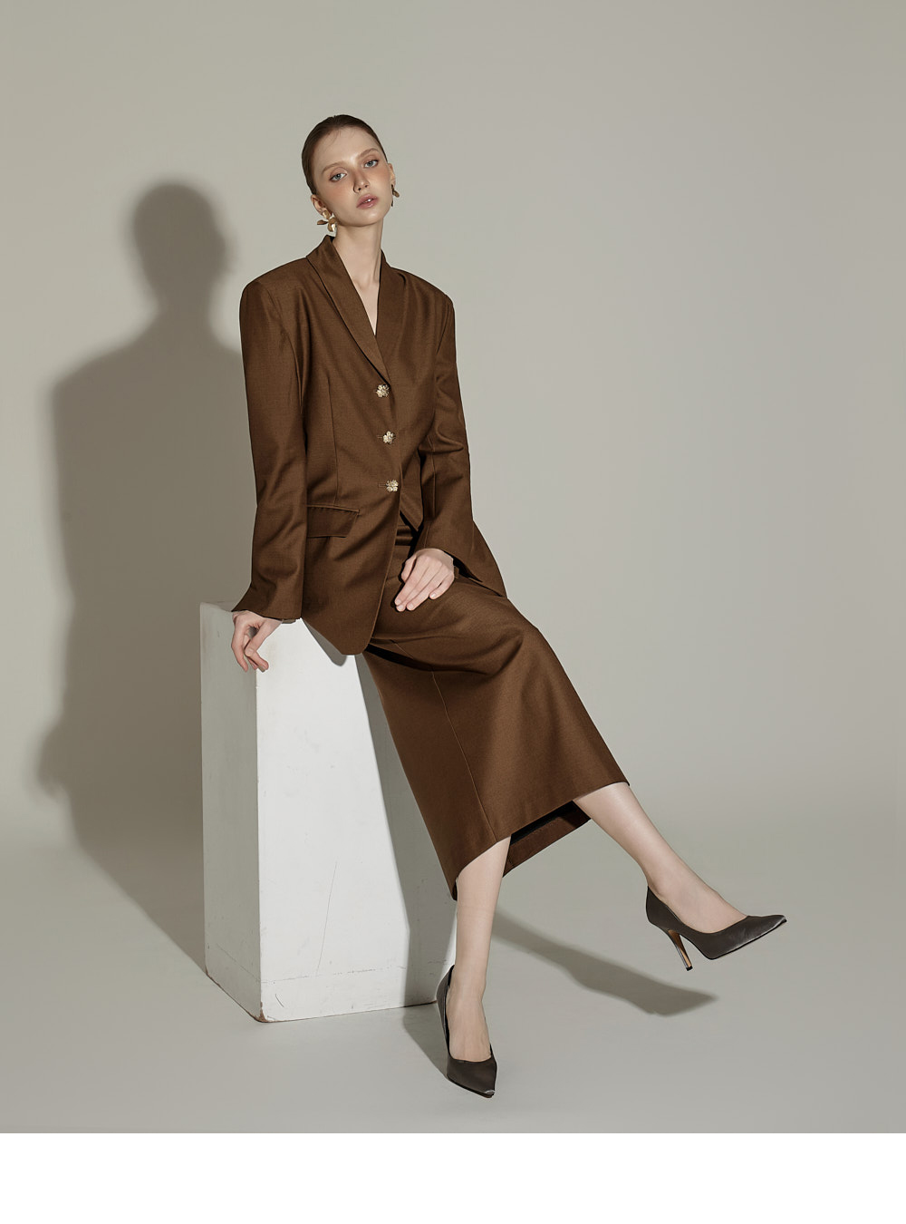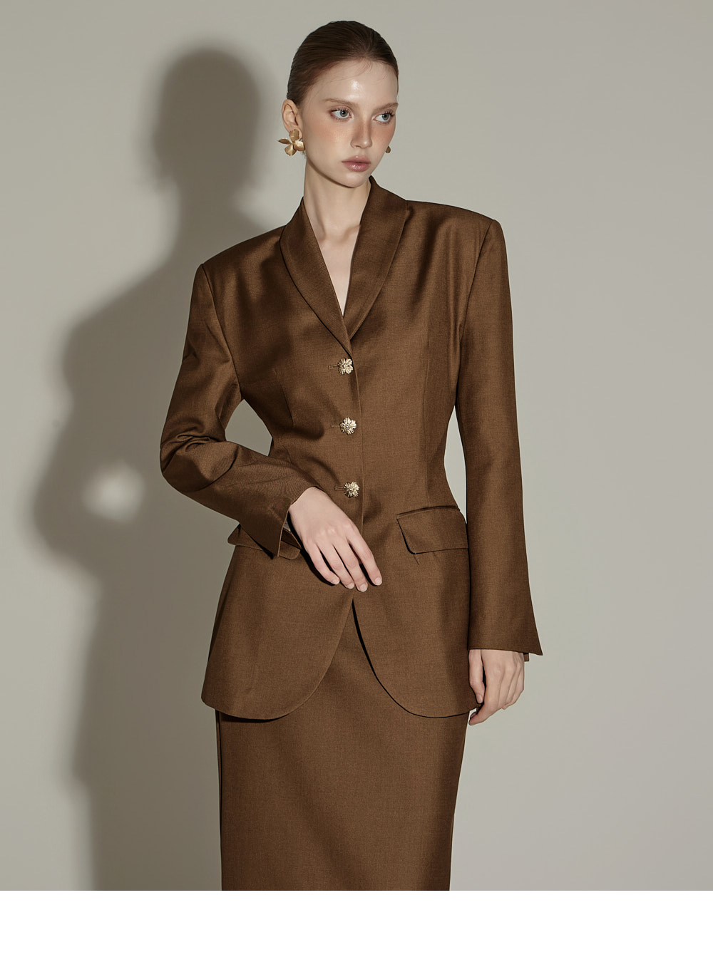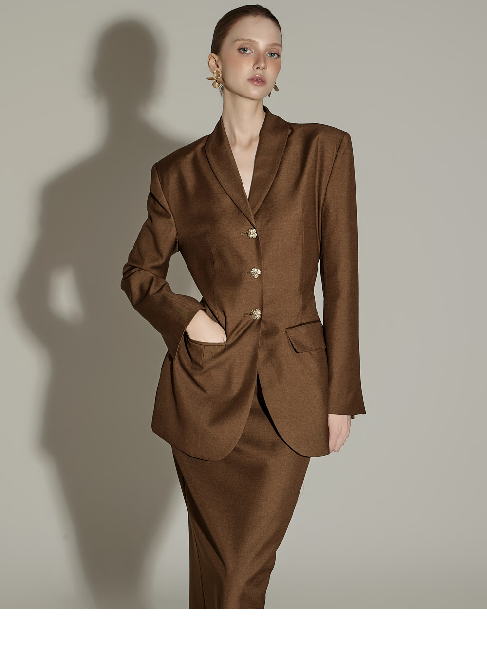 套装成套穿着时,呈现经典优雅的秋日氛围,