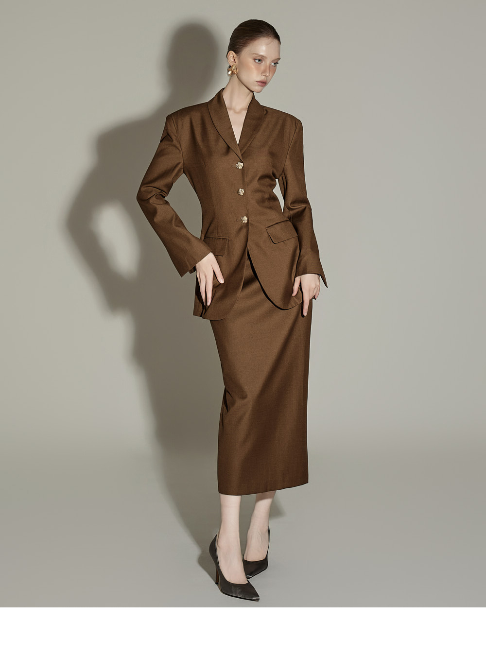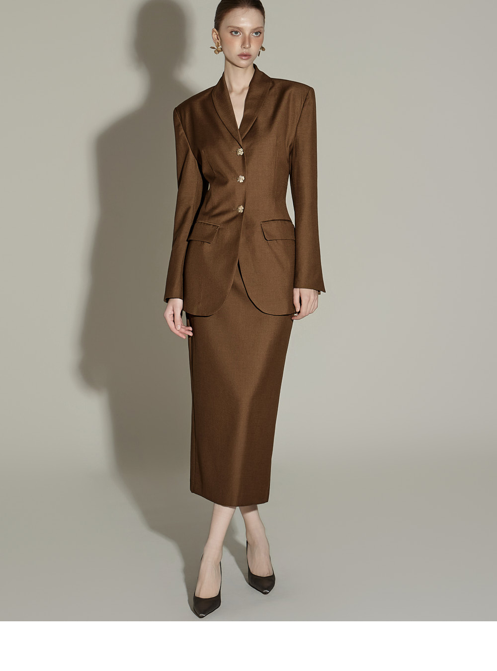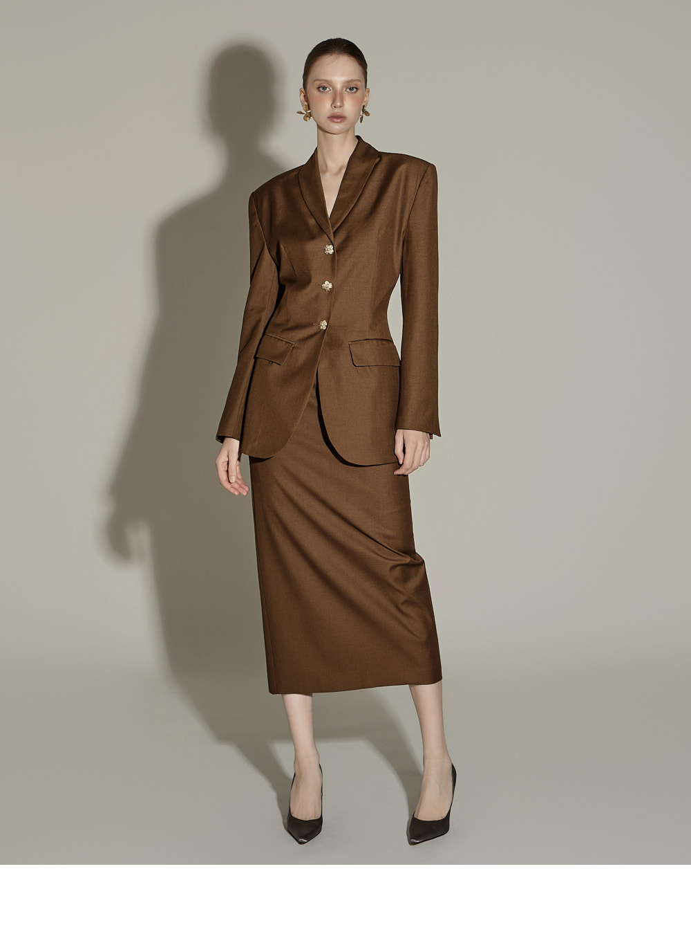 套装成套穿着时,呈现经典优雅的秋日氛围,