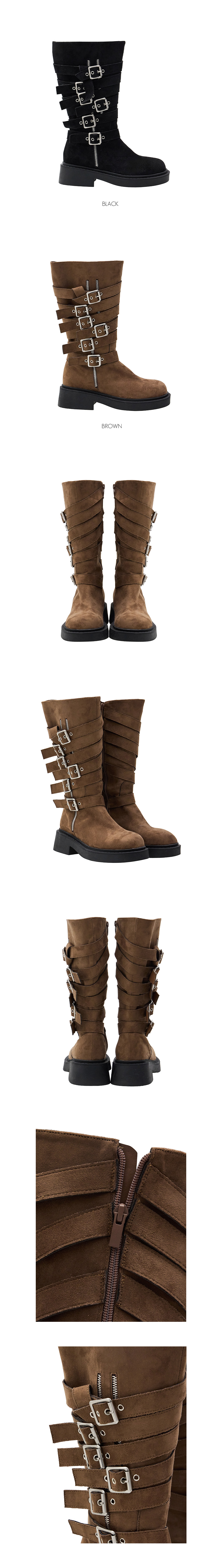 绑带长靴。 采用柔软的麂皮材质制作,增添温暖氛围,侧边拉链与金属扣环细节成为独特亮点。 稳定的鞋跟与结实的鞋底,提供舒适的穿着感受,从休闲造型到时尚搭配都能轻松驾驭。 推荐作为一款既时髦又富有个性的长靴,为整体造型增添独特魅力。