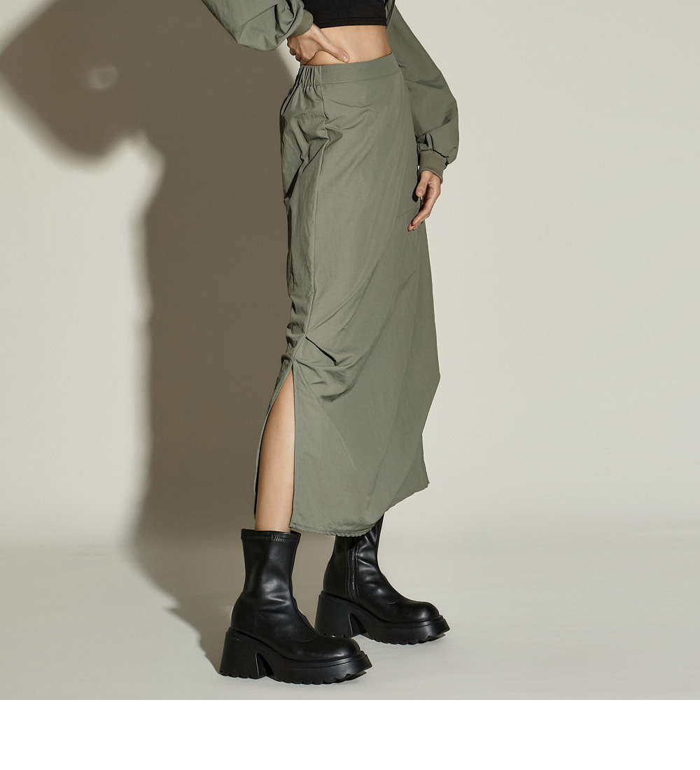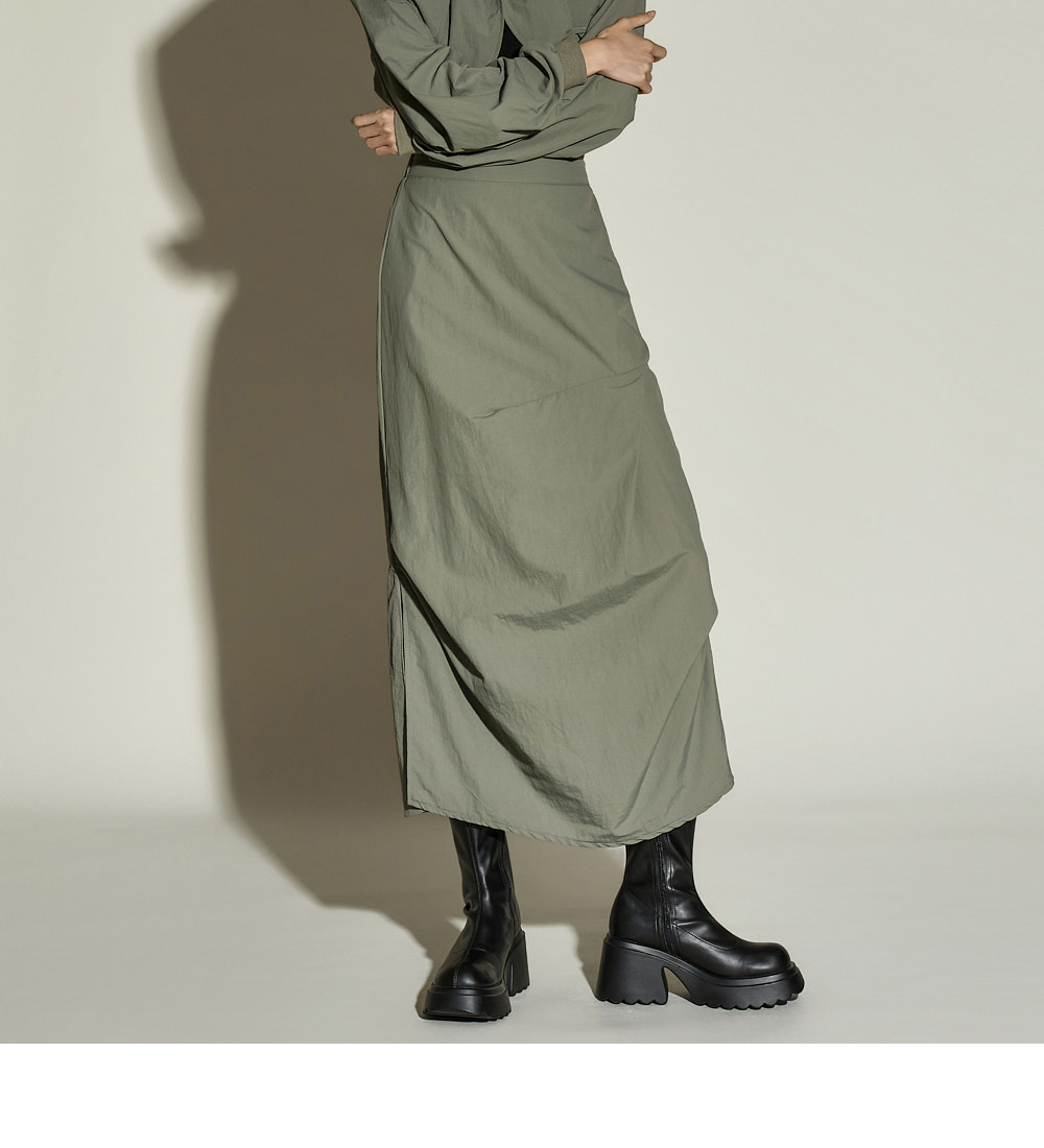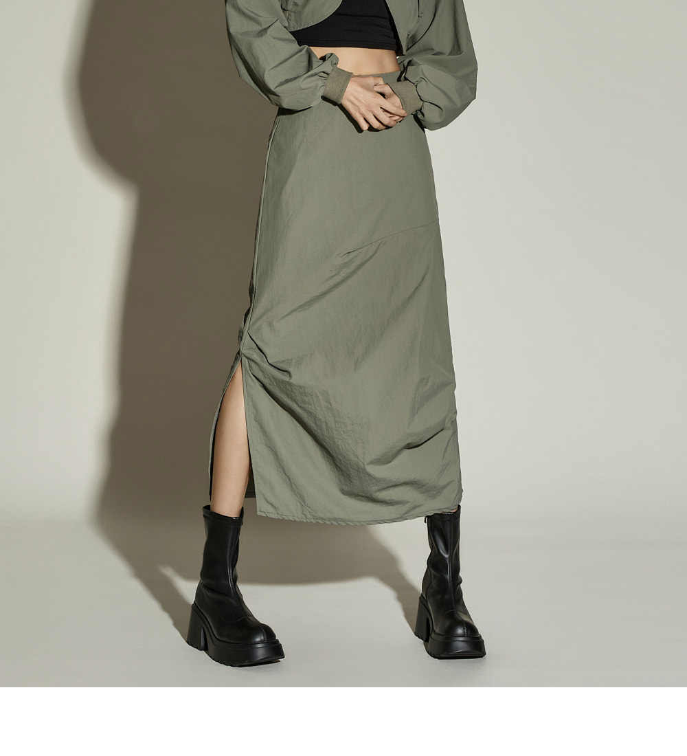 侧开衩与侧边拉链细节兼具廓形美感与活动便利性,
