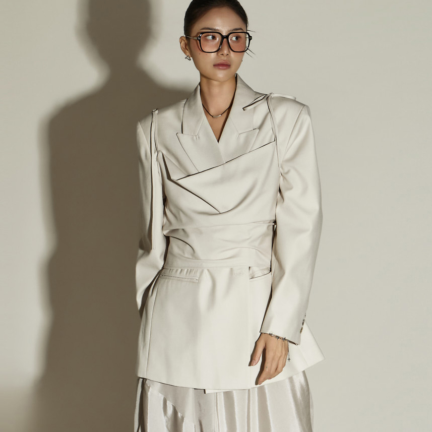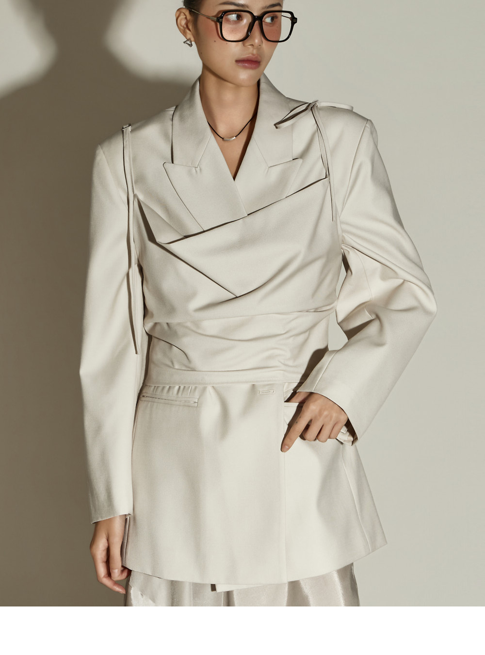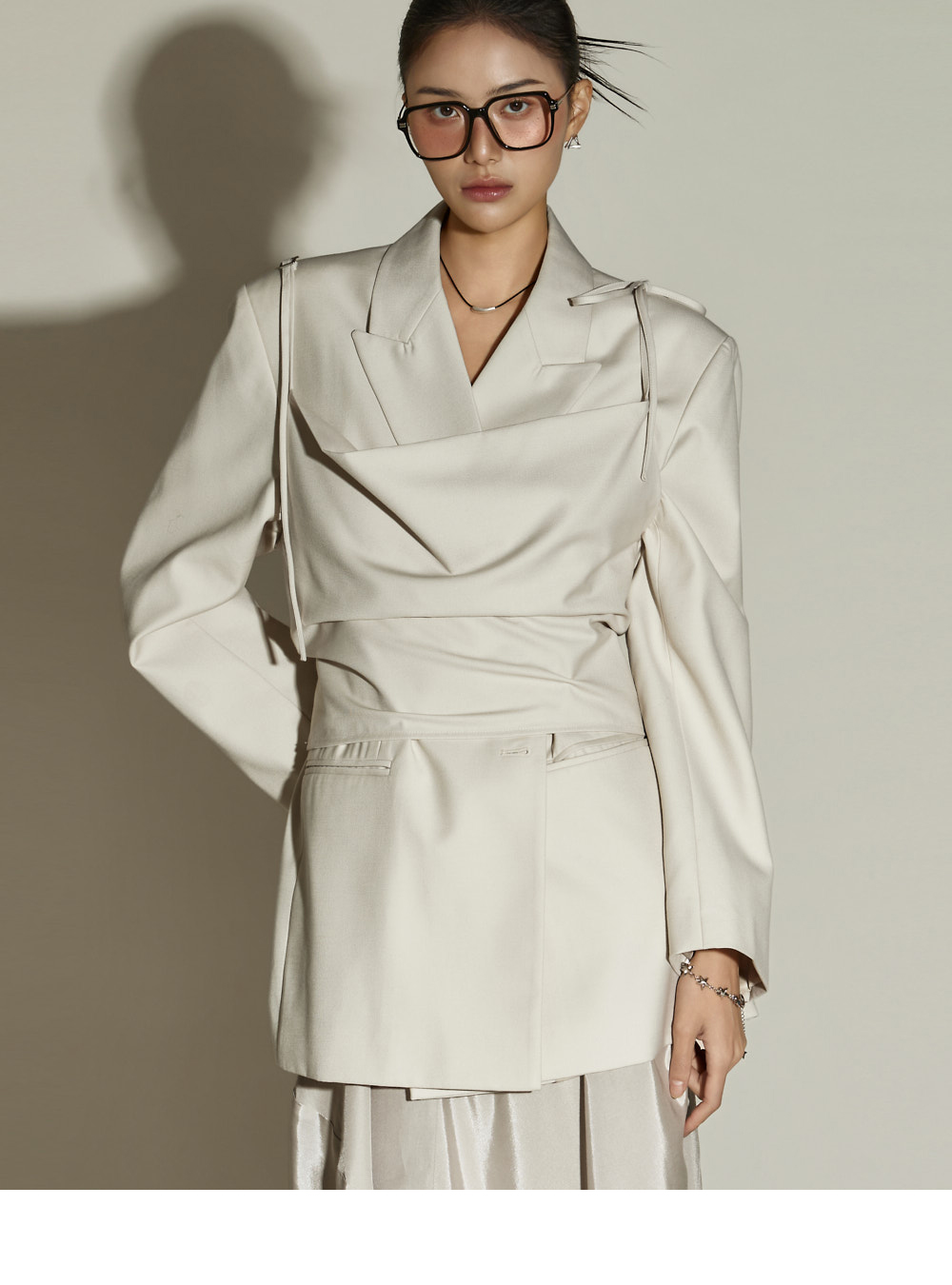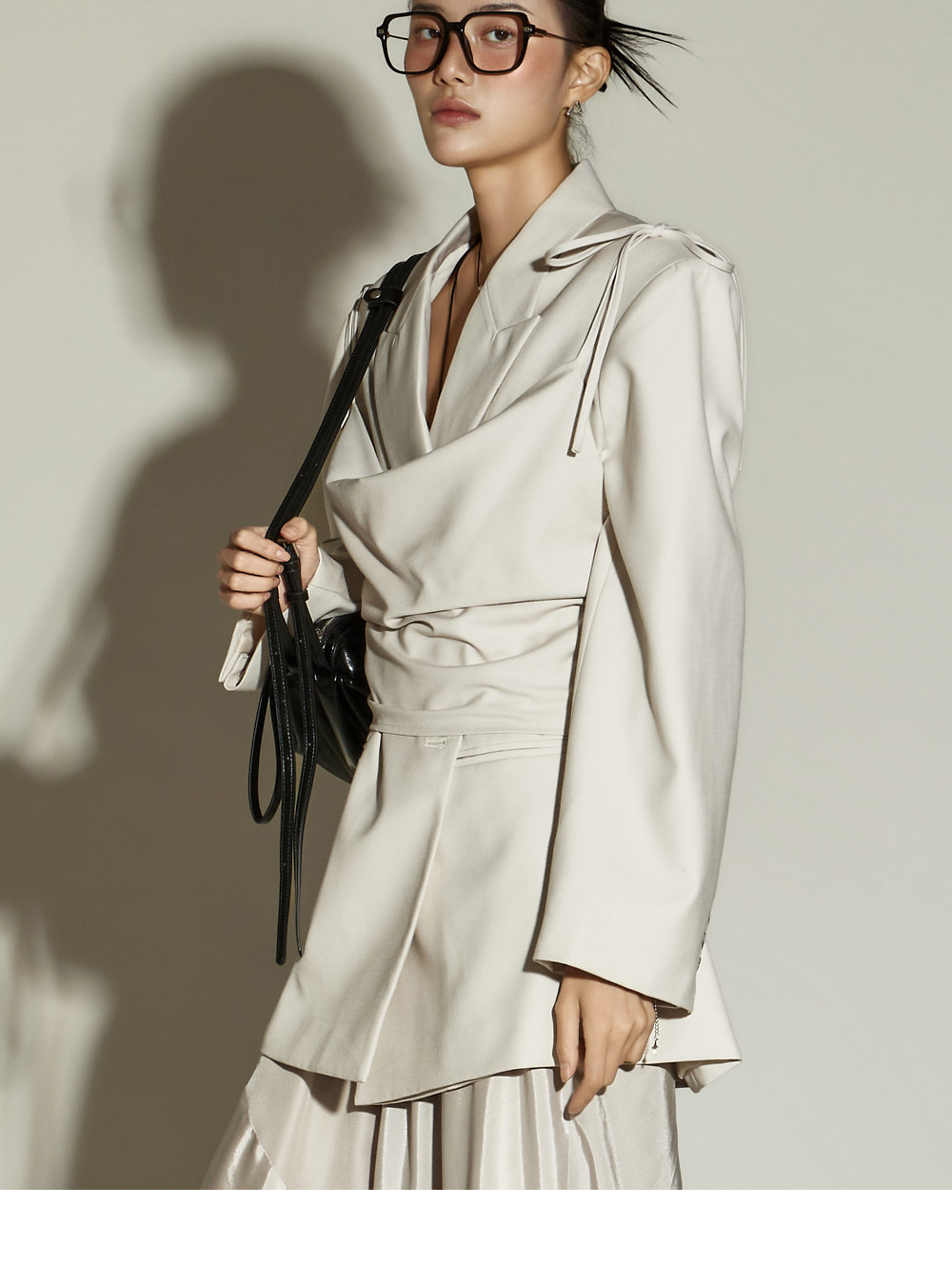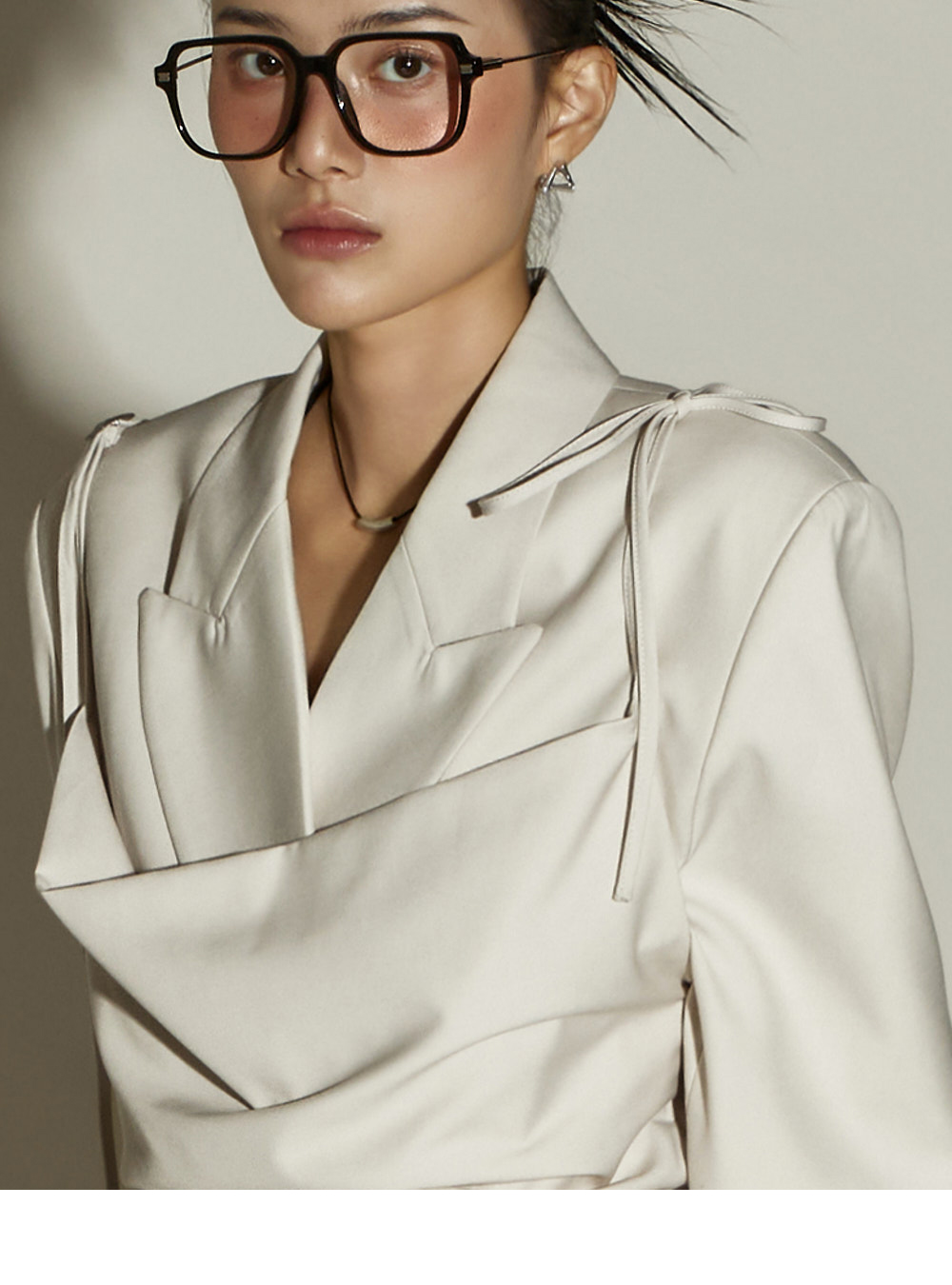 模特身高 171CM,穿着 ONE 尺码,象牙白色。