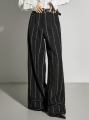 西装裤为宽松阔腿版型,既正式又舒适,裤脚翻边设计增添精致感。