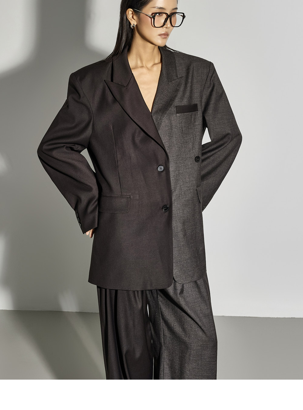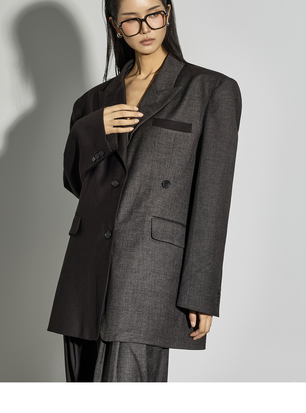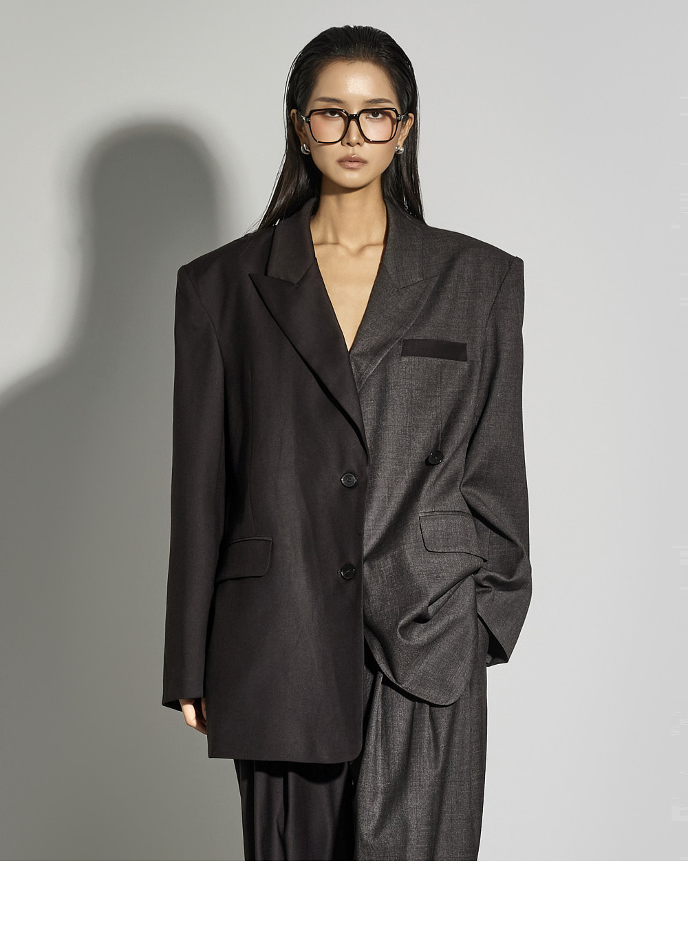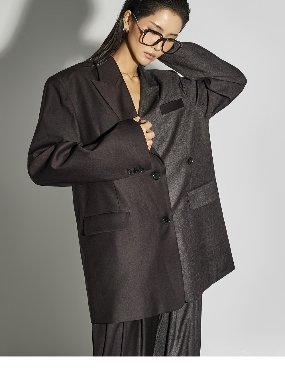 宽松版型便于与内搭叠穿,左侧额外的纽扣设计可自由切换单排或双排扣风格,增添实用细节。