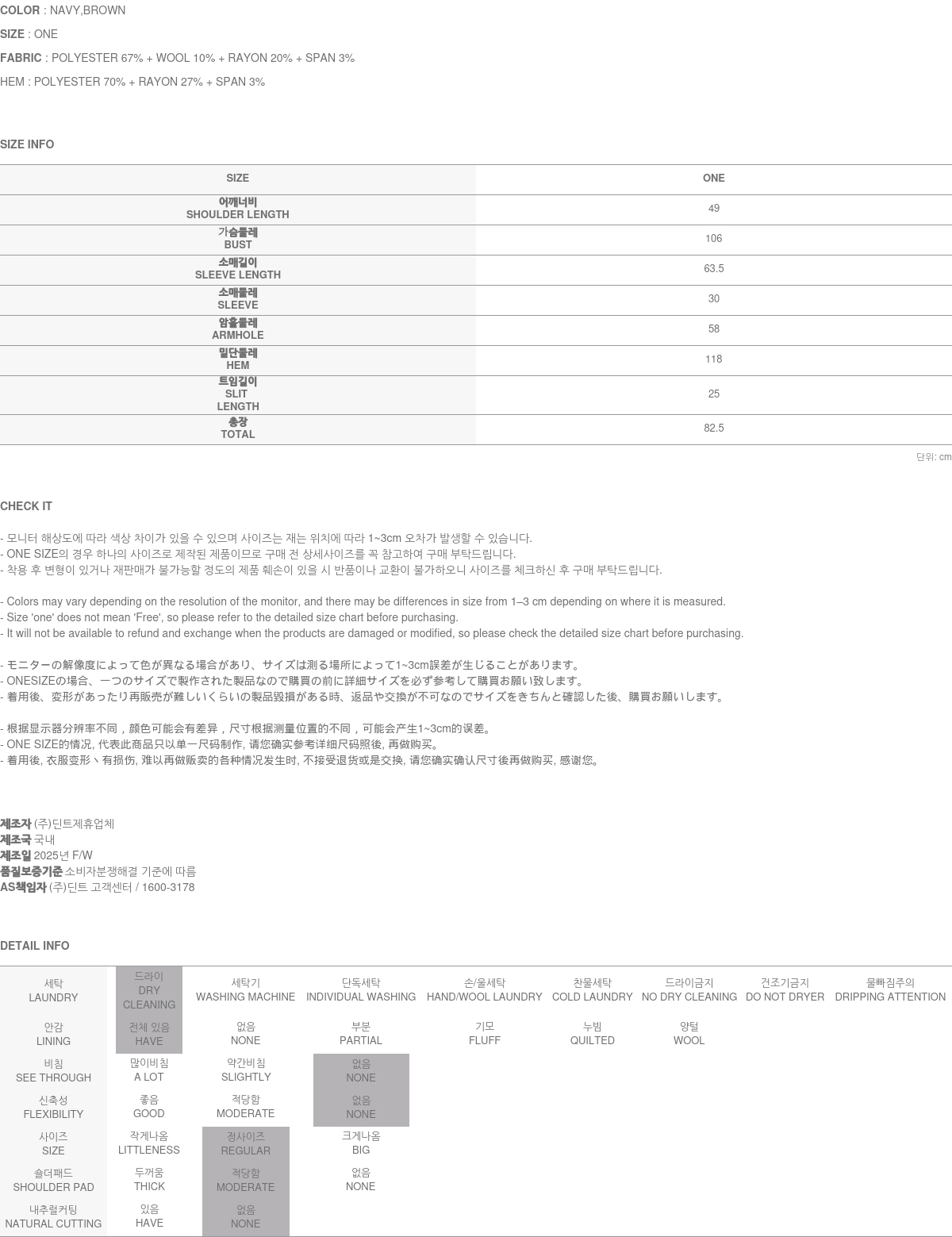 厚度适中,适合从换季到秋冬季节穿着。
