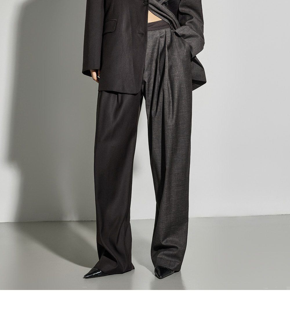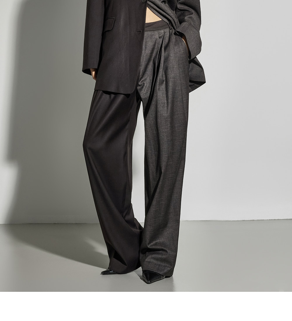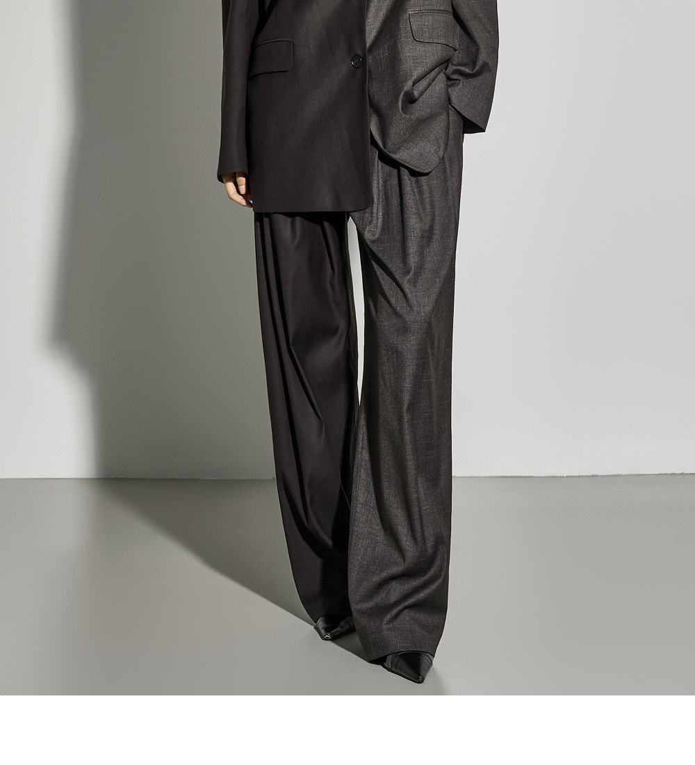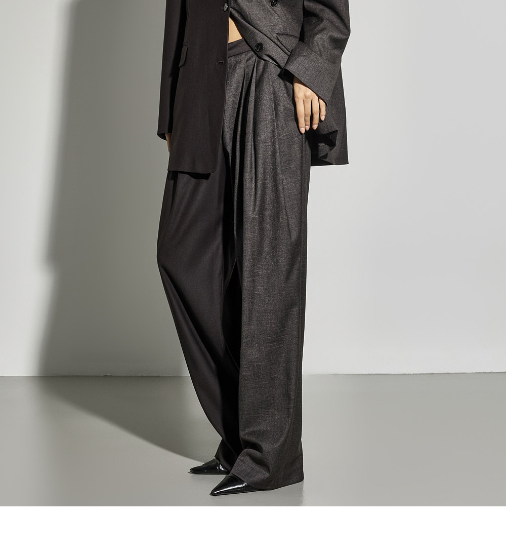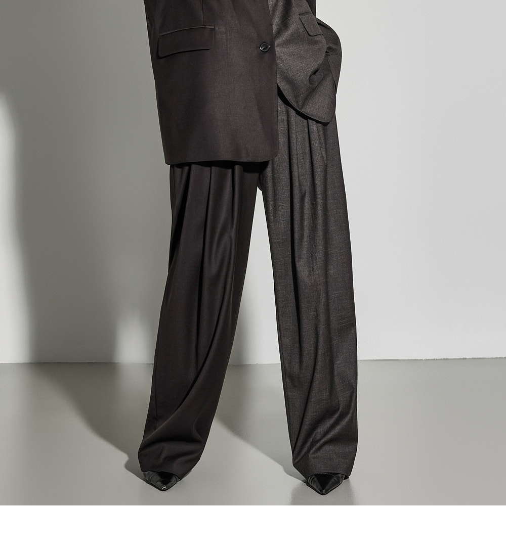前侧加入褶皱设计,使裤型宽松且结构感十足,从大腿到裤脚自然垂落的廓形,呈现时尚潮流感。
