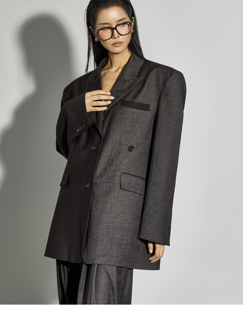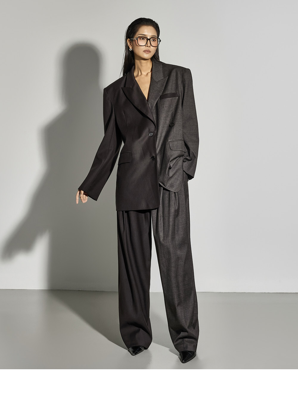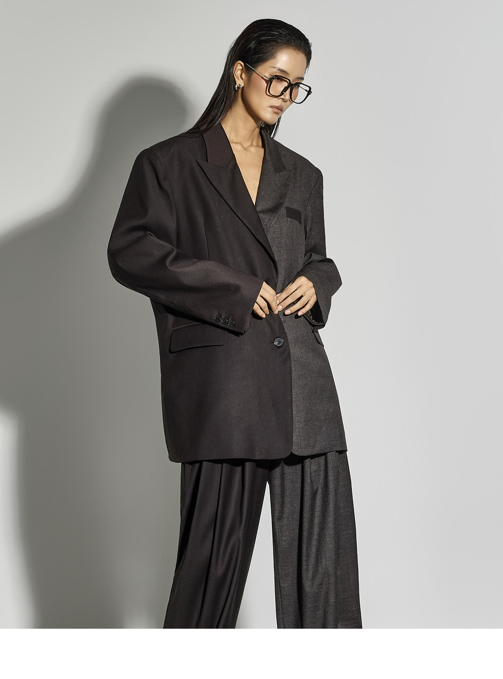 与同材质拼色夹克搭配成套穿着,可轻松打造时髦的日常造型。