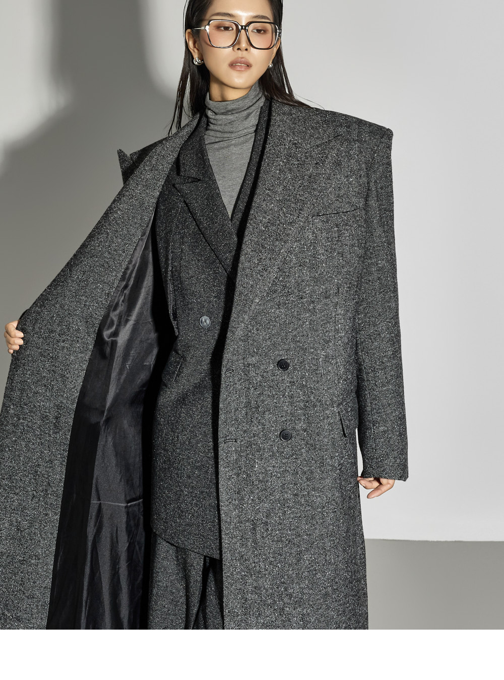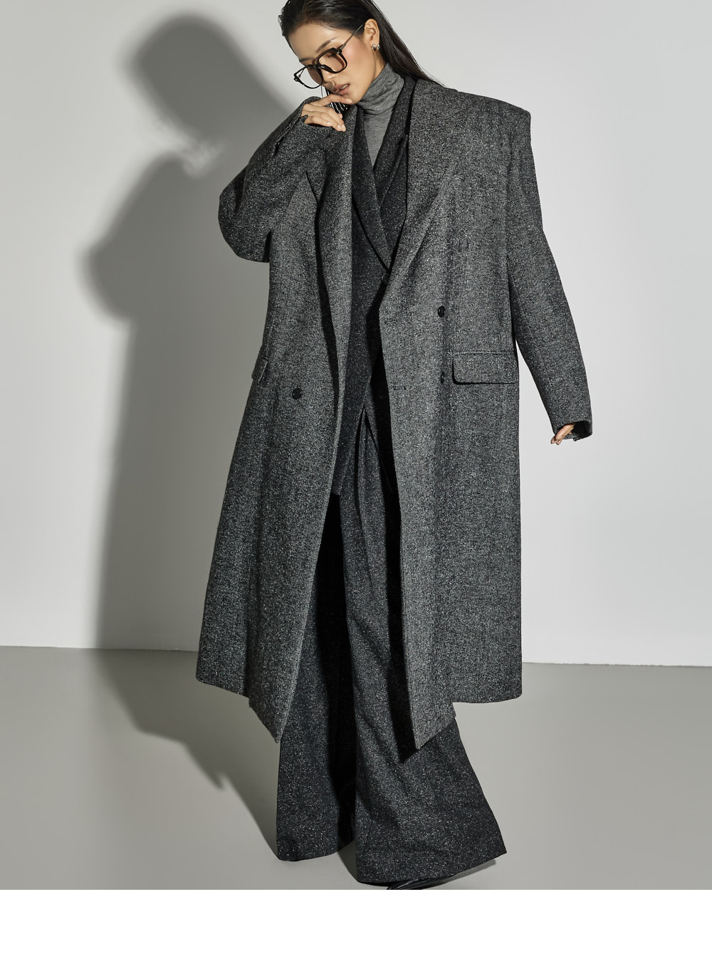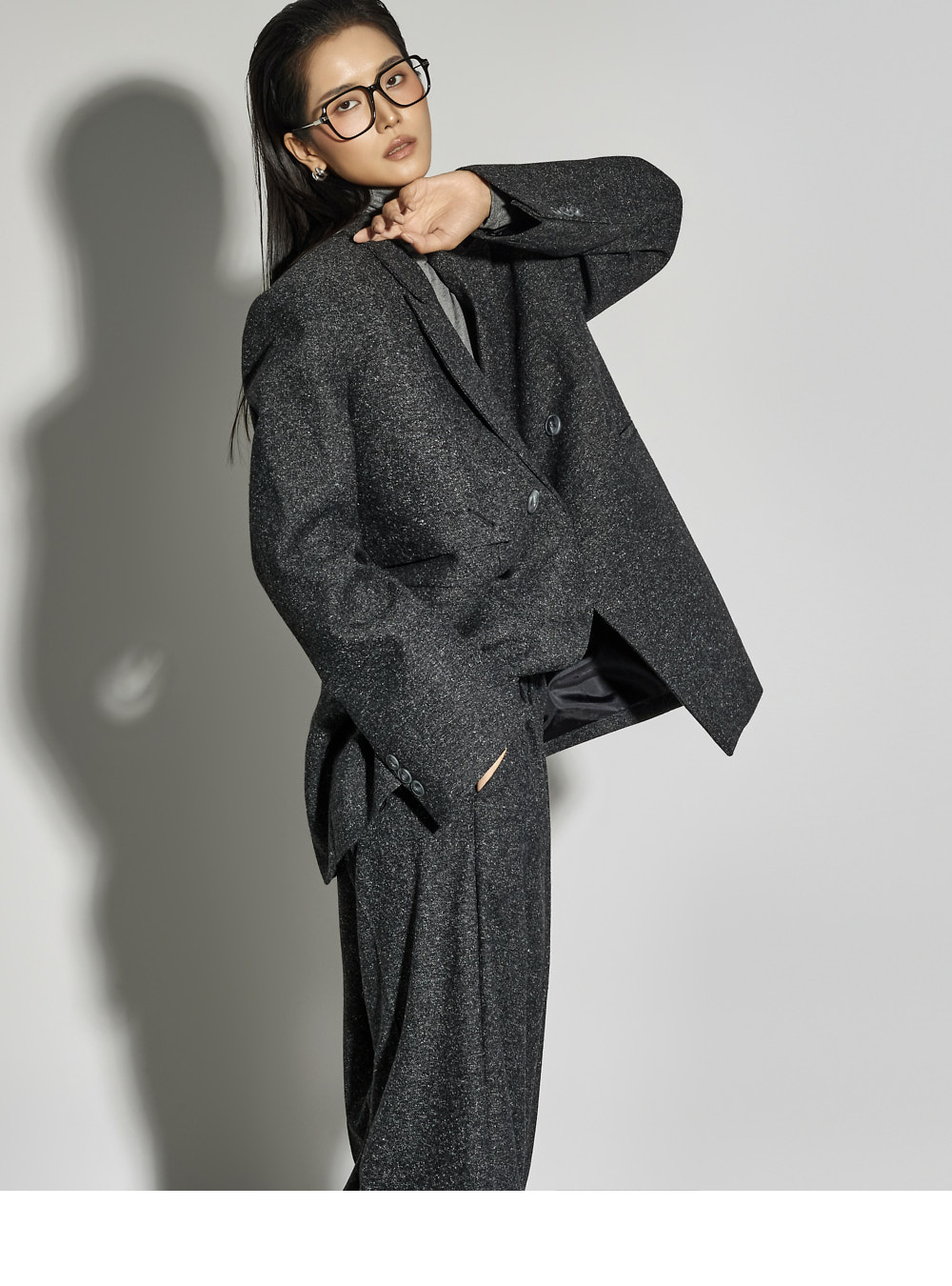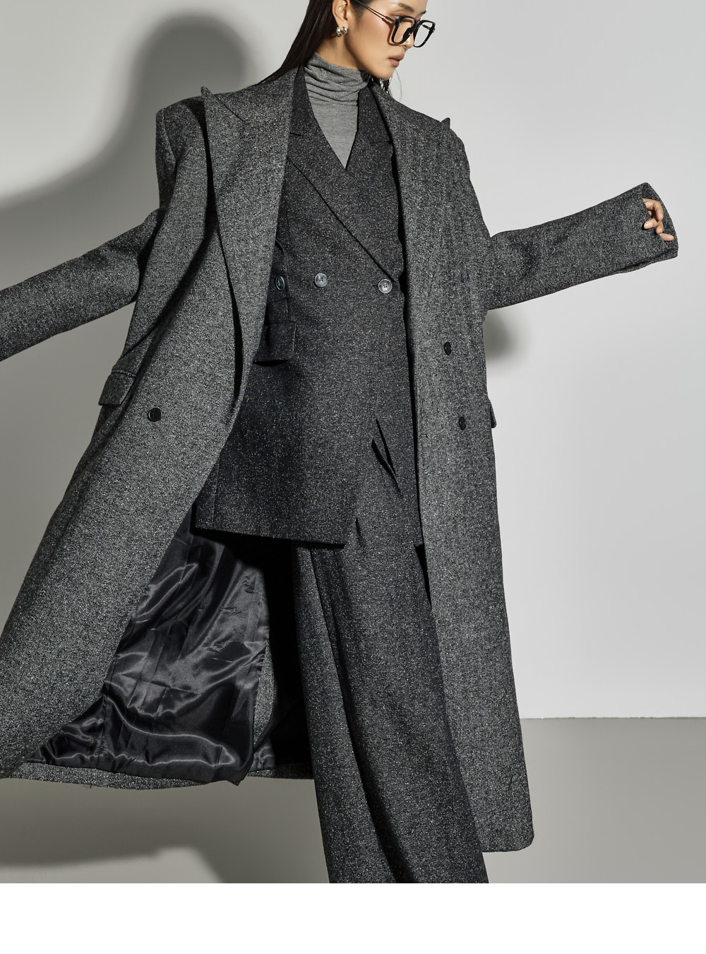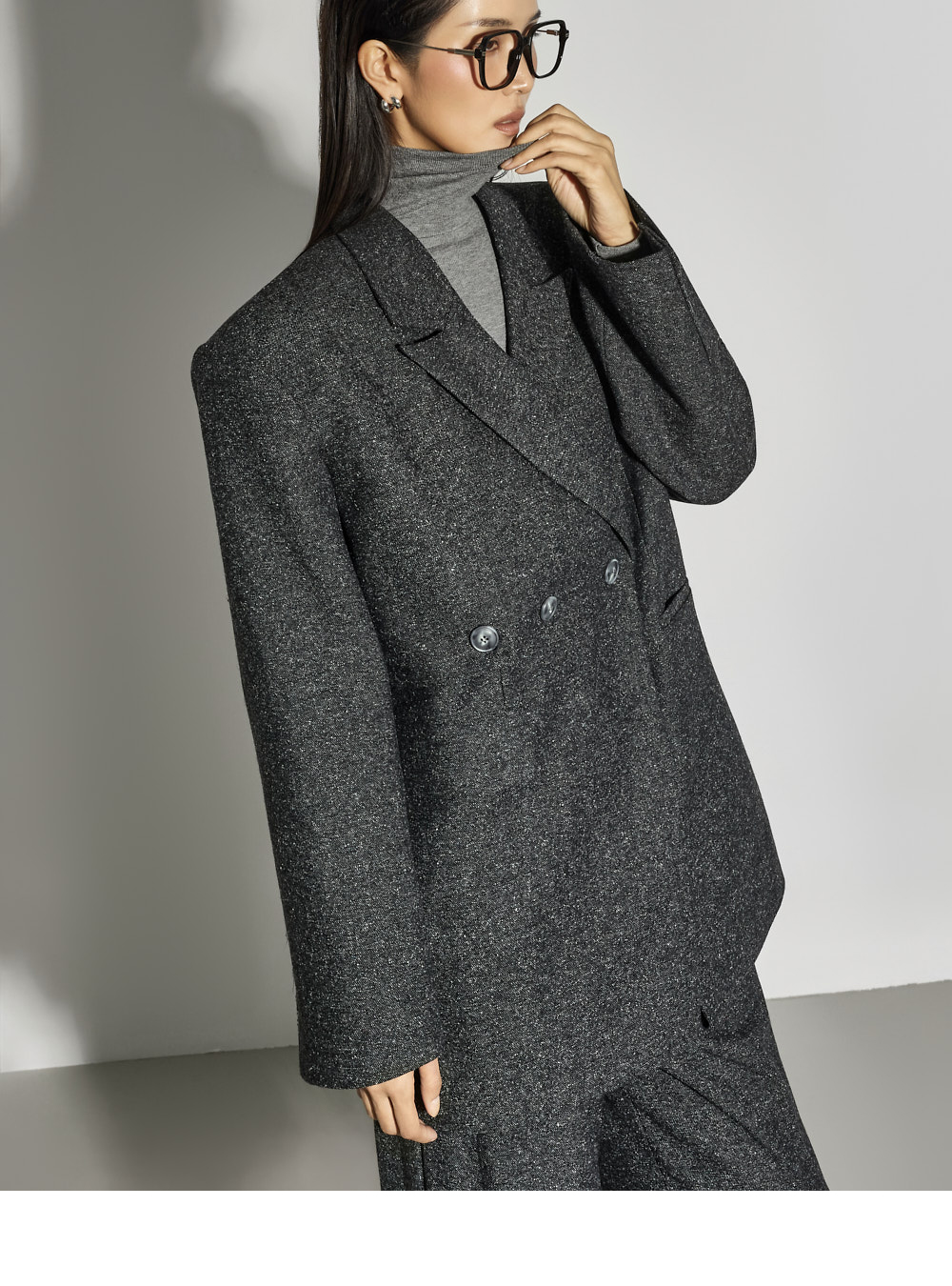 173CM 模特穿着 ONE 码,CHARCOAL 颜色。