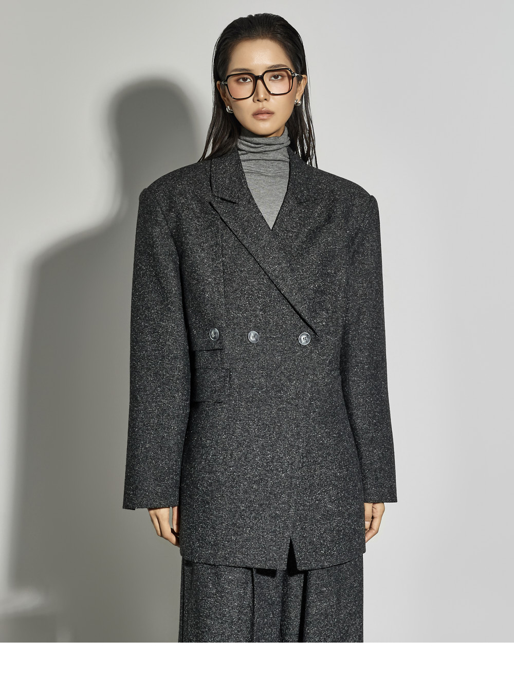 厚实肩垫塑造结构感肩型。