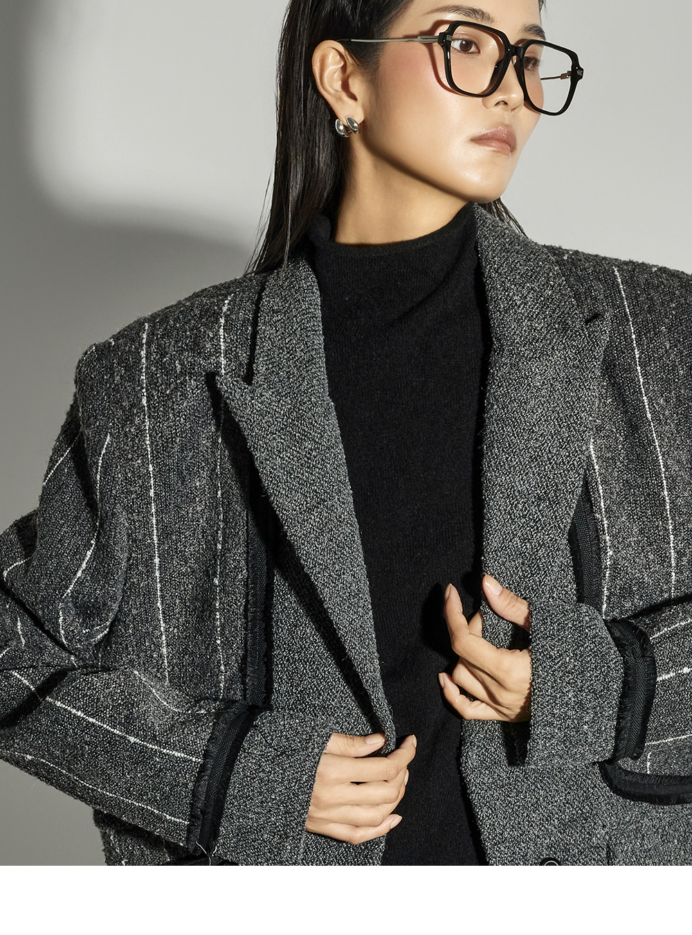 这是一款时尚感十足的短款条纹西装外套。